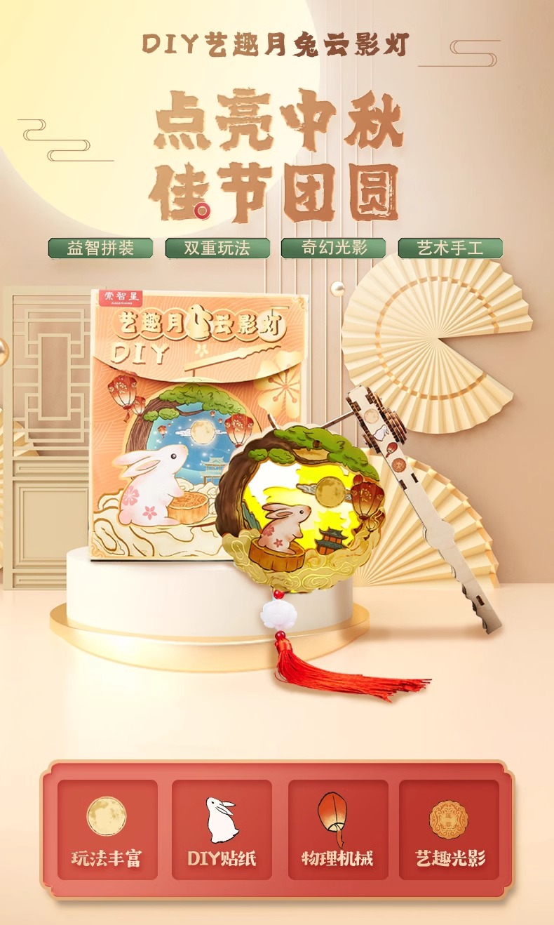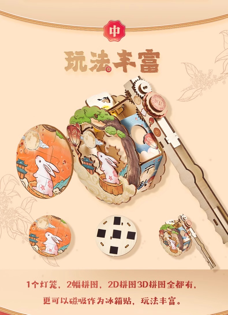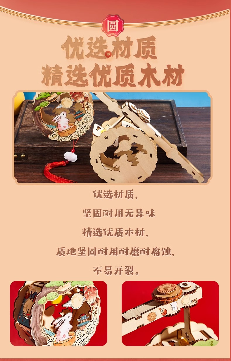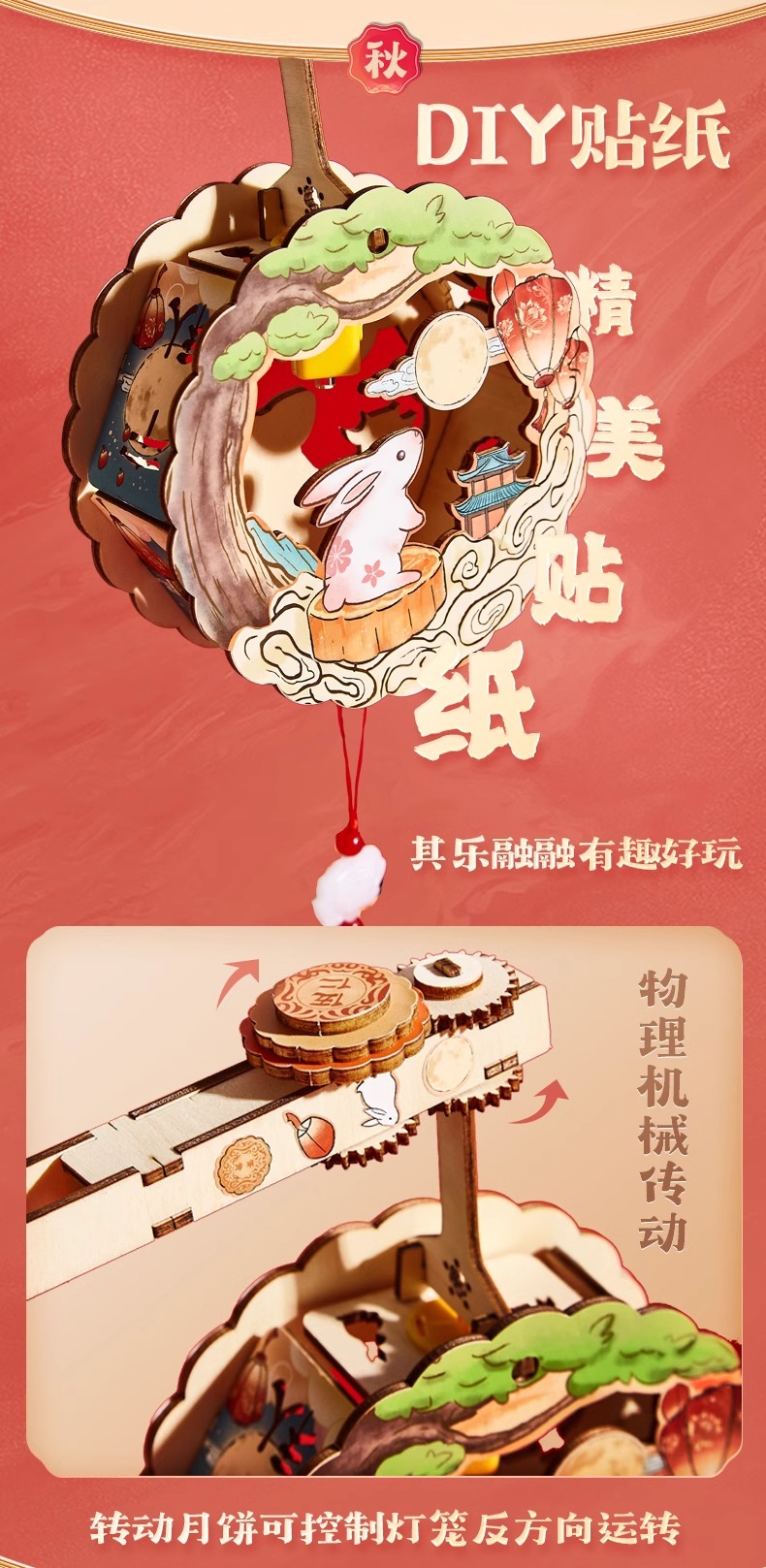 【不仅是灯笼 还可以是冰箱贴】索智星DIY星艺趣玉兔云影灯转转灯笼手提木质灯笼儿童中秋礼物
