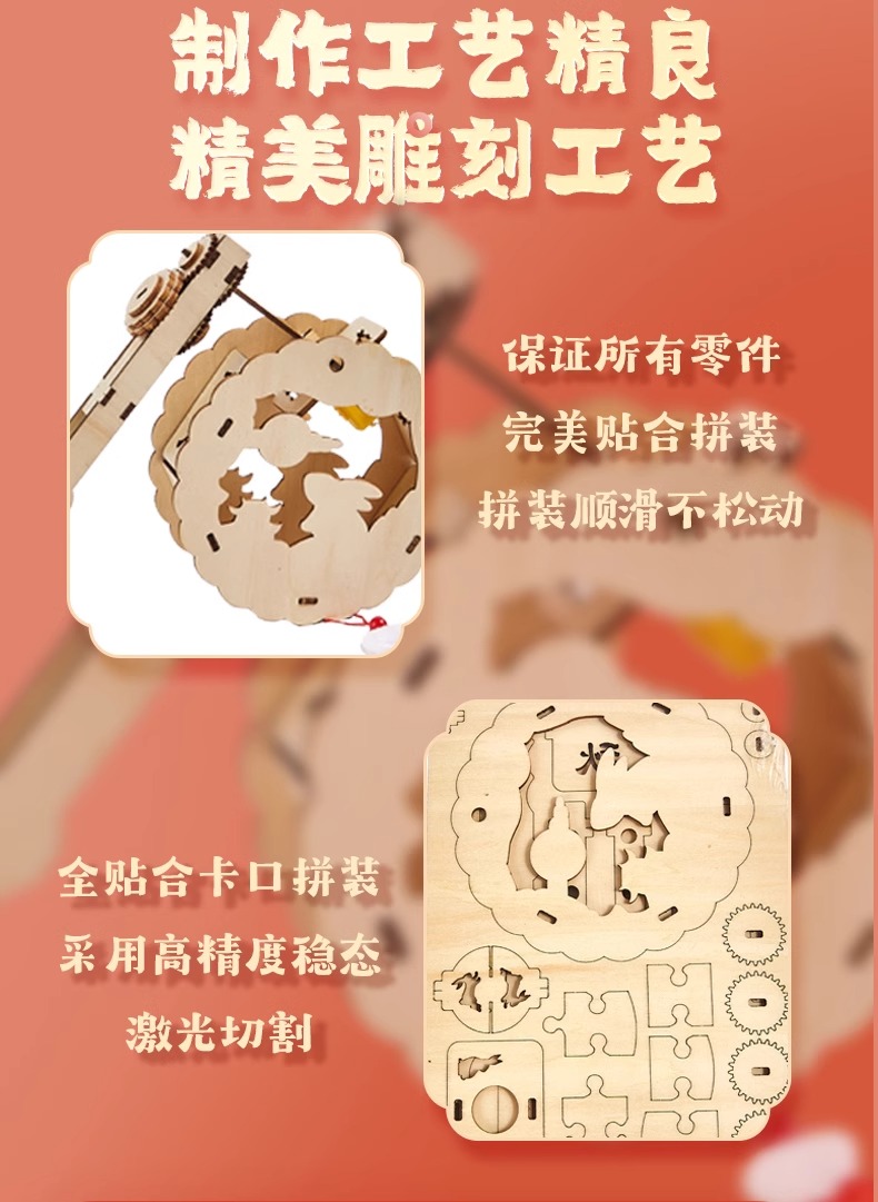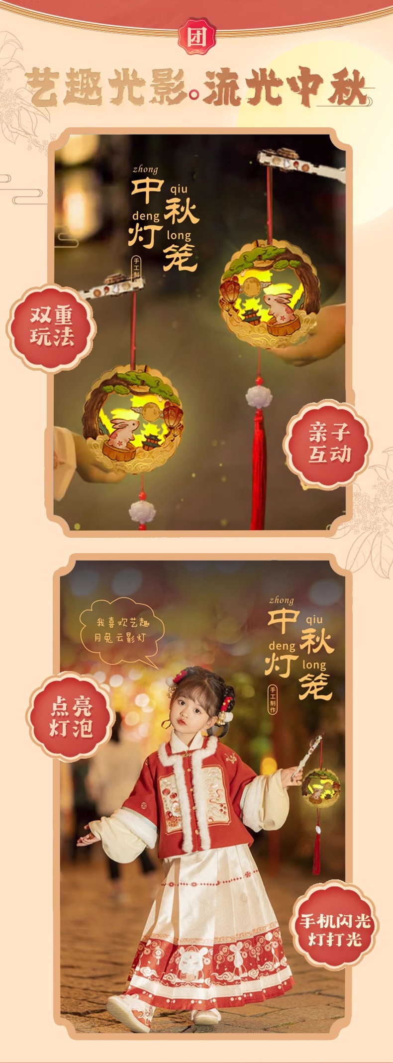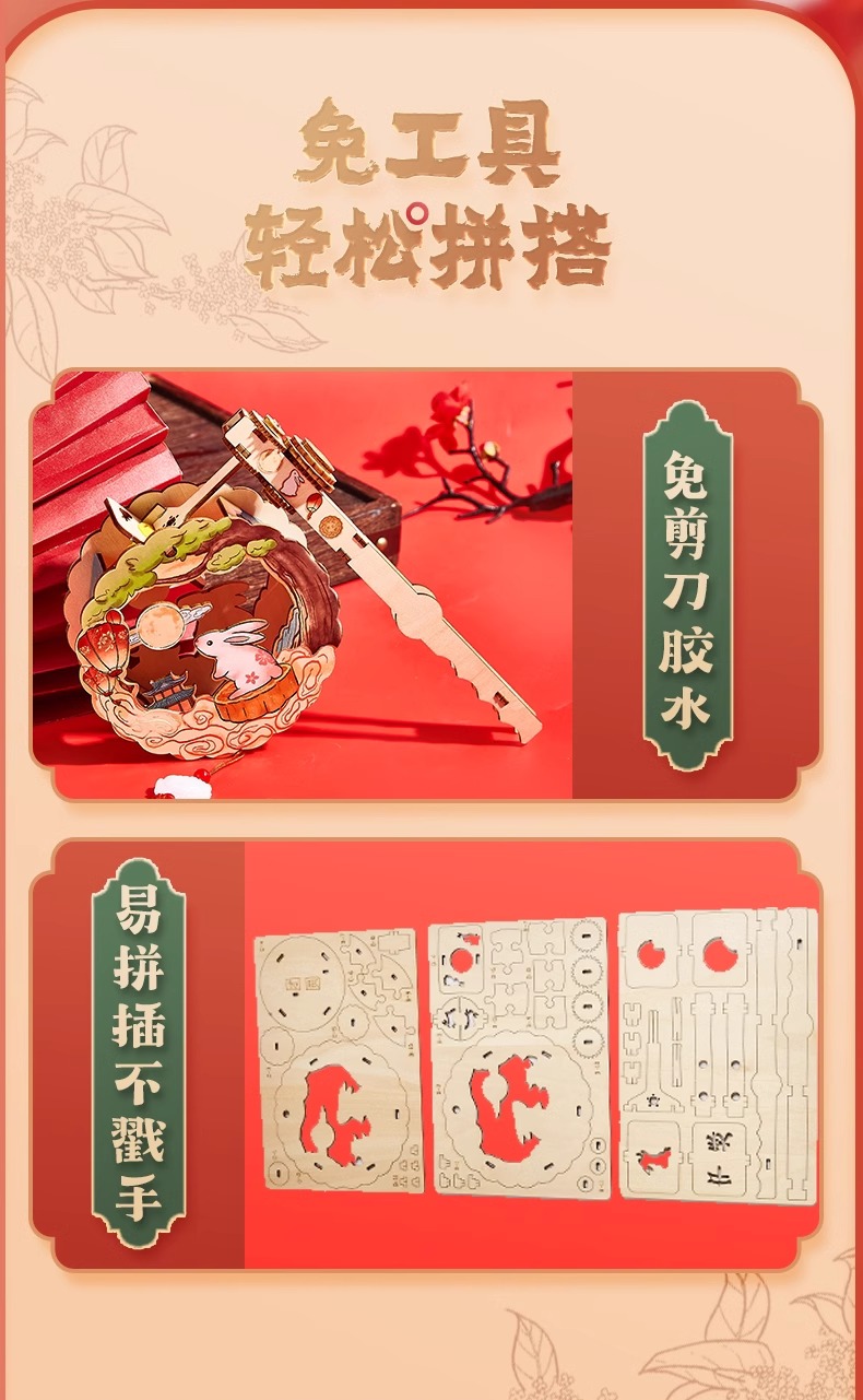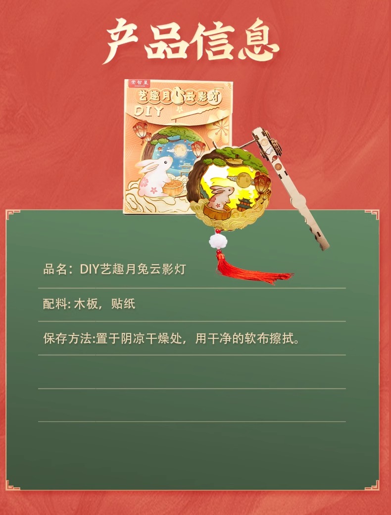 【不仅是灯笼 还可以是冰箱贴】索智星DIY星艺趣玉兔云影灯转转灯笼手提木质灯笼儿童中秋礼物