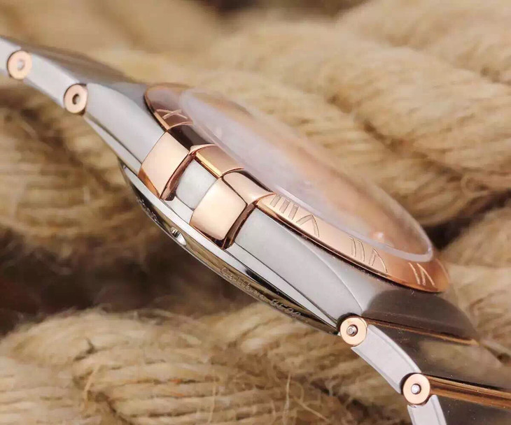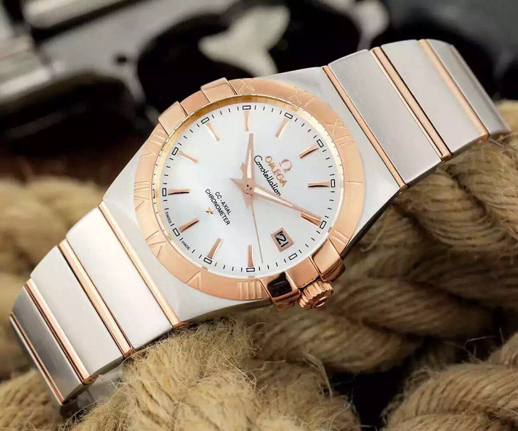 V6欧米茄星座系列123.20.38.21.52.002机械男士手表,大号38.5mm,小号35.5mm。精钢镀18k表链表壳,8500全自动机械机芯,蓝宝石镜面,具备诸多新颖设计元素。