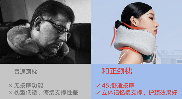 不仅有按摩功能,枕型、填充物也和普通U型枕不同。