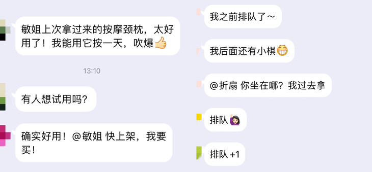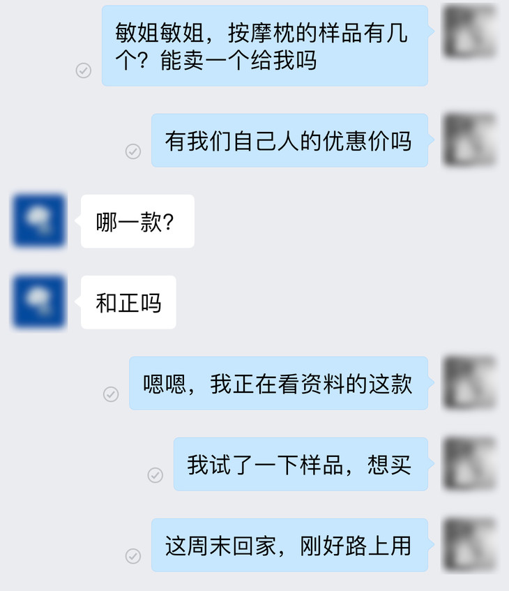 “敏姐敏姐,按摩枕的样品有几个,可以卖一个给我吗?”