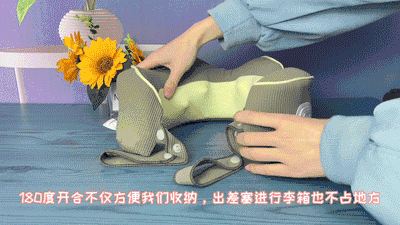 因为用的是柔软记忆棉,它可以完全180°展开,全身按摩!