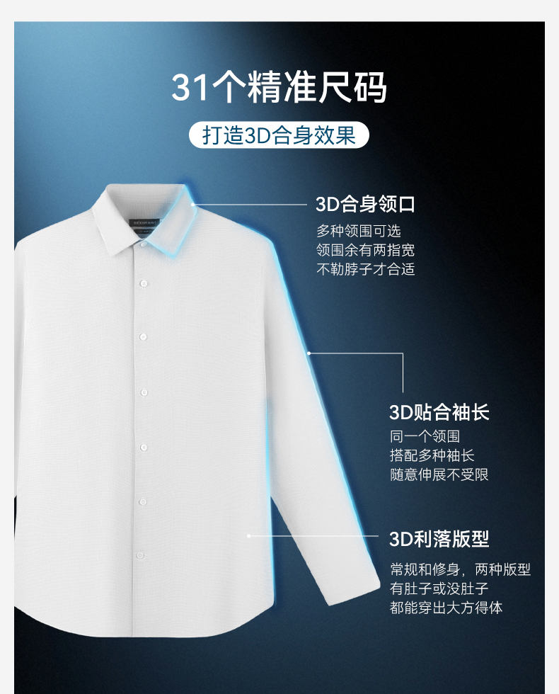 直尖领汗无痕长袖免烫衬衫-406-02