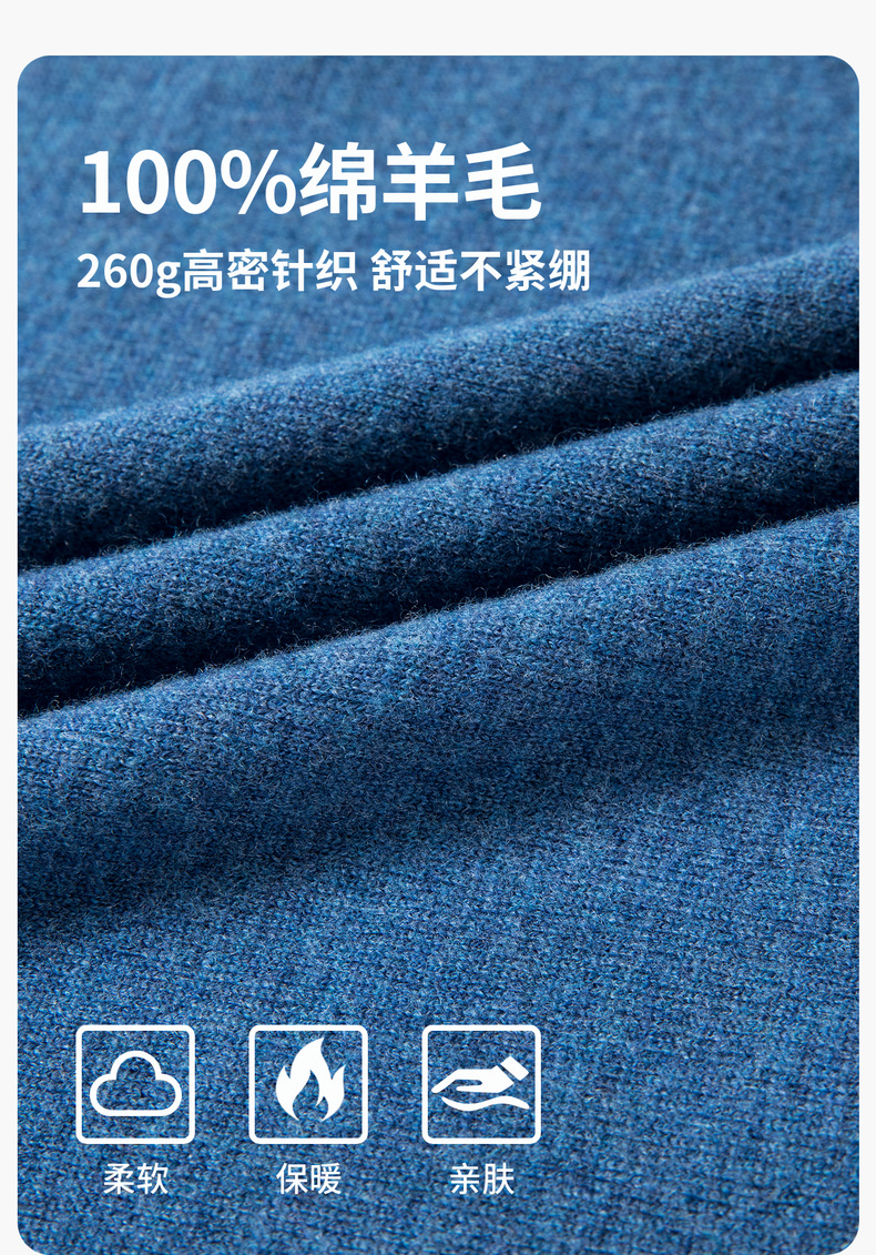 【含绵羊毛】圣得西男士亲肤柔软羊毛混纺高密针织衫2025秋季新款百搭舒适毛衣