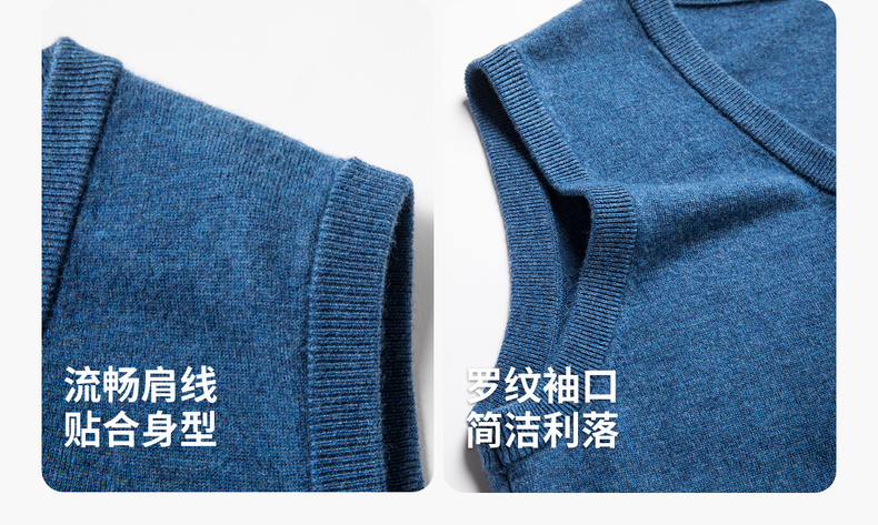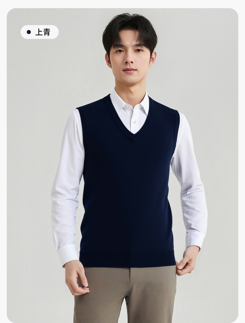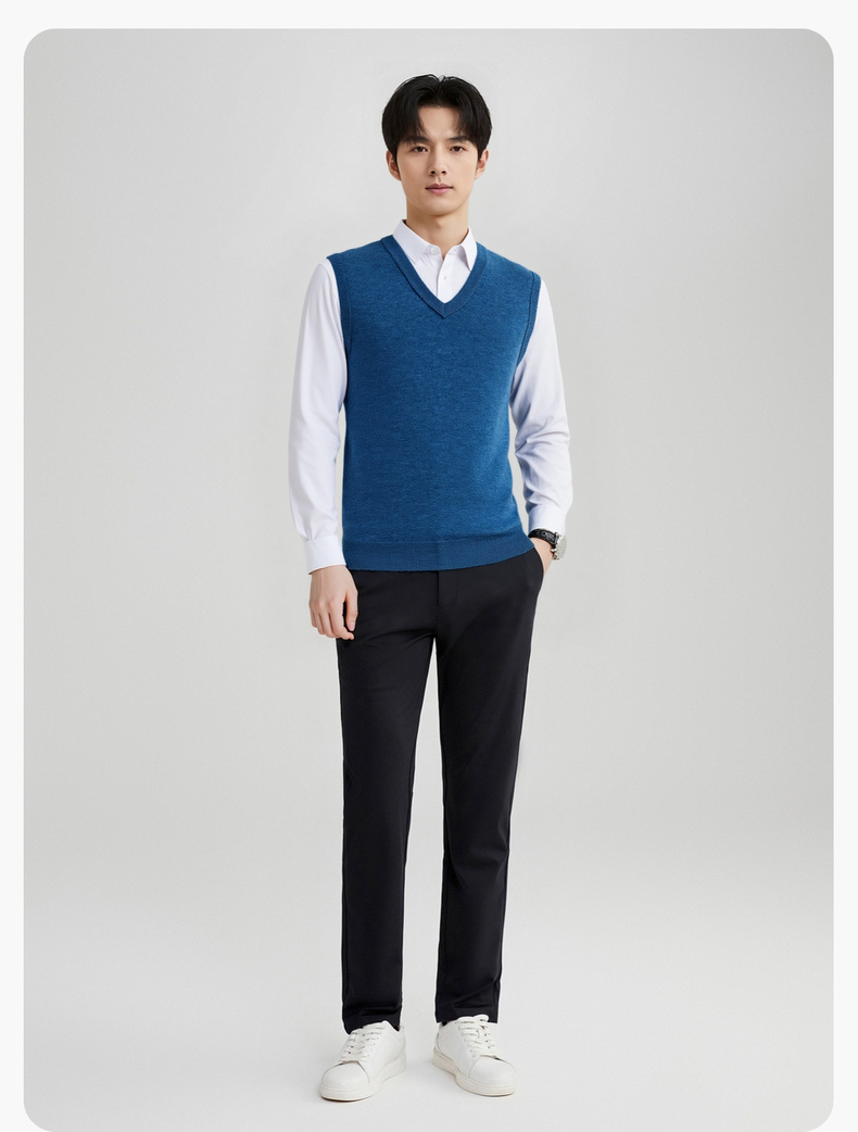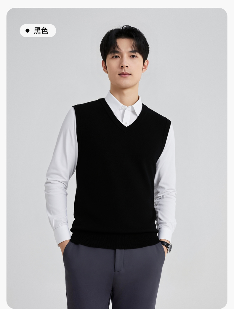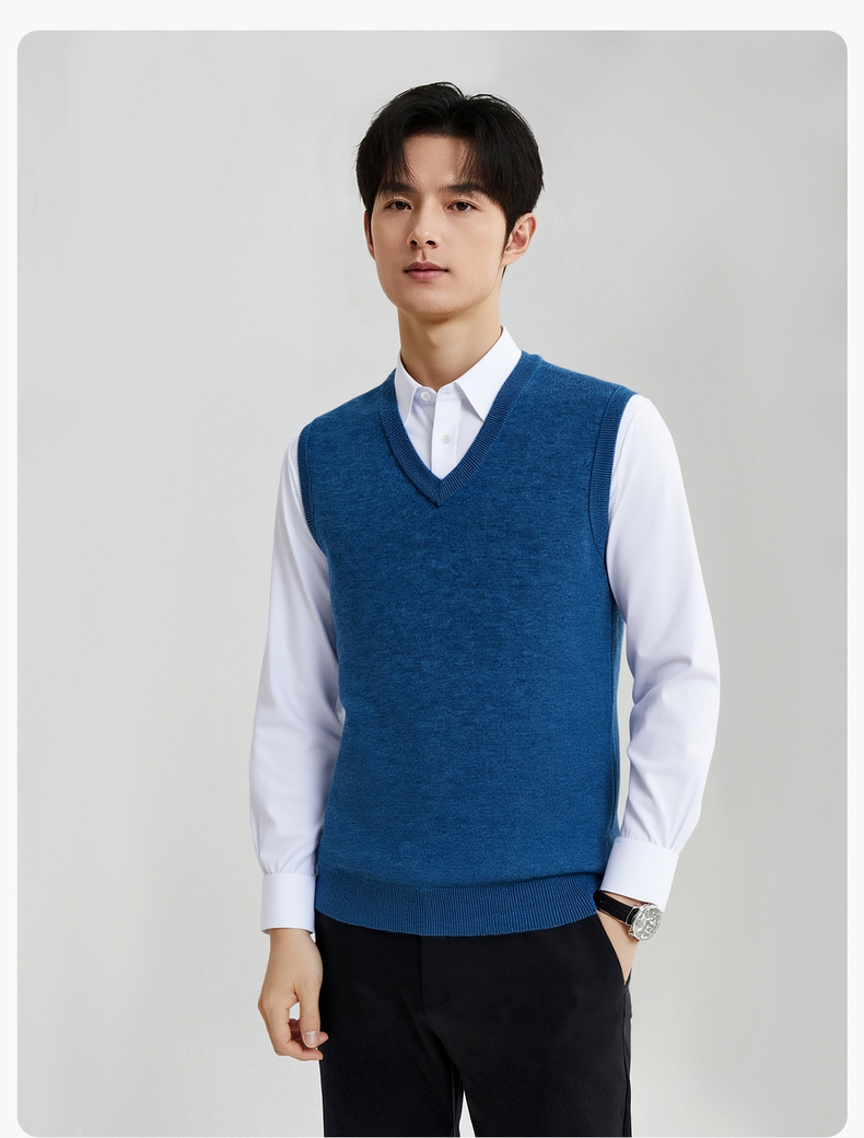 【100%绵羊毛】 圣得西男士行政风v领背心2025秋新款亲肤保暖毛衣