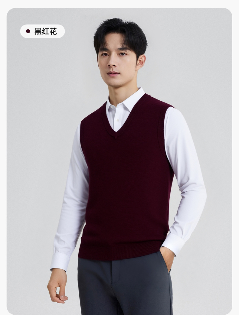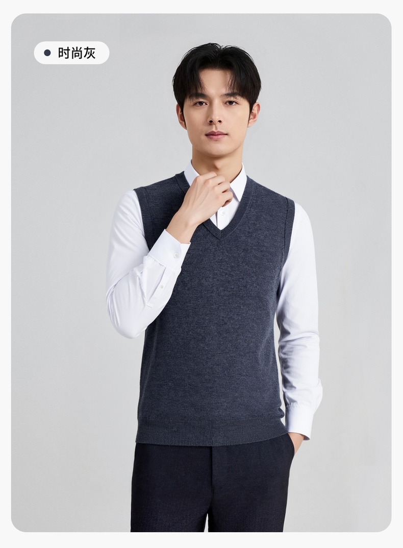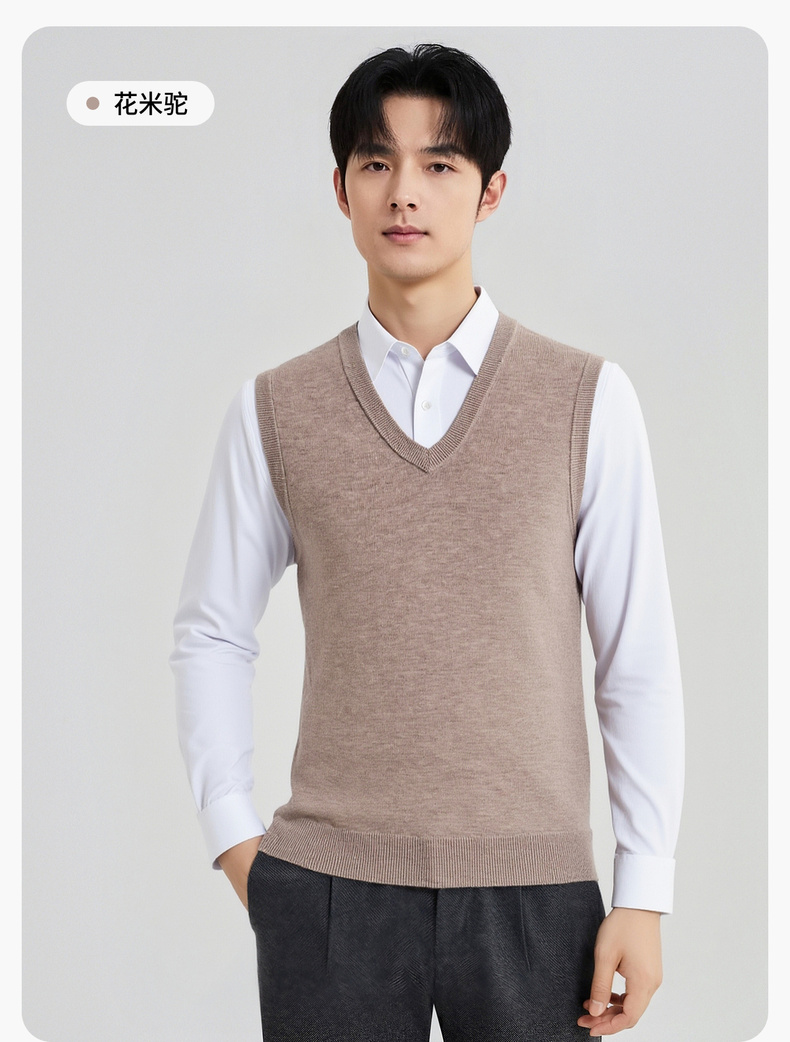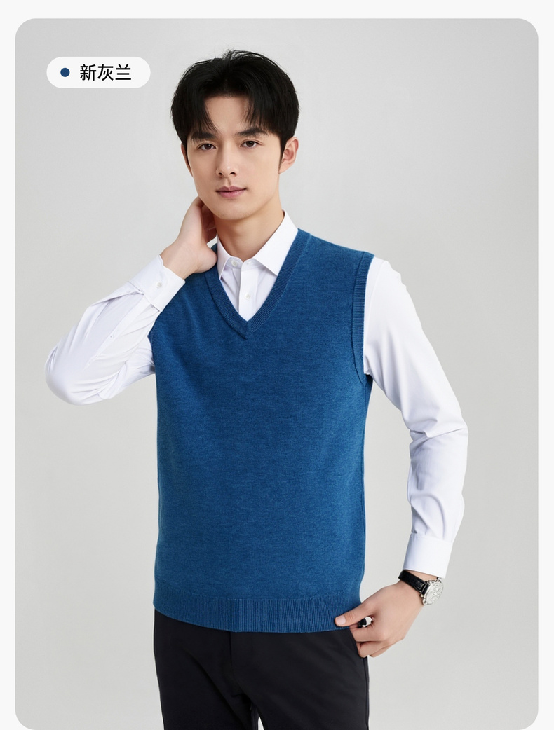 【100%绵羊毛】 圣得西男士行政风v领背心2025秋新款亲肤保暖毛衣