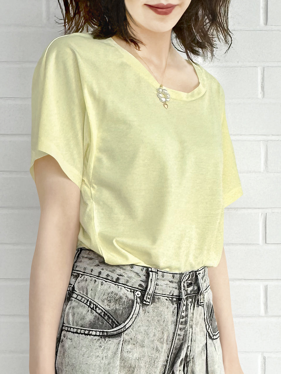 TYNVIE 不对称蝴蝶结领口两面穿T恤 - 黄色