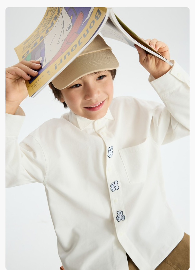 漫画家【好朋熊衬衫】儿童衬衫气质优雅翼领精致刺绣学院衬衫男女