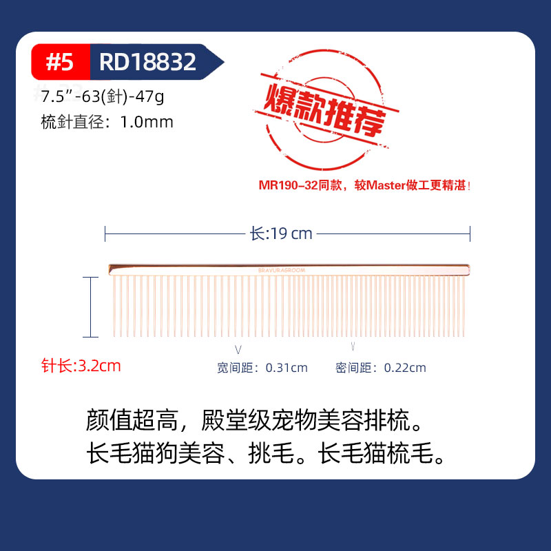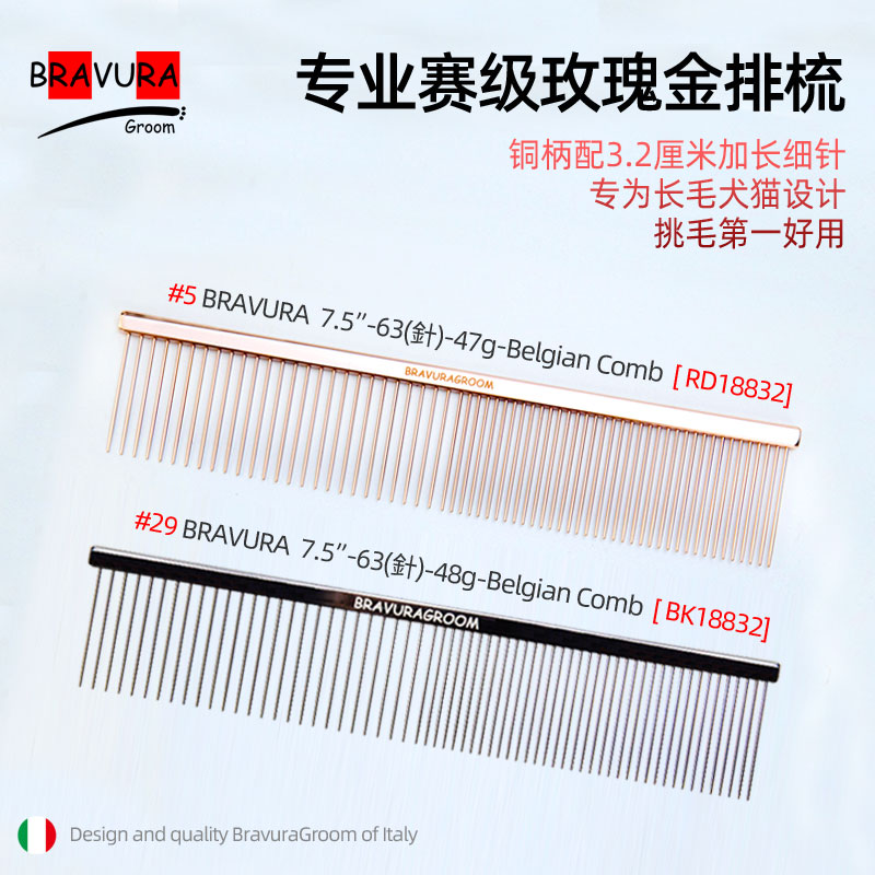 宠物玫瑰金排梳【#5】宠物美容钢琴排梳 意大利BRAVURAGROOM