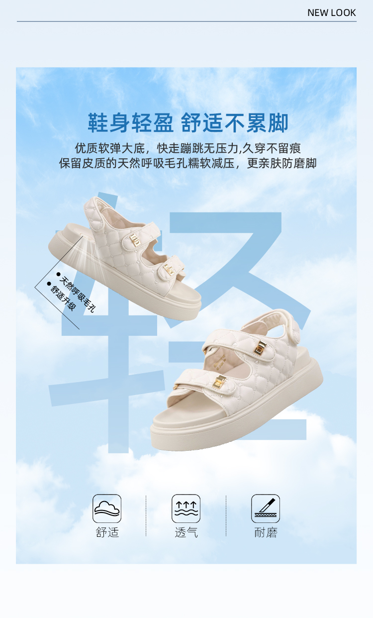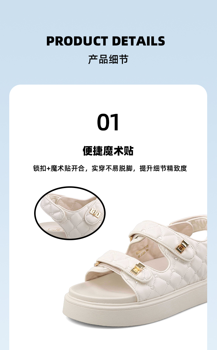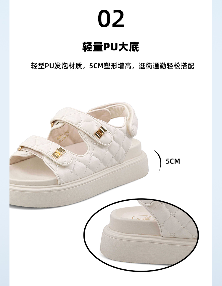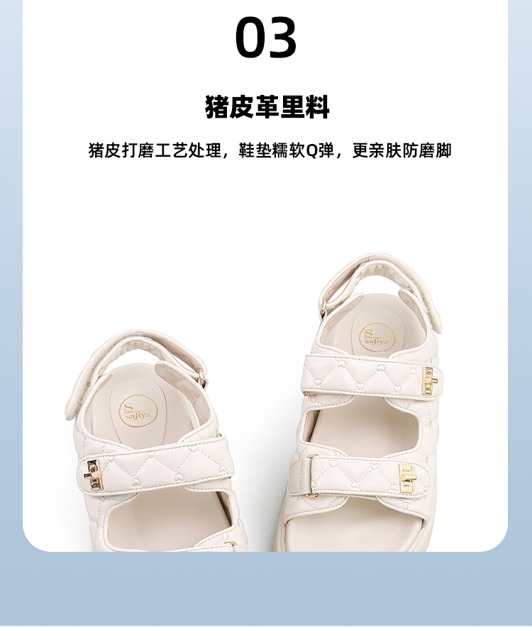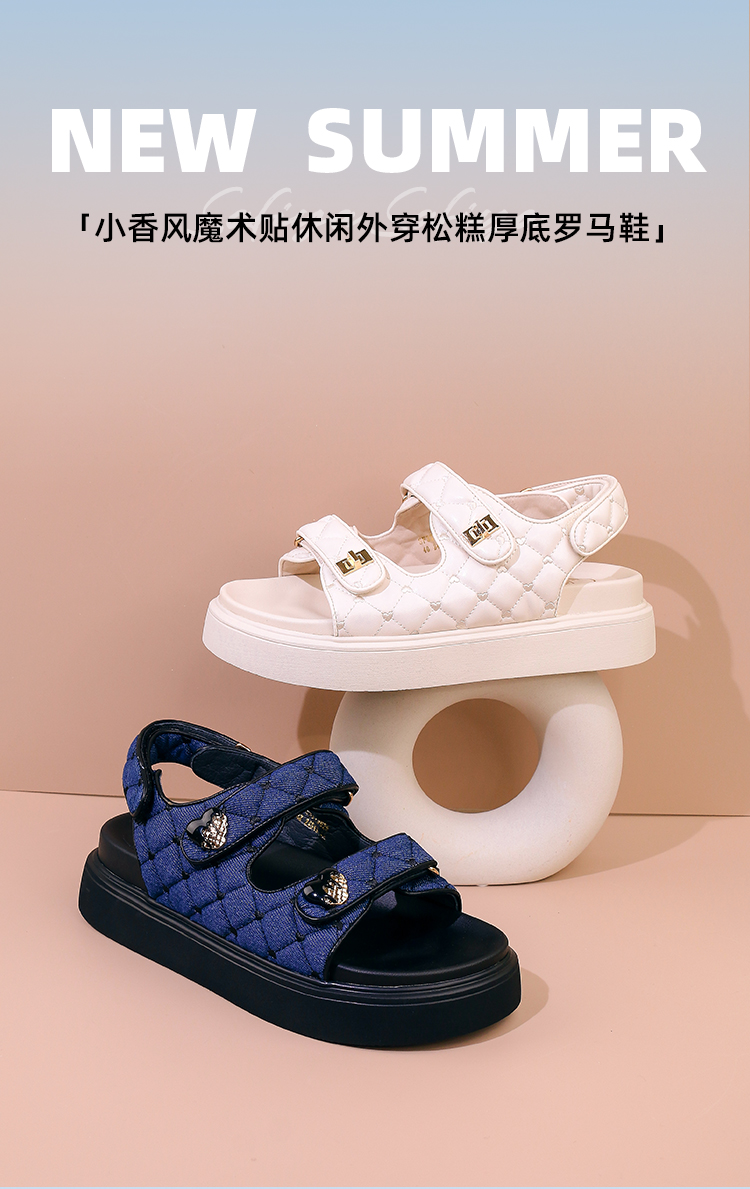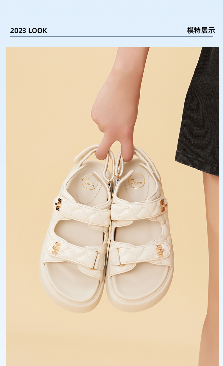 Safiya/索菲娅2023夏季新品小香风魔术贴休闲外穿松糕厚底罗马鞋 SF32115028