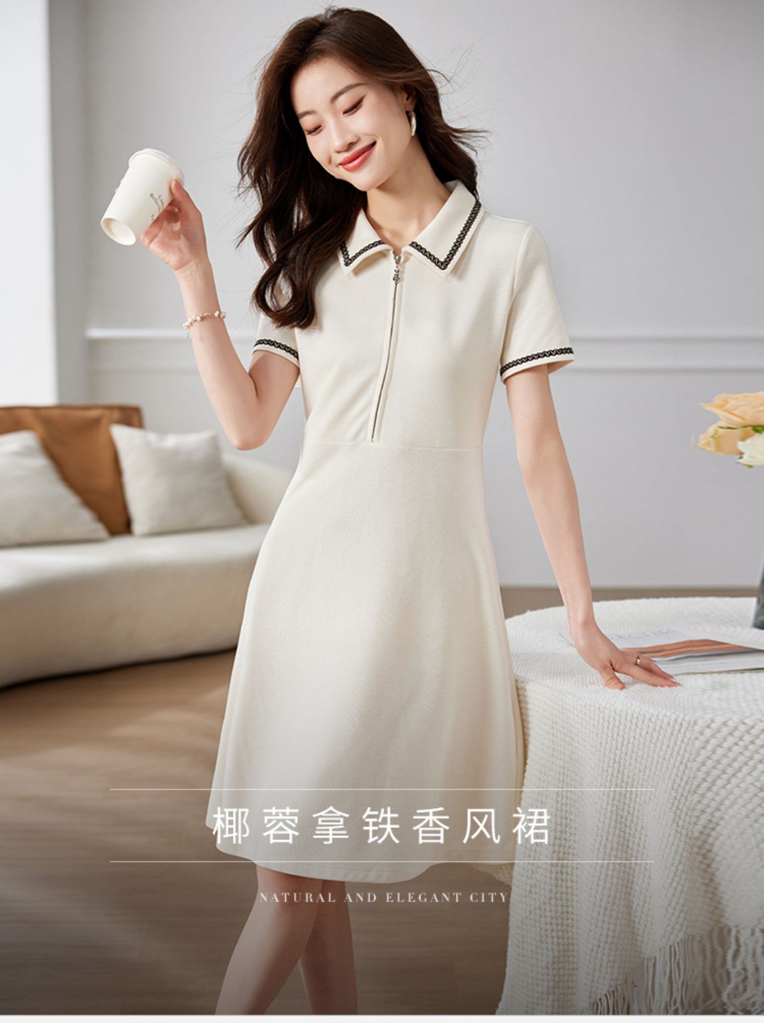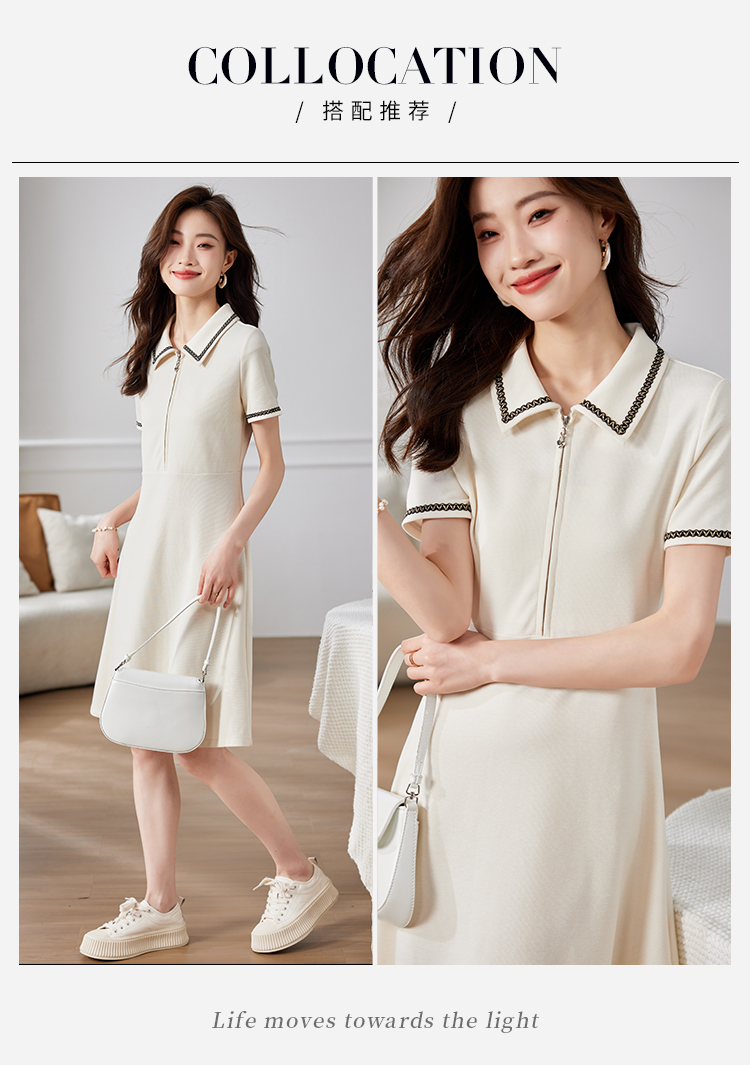 【专属特价】熙世界华夫格polo领连衣裙女短袖时尚小香风休闲裙子2025夏季新款
