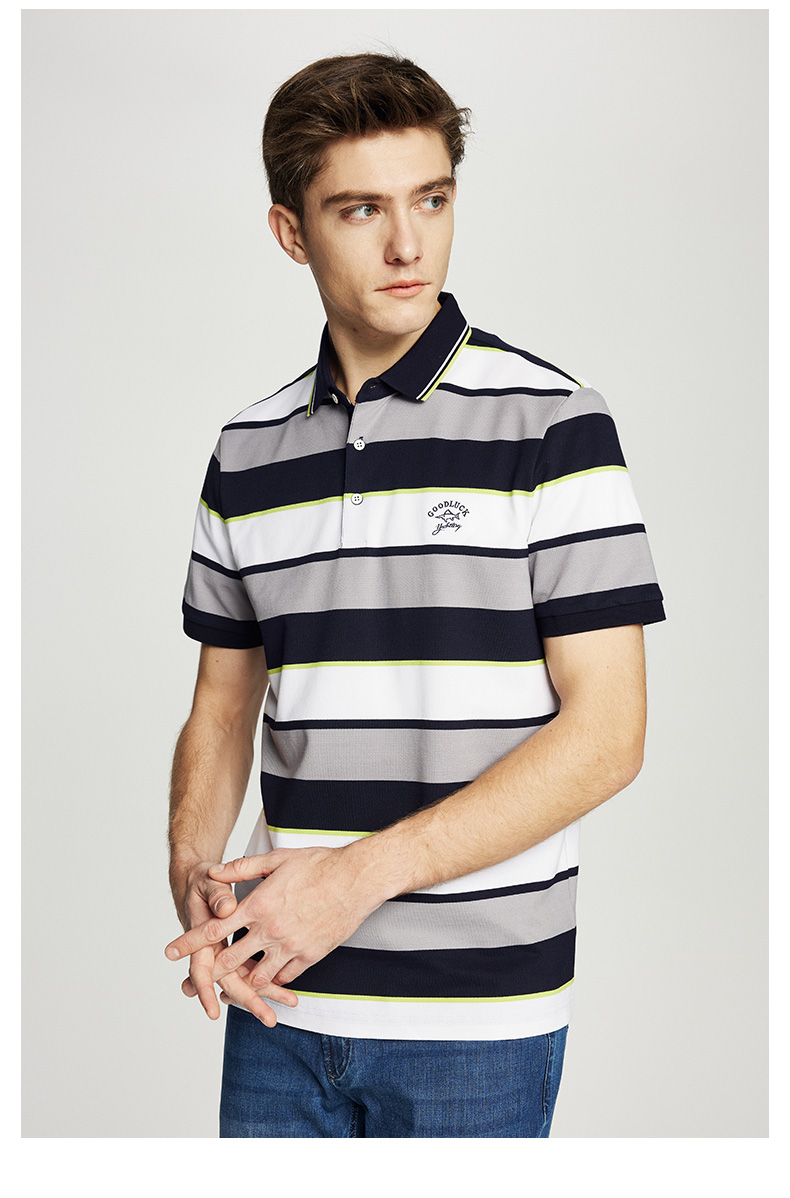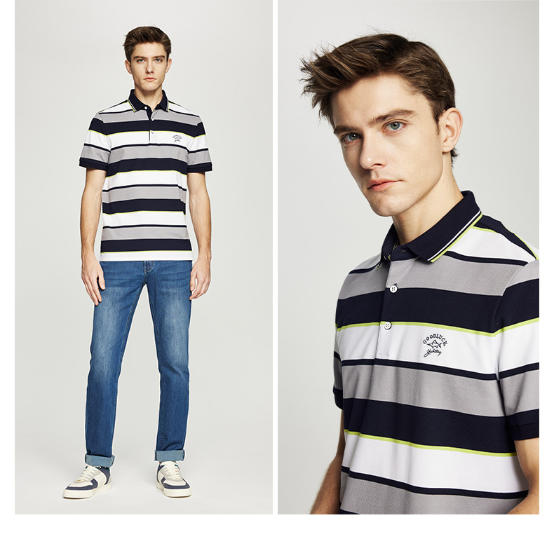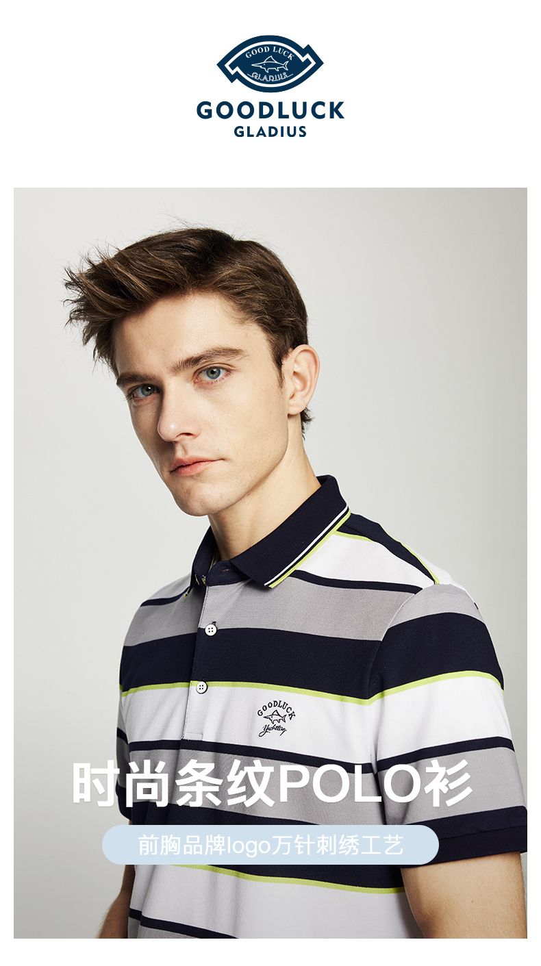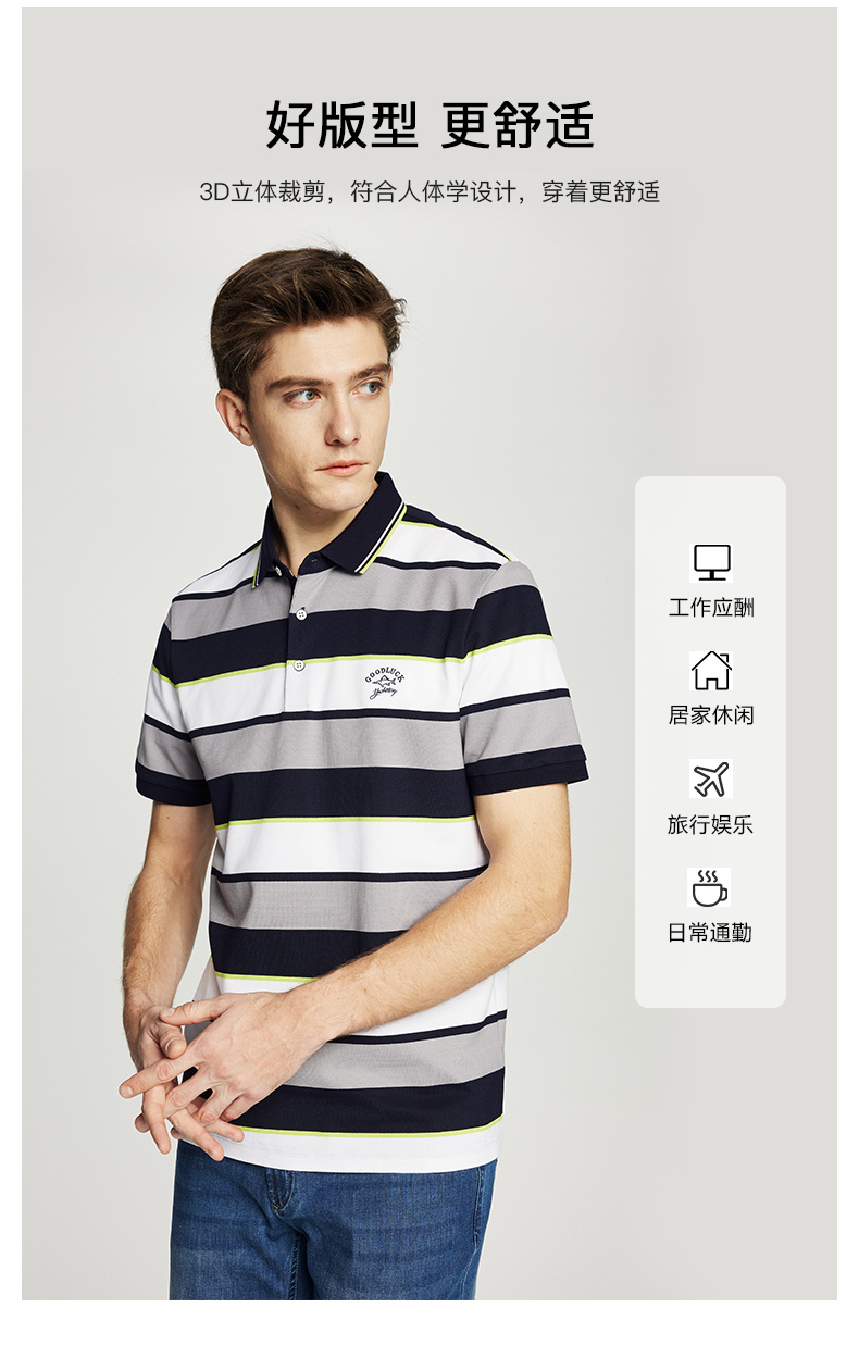 德鲨鲨鱼男士短袖POLO衫2026夏新款休闲商务翻领条纹T恤男