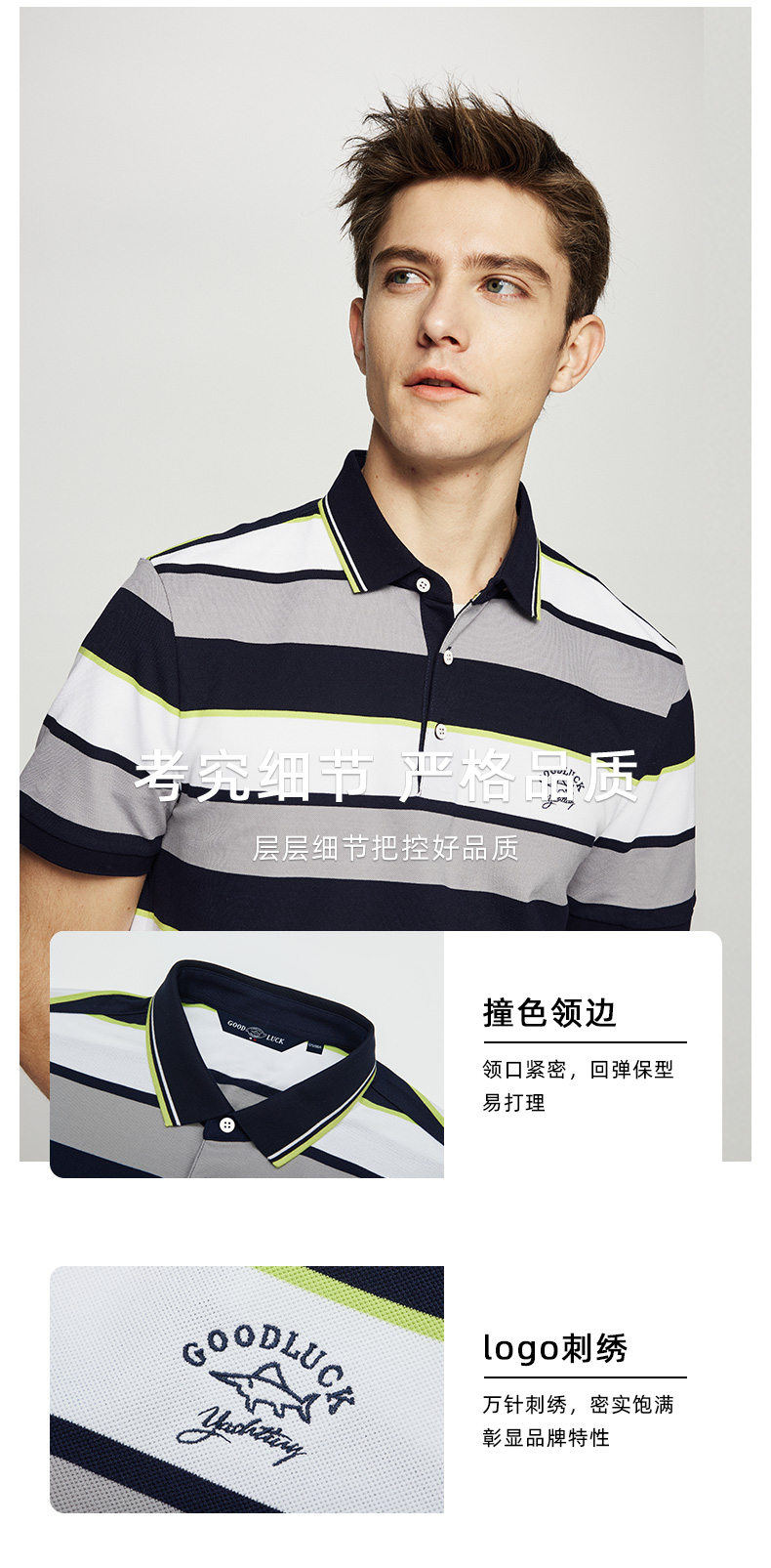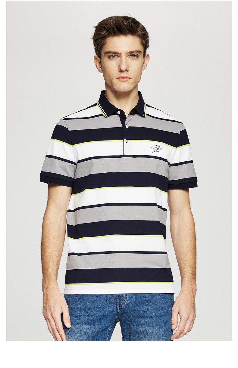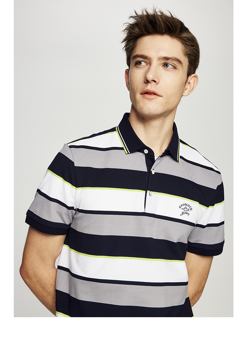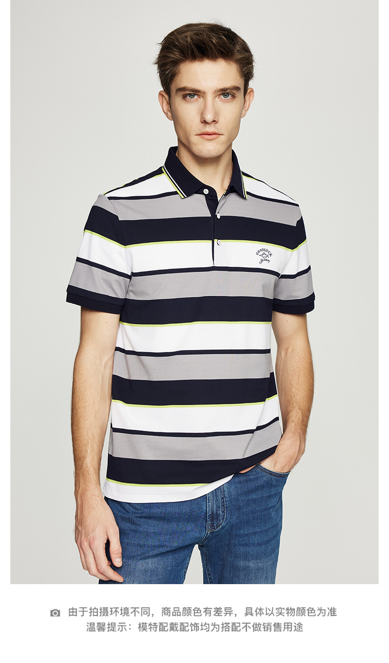 德鲨鲨鱼男士短袖POLO衫2026夏新款休闲商务翻领条纹T恤男