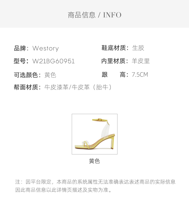 westory女鞋2021夏季新款漆皮高跟仙女一脚蹬凉鞋外穿W21BG60951