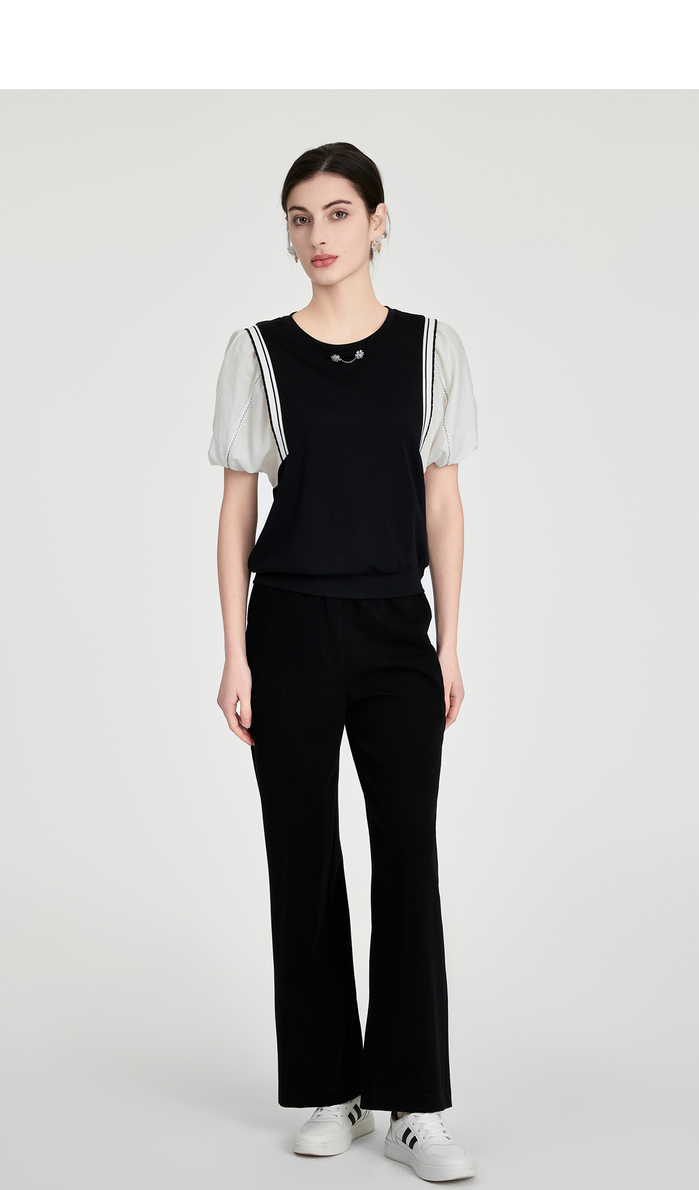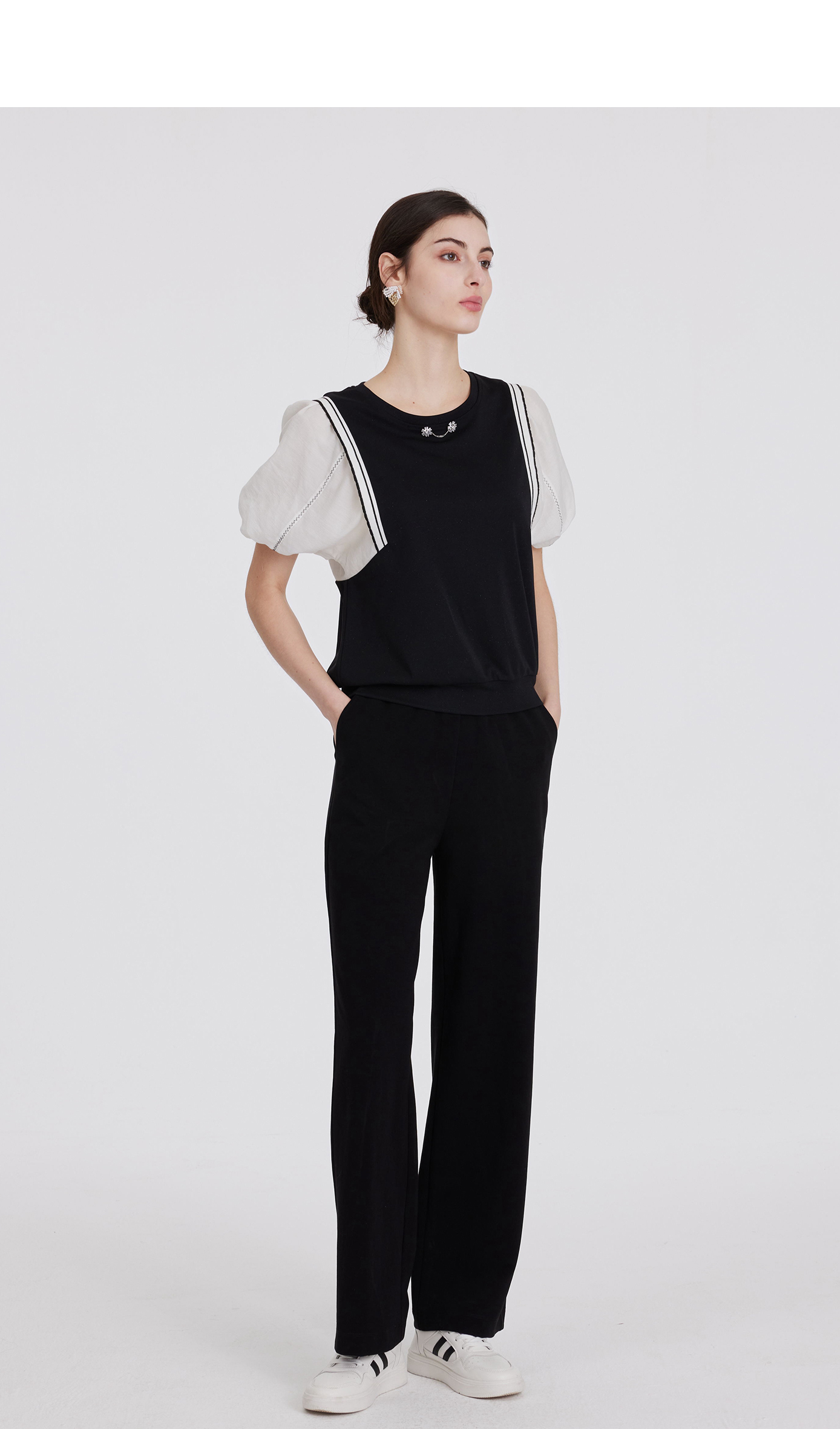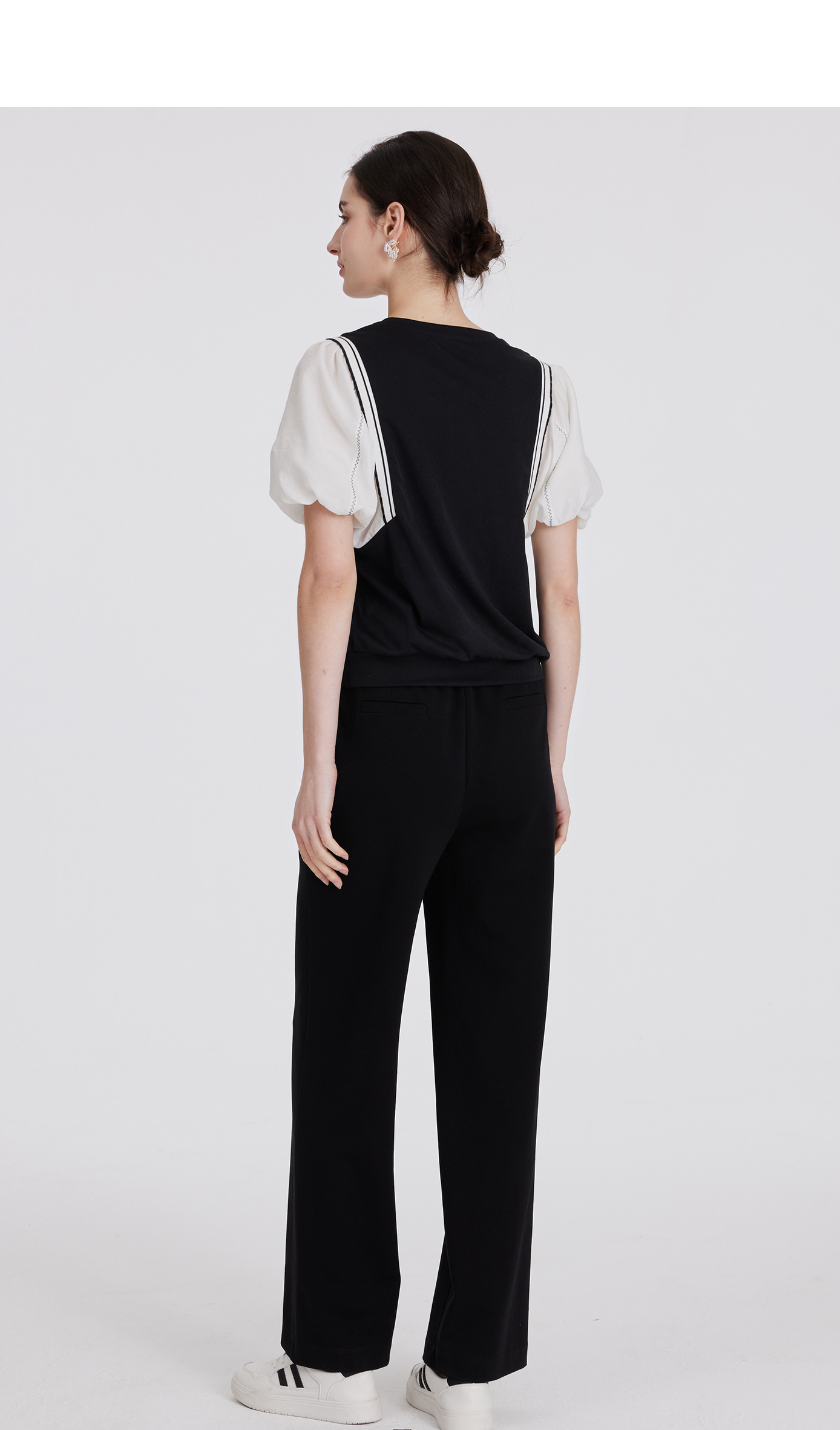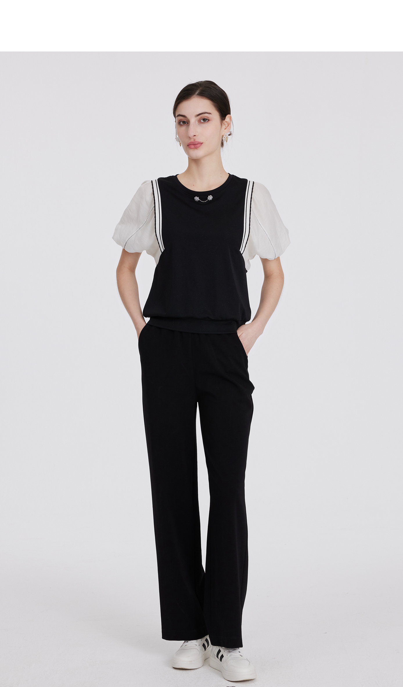 司歌灯笼袖宽松休闲套头上衣假两件T891186y