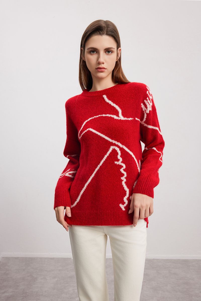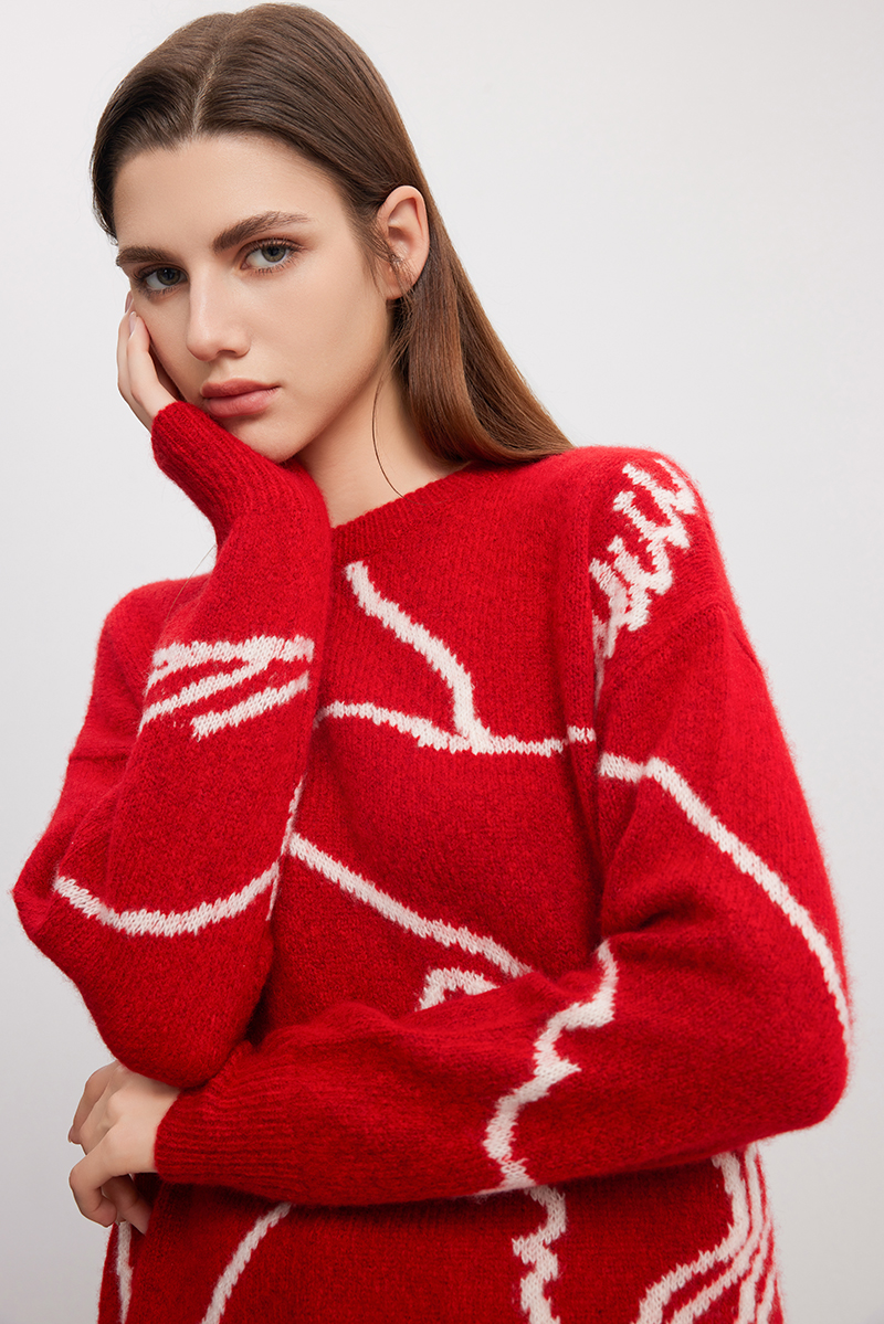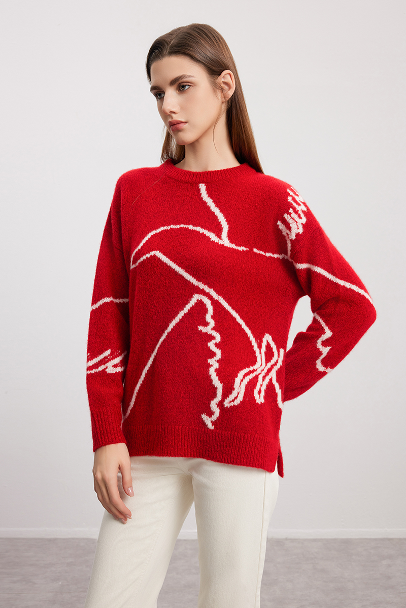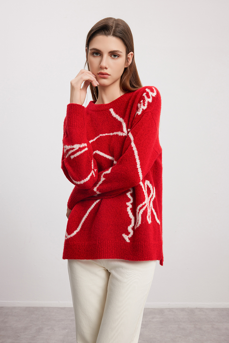 【羊绒+桑蚕丝针织衫】羊绒世家秋冬新品女士宽松直筒针织衫慵懒风保暖毛衣