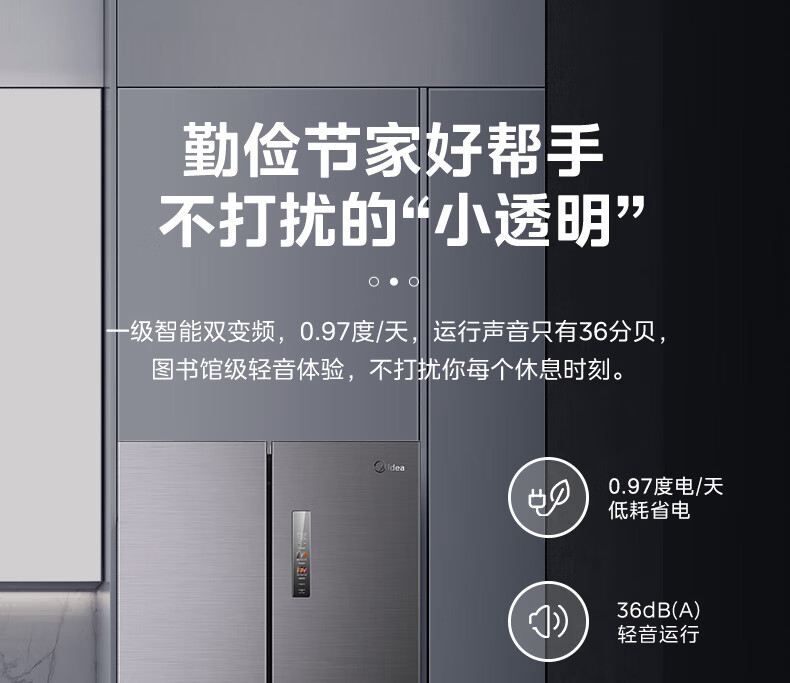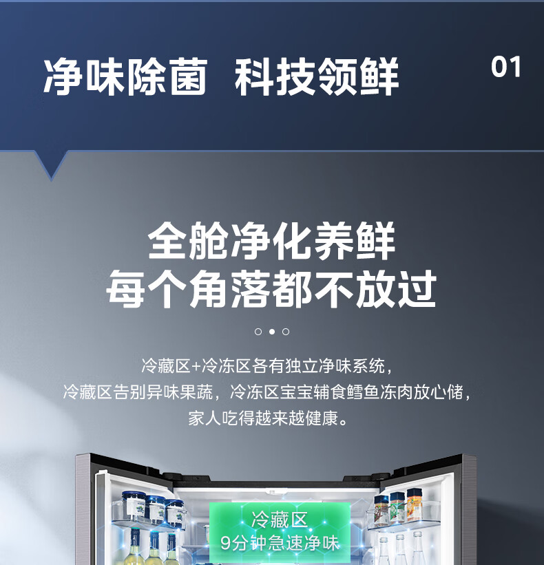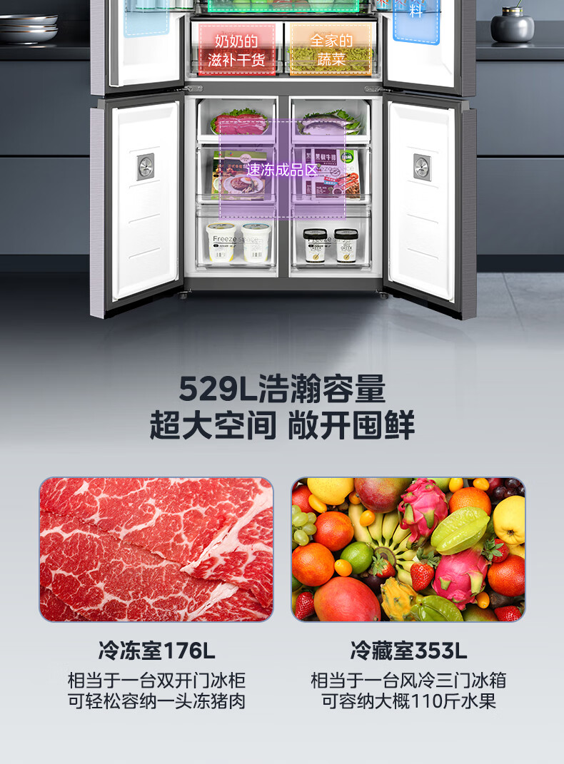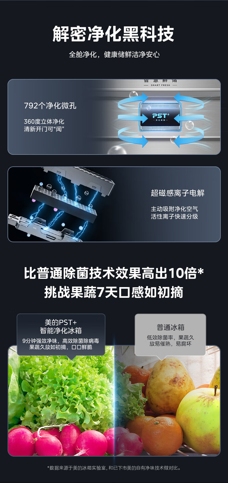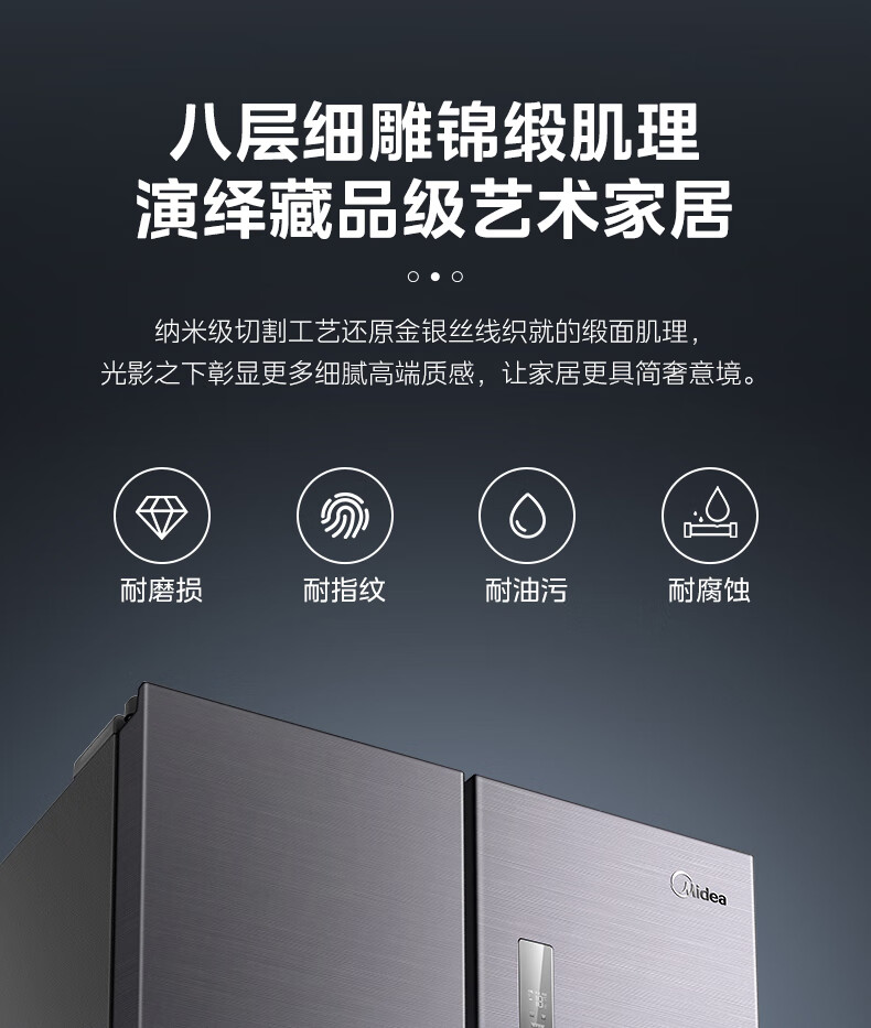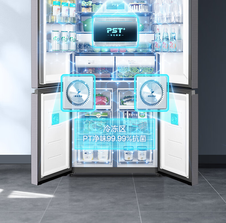 美的(Midea)9分钟急速净味529升一级能效十字对开双开门四开门家用智能电冰箱除菌BCD-529WSPZM(E)超薄大容量