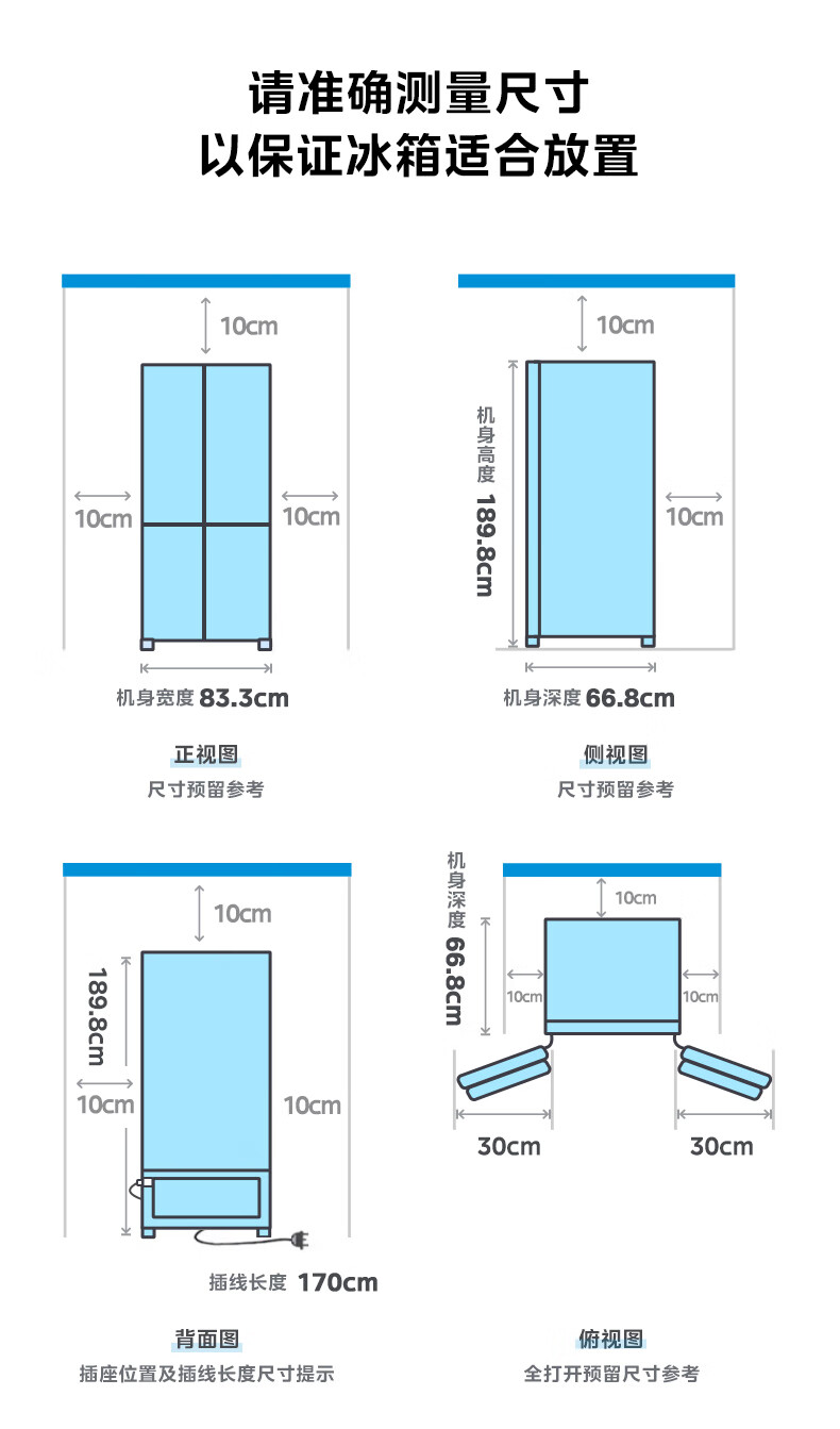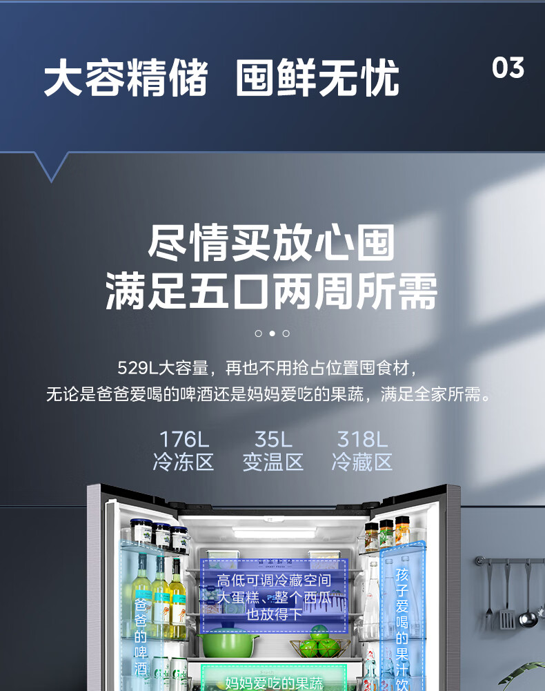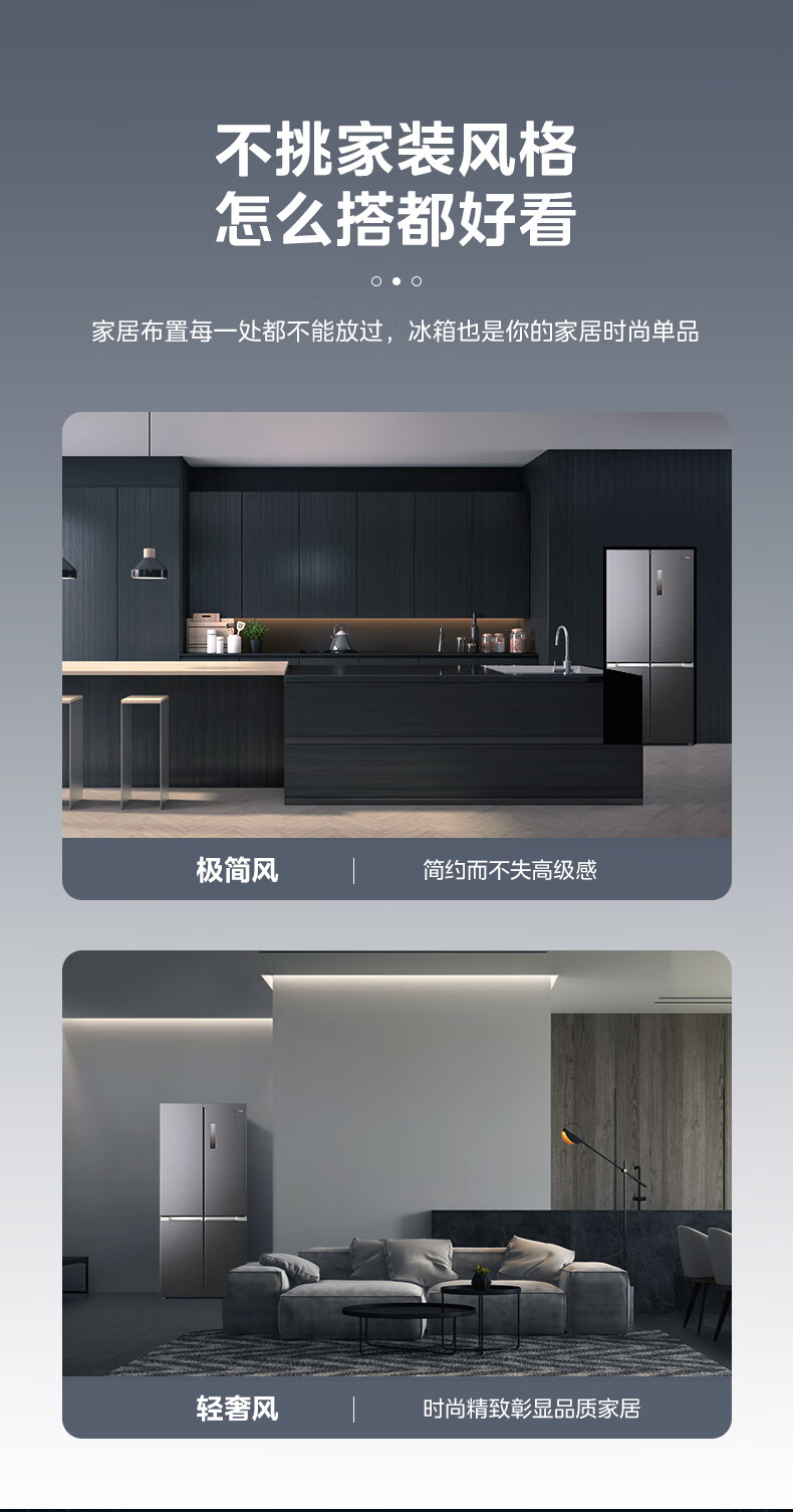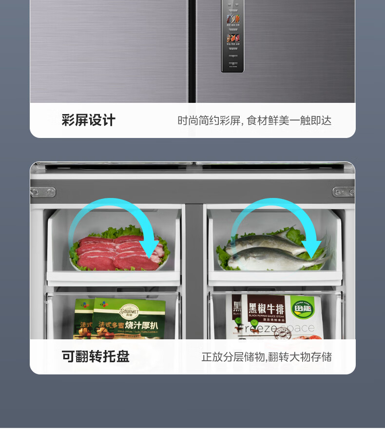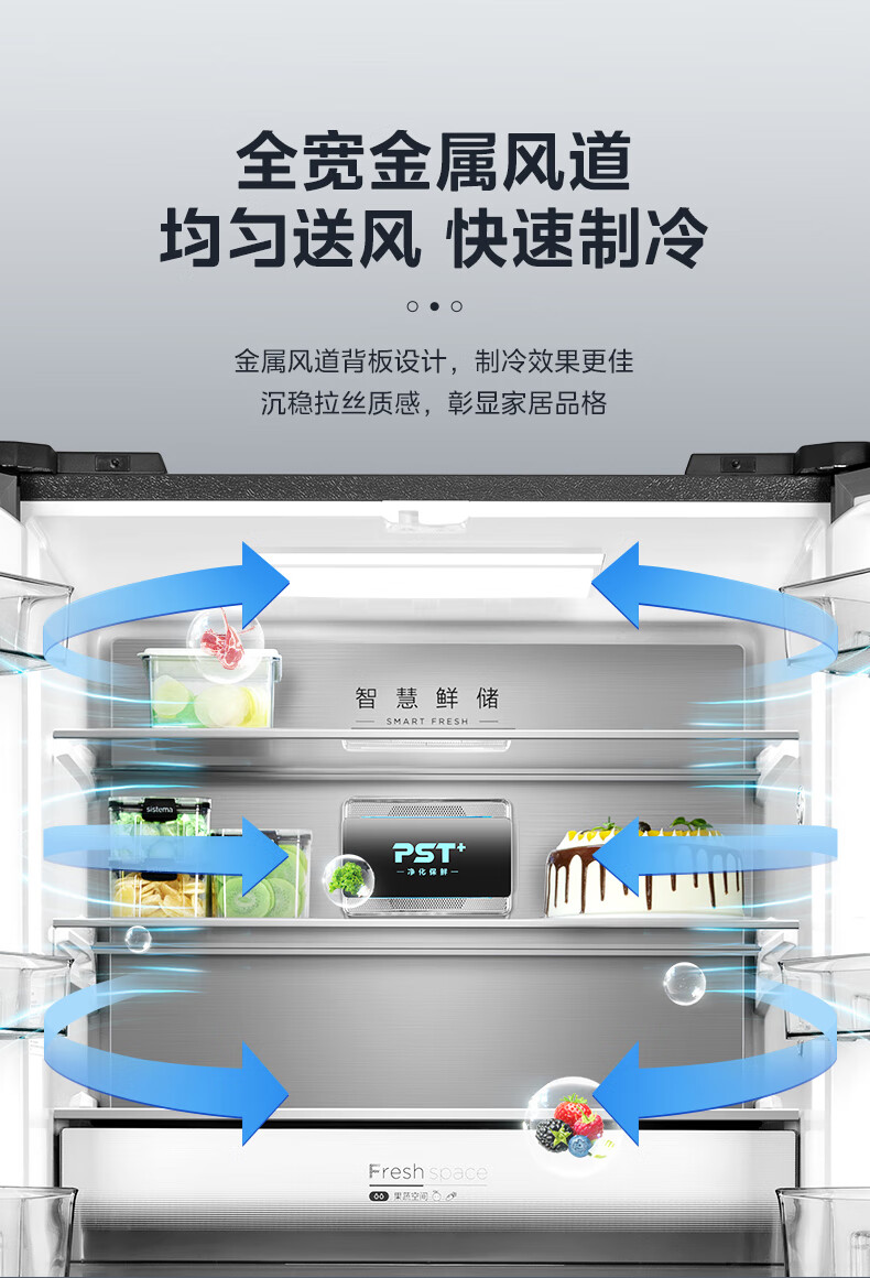 美的(Midea)9分钟急速净味529升一级能效十字对开双开门四开门家用智能电冰箱除菌BCD-529WSPZM(E)超薄大容量