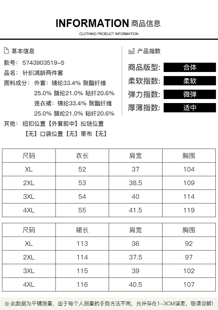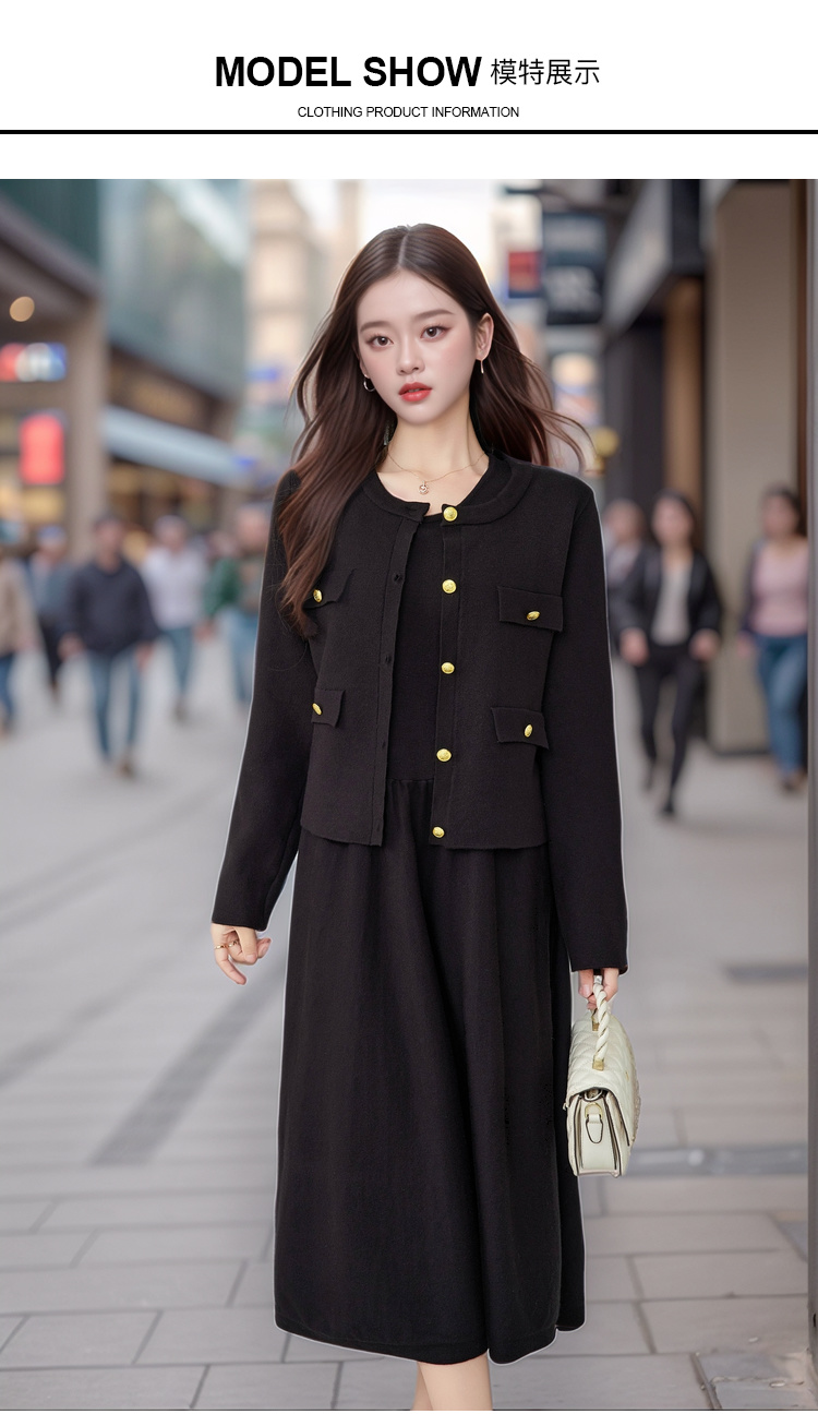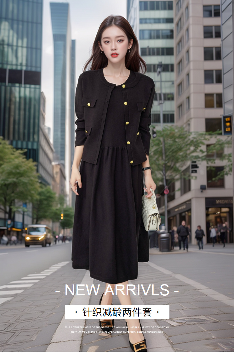 【清仓】奢姿秋季新款大码女装外套连衣裙套装胖妹妹休闲针织两件套5743903519