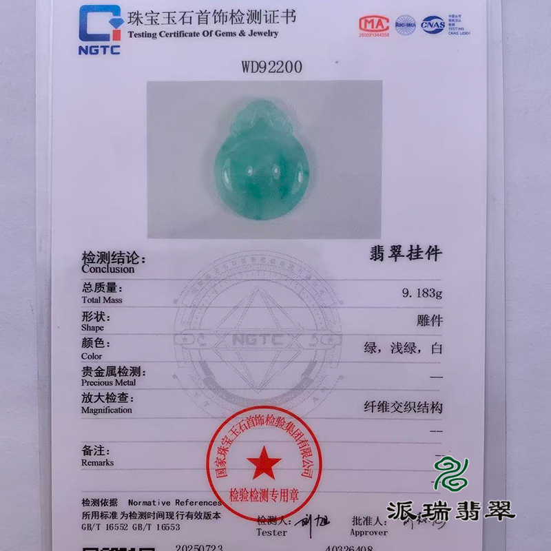 派瑞翡翠 翡翠挂件 糯冰 浅绿