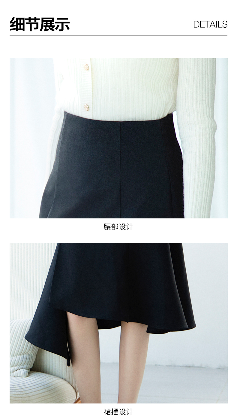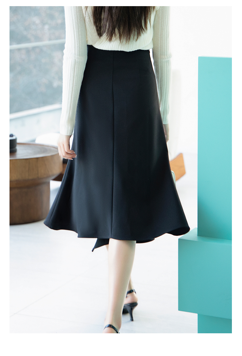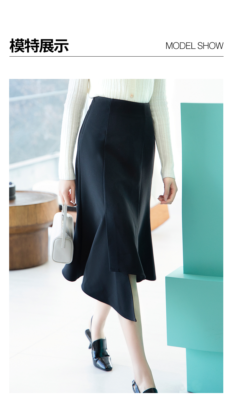 oldcolour春季新品黑色高腰时尚气质不规则百搭半身裙女Q120615A1