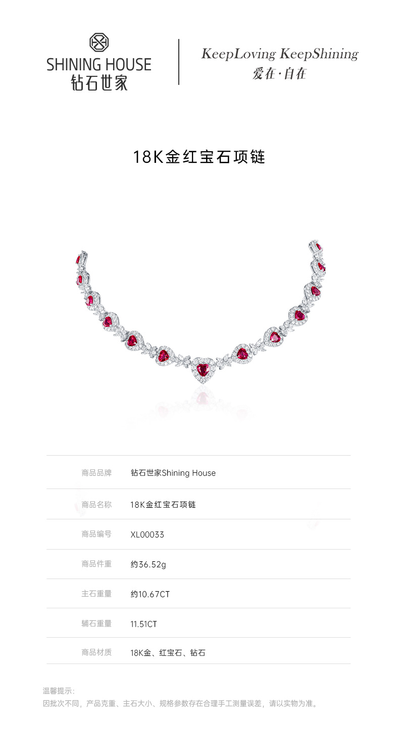 【红宝石项链】钻石世家 18K金红宝石镶钻项链 高级设计珠宝系列 让人一见倾心的红宝石 演绎女性的高贵柔情 也寓意着浪漫炙热的美好感情