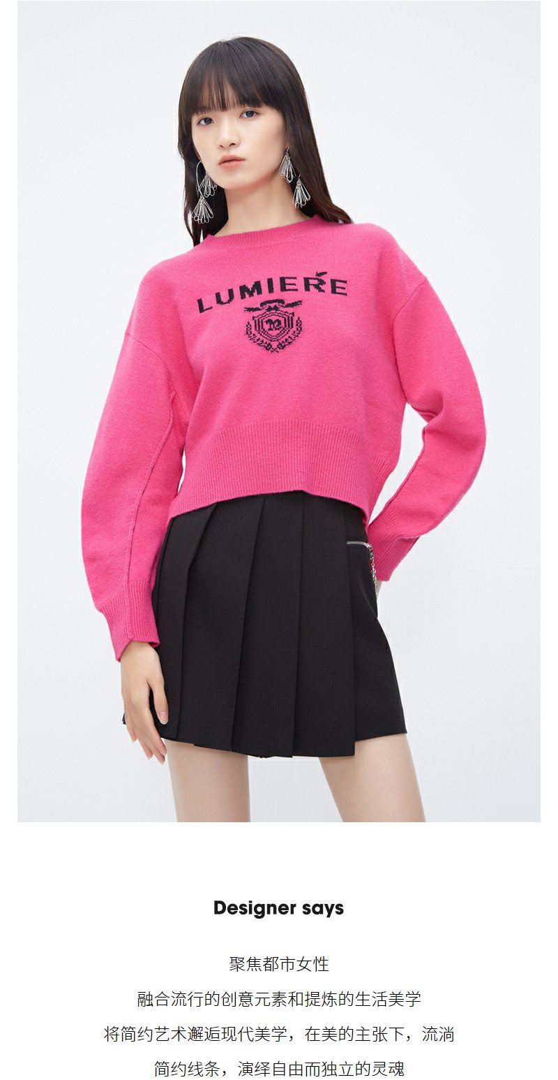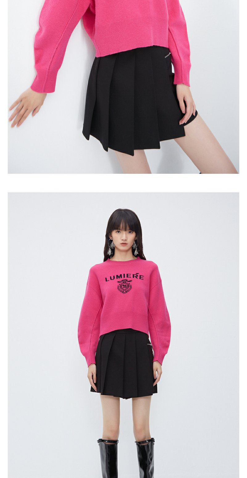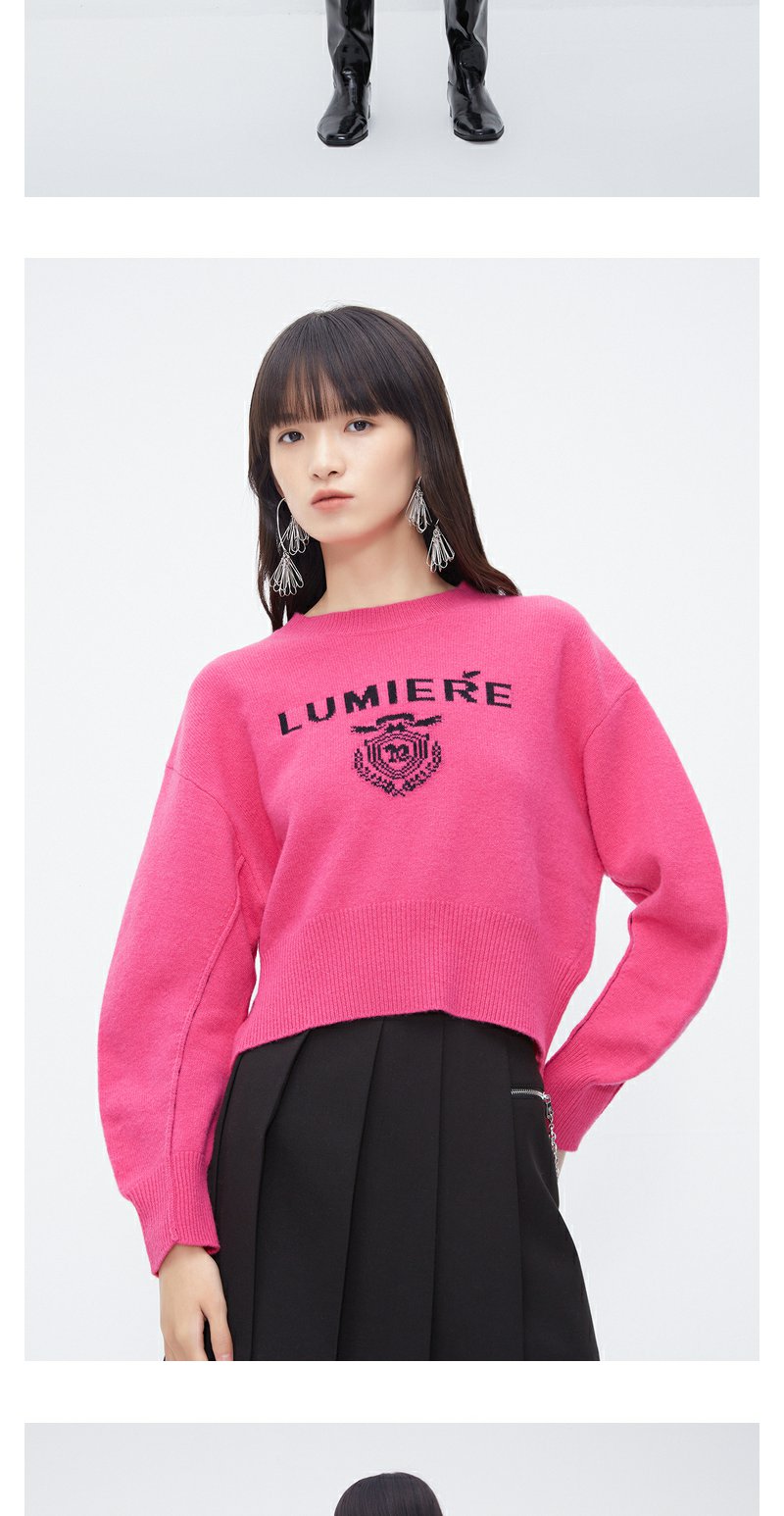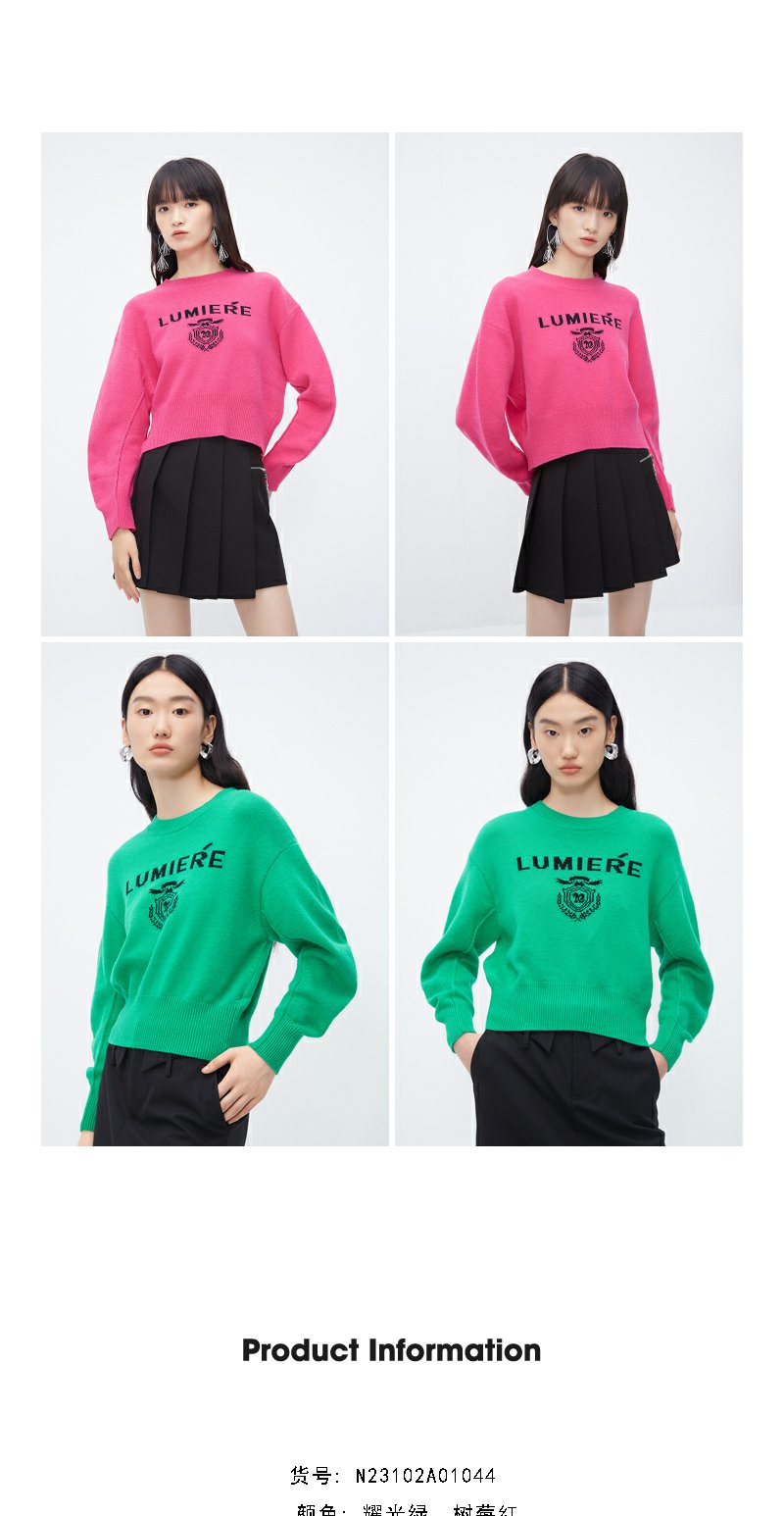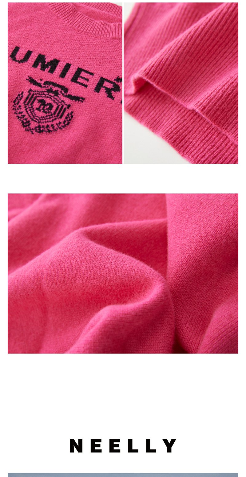 NEELLY纳俪商场同款高腰毛衣女冬季时尚洋气字母刺绣多巴胺短上衣N23102A01044
