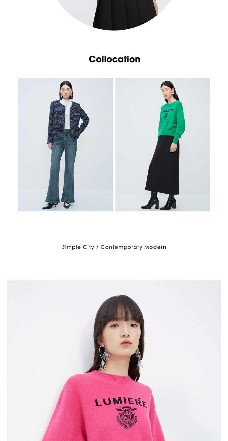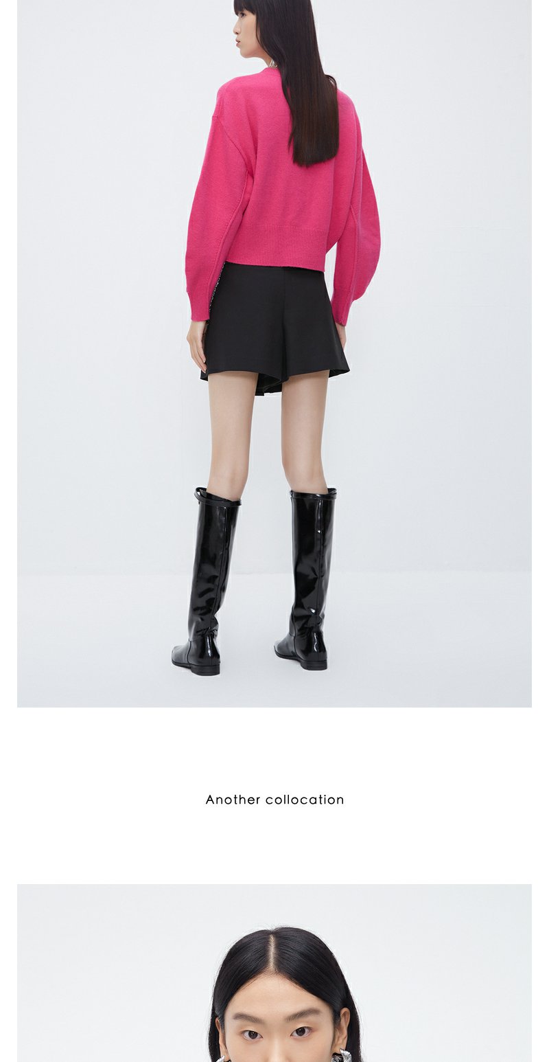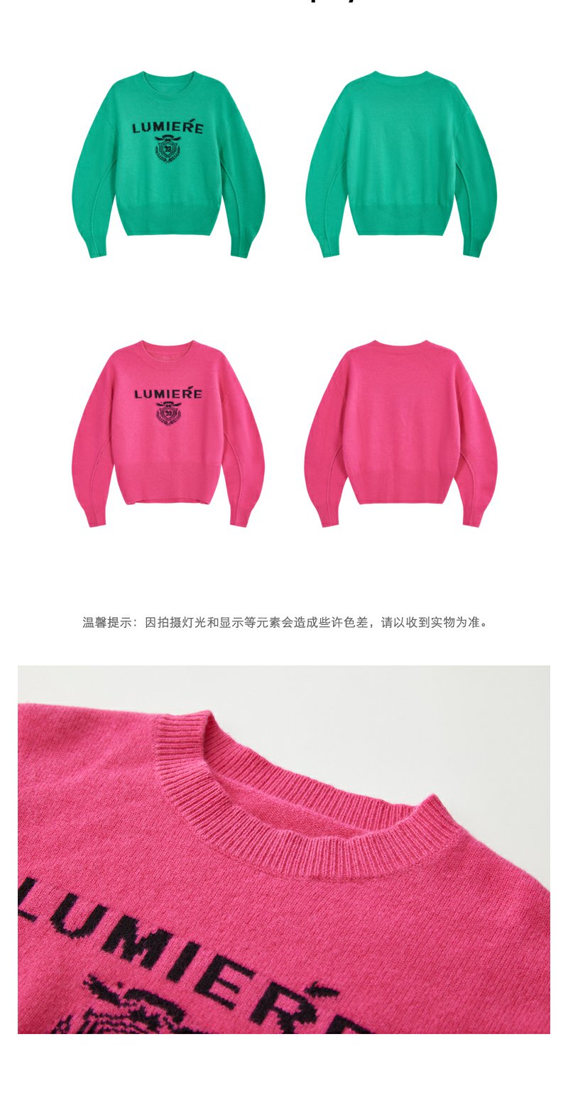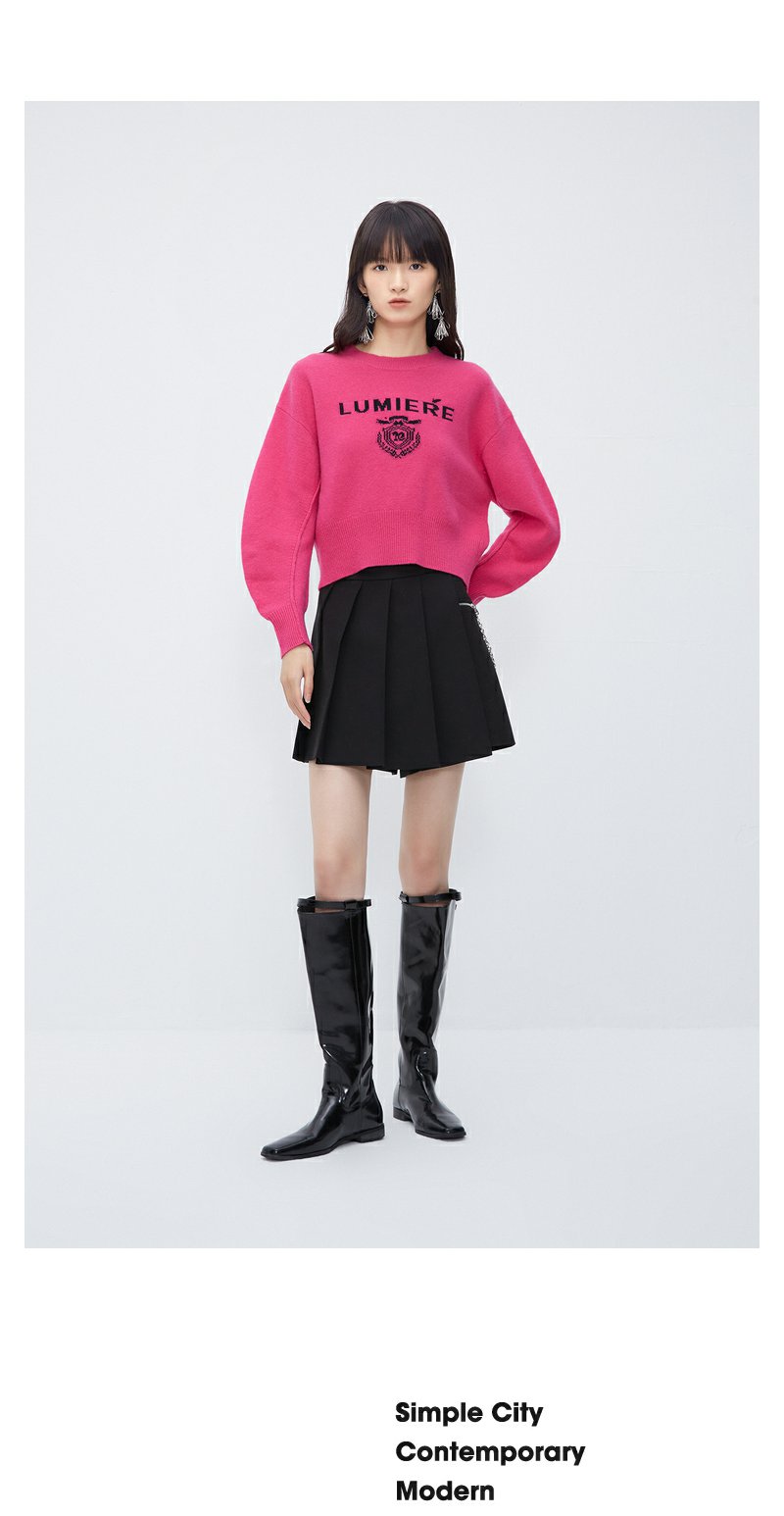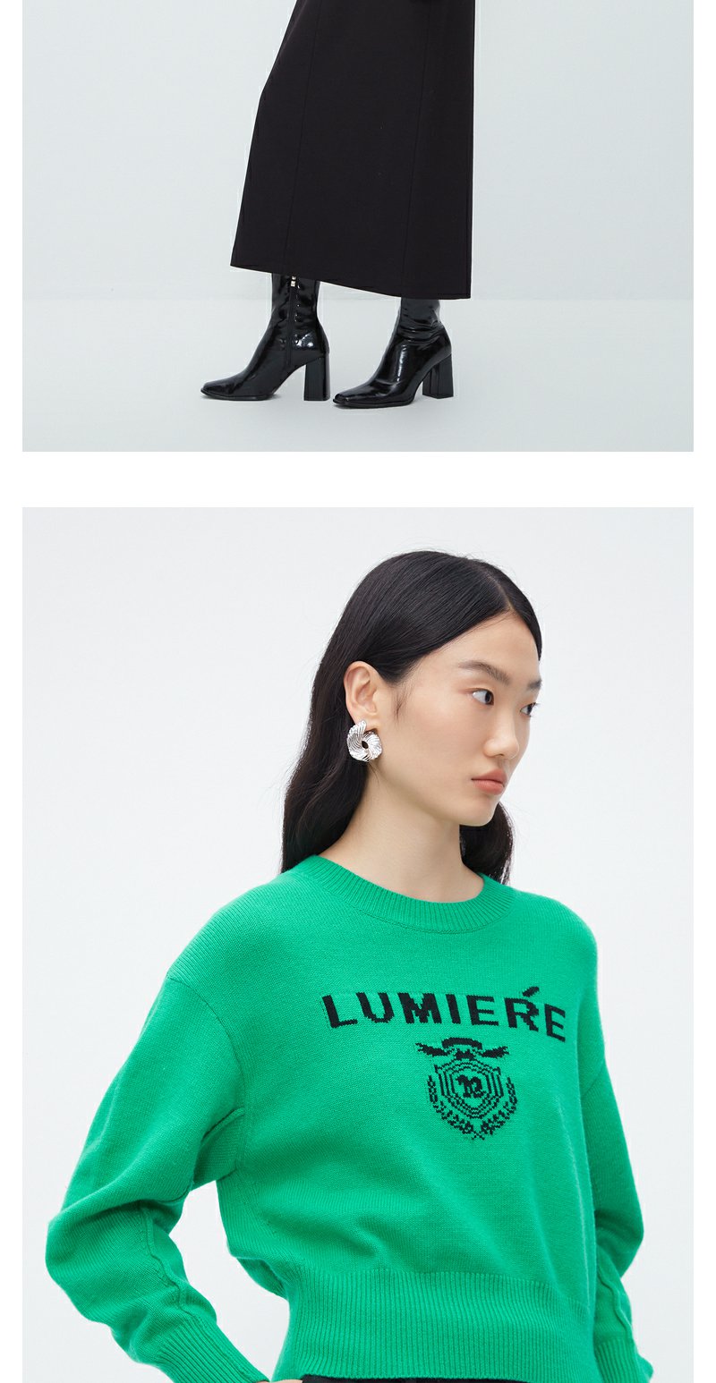 NEELLY纳俪商场同款高腰毛衣女冬季时尚洋气字母刺绣多巴胺短上衣N23102A01044