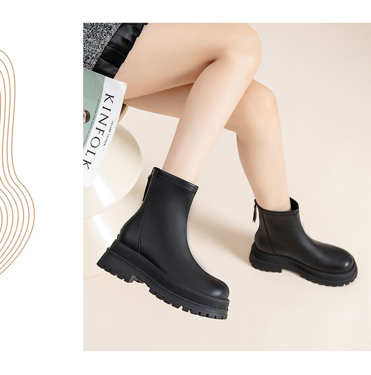 ZHR短靴2023冬季新款爆款时尚气质简约显瘦厚底休闲百搭马丁靴