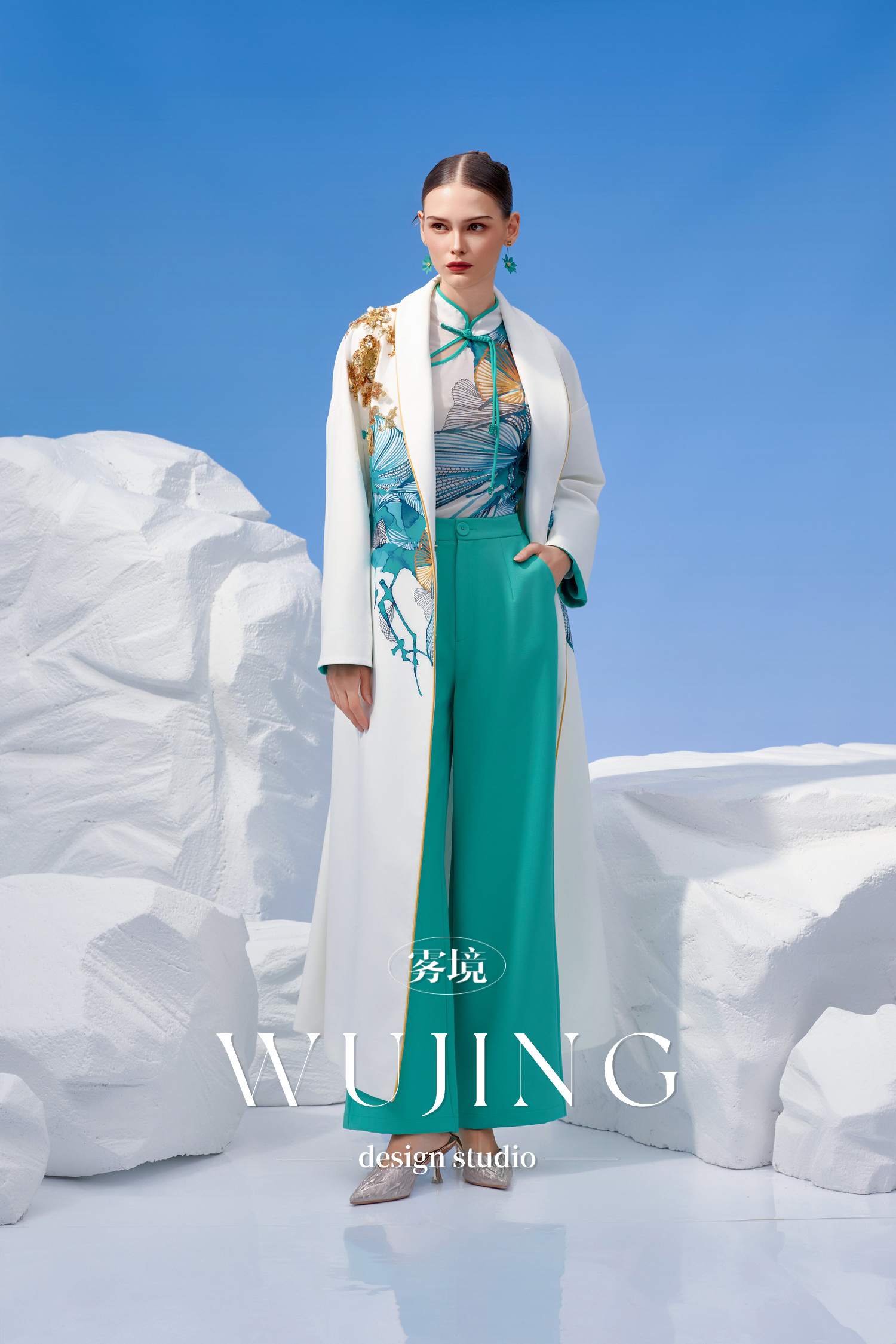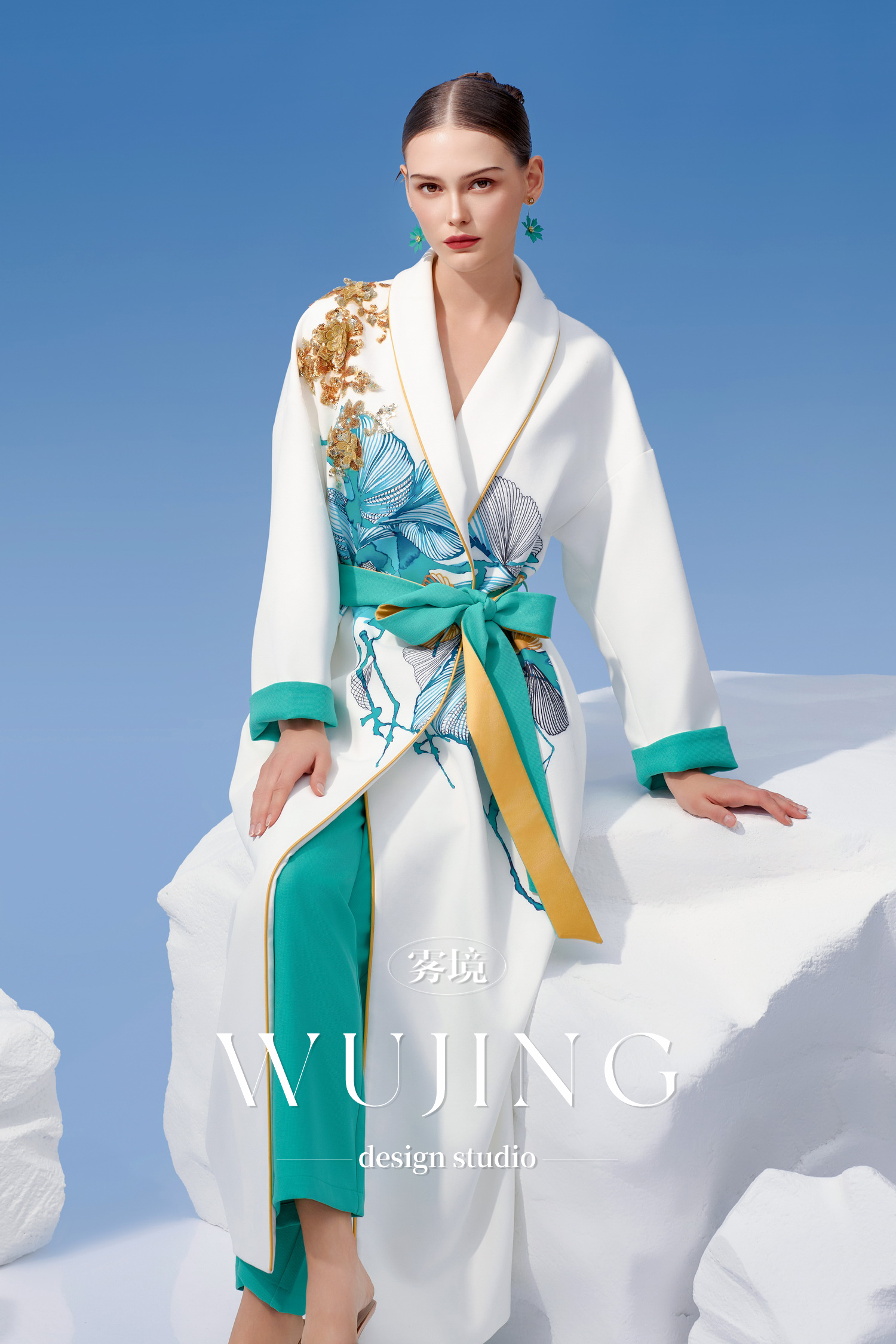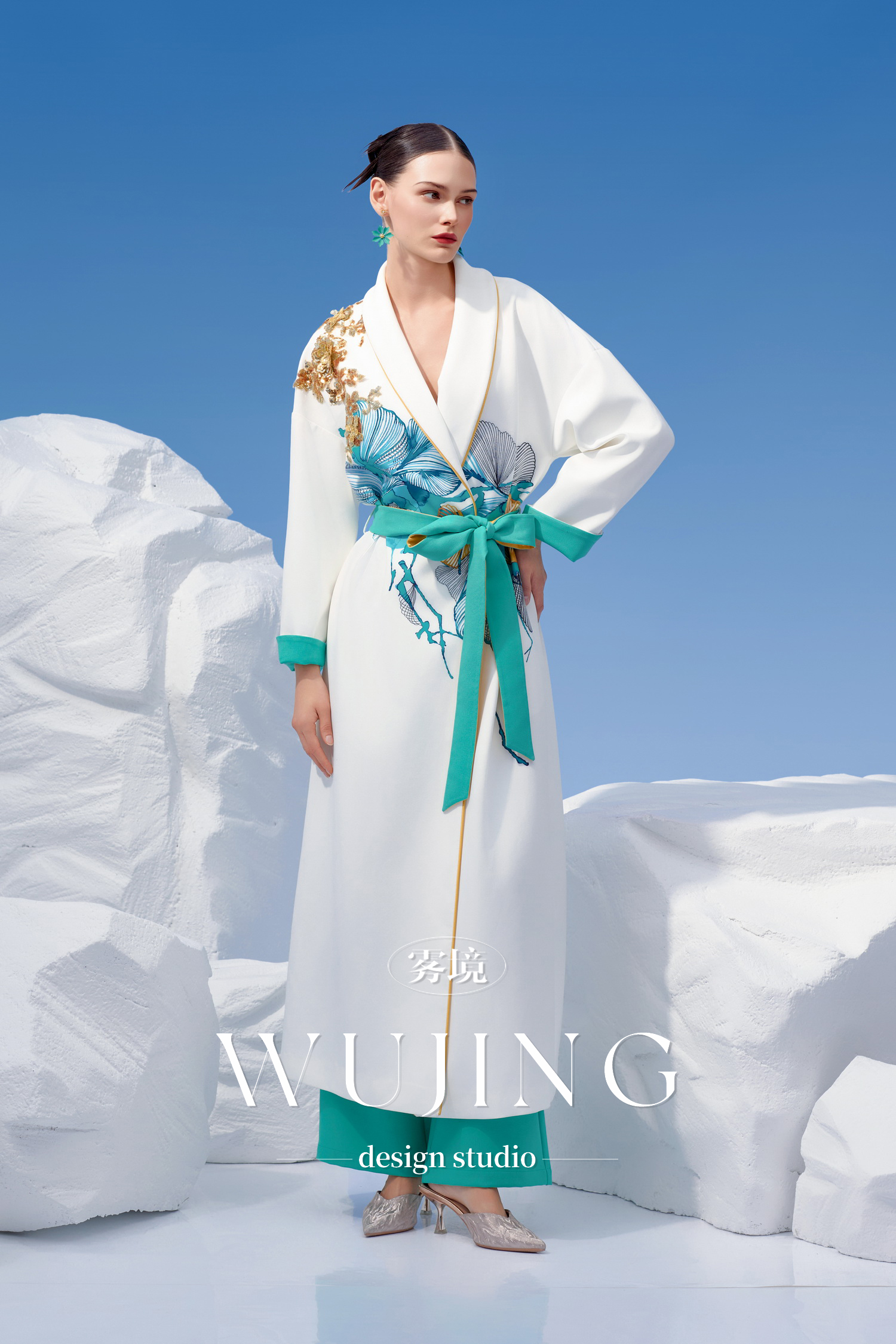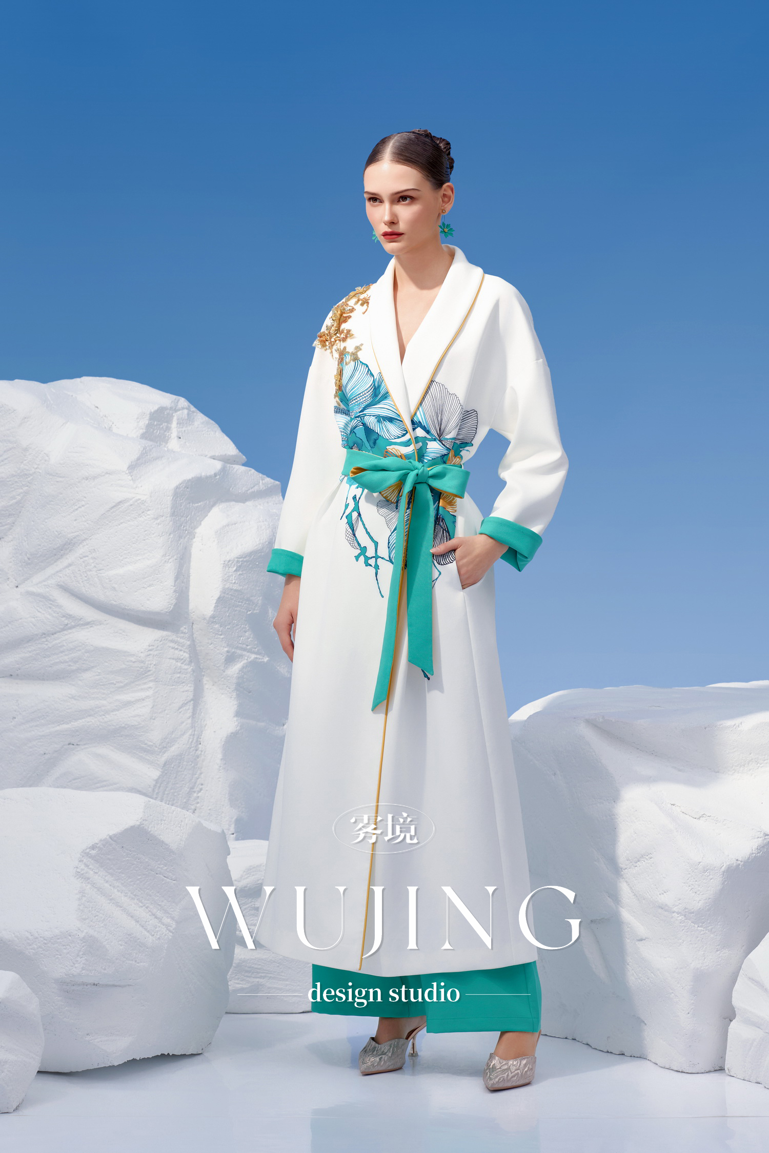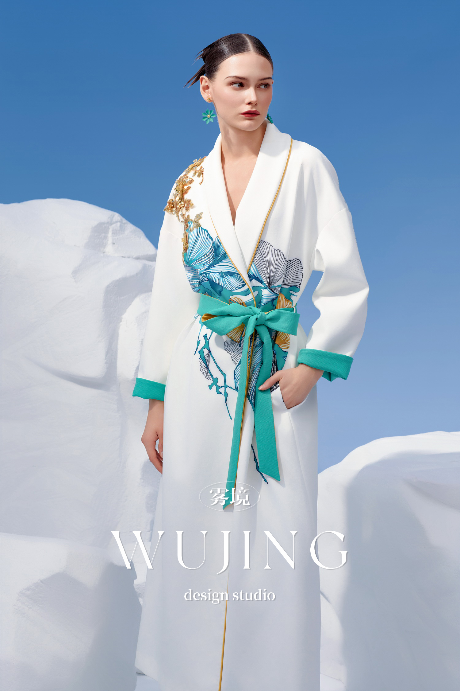 4202092 浑金白玉 定制定位印花大衣 雾境