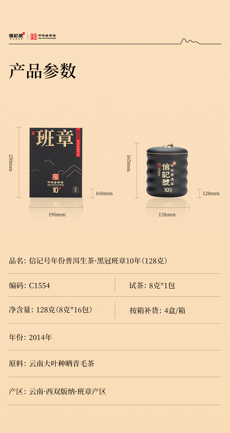 八马信记号 | 信记号年份普洱生茶·黑冠班章10年128克 C1554