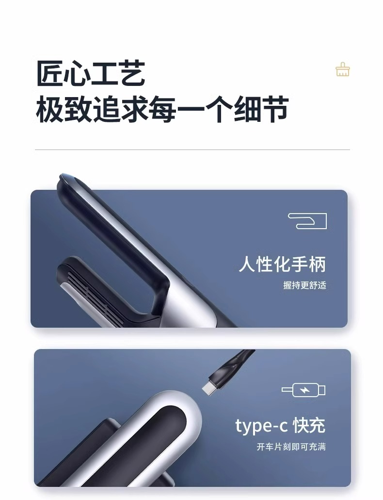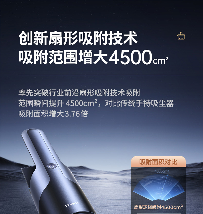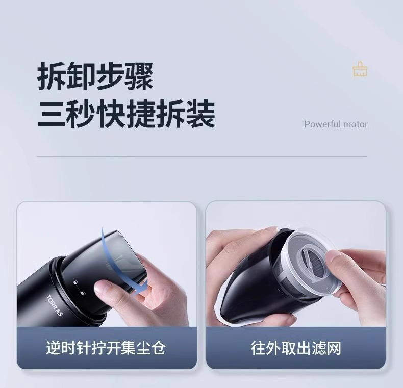 TORRAS/图拉斯 车载吸尘器车用大吸力小型手持汽车家用猫毛无线超强吸力桌面清洁