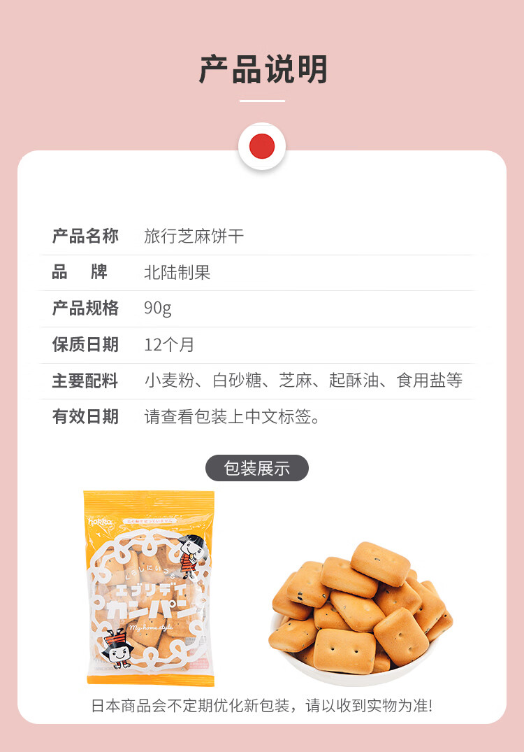 北陆制果旅行芝麻饼干90g/袋