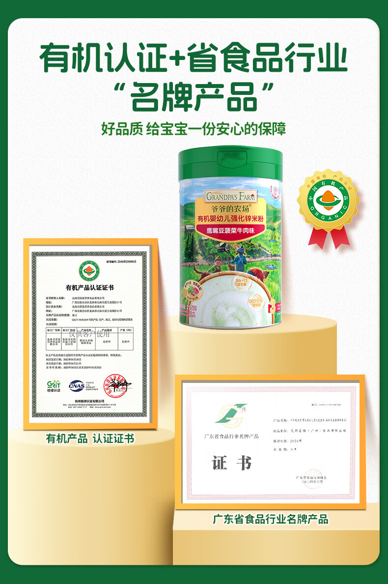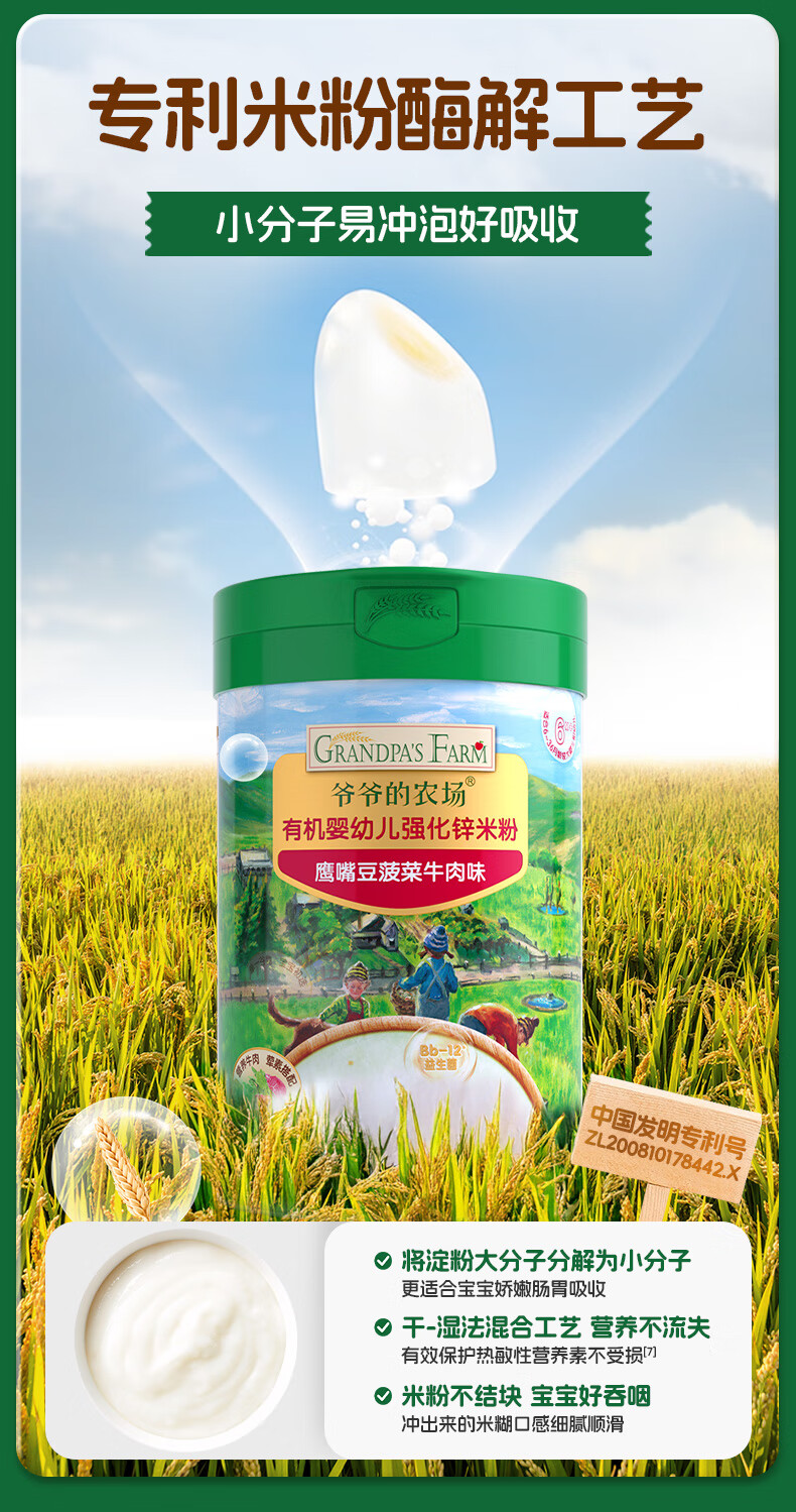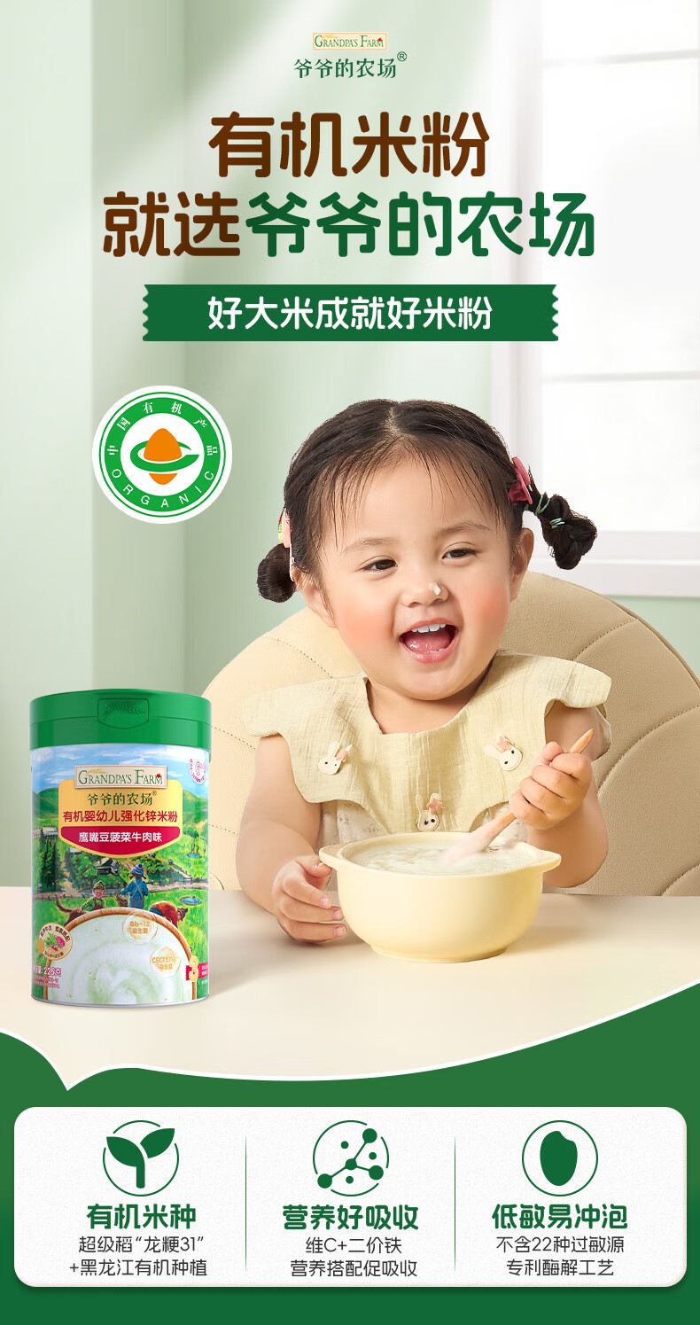 爷爷的农场有机婴幼儿强化锌米粉(小米南瓜番茄味)225g