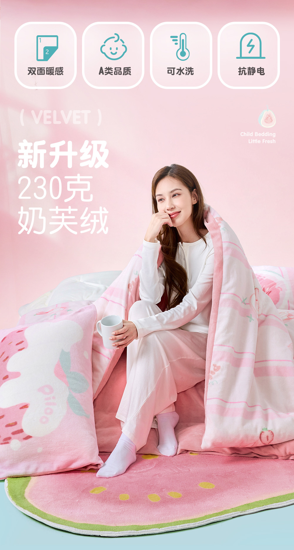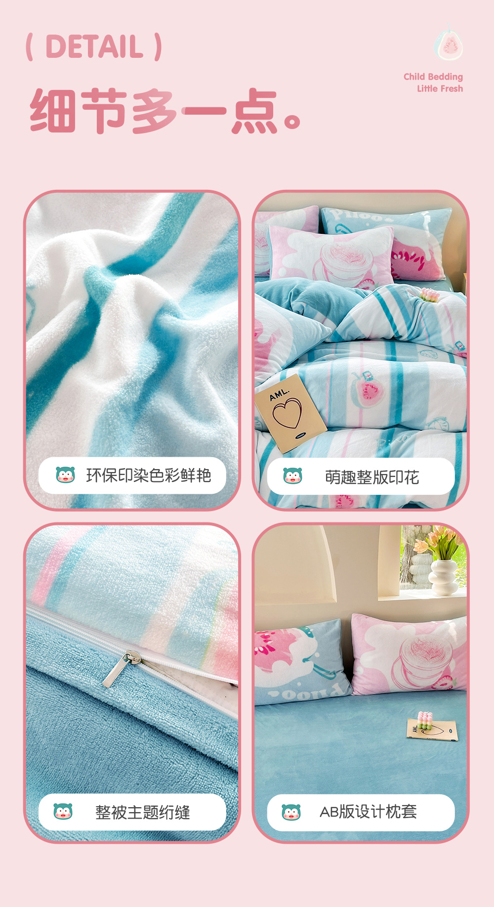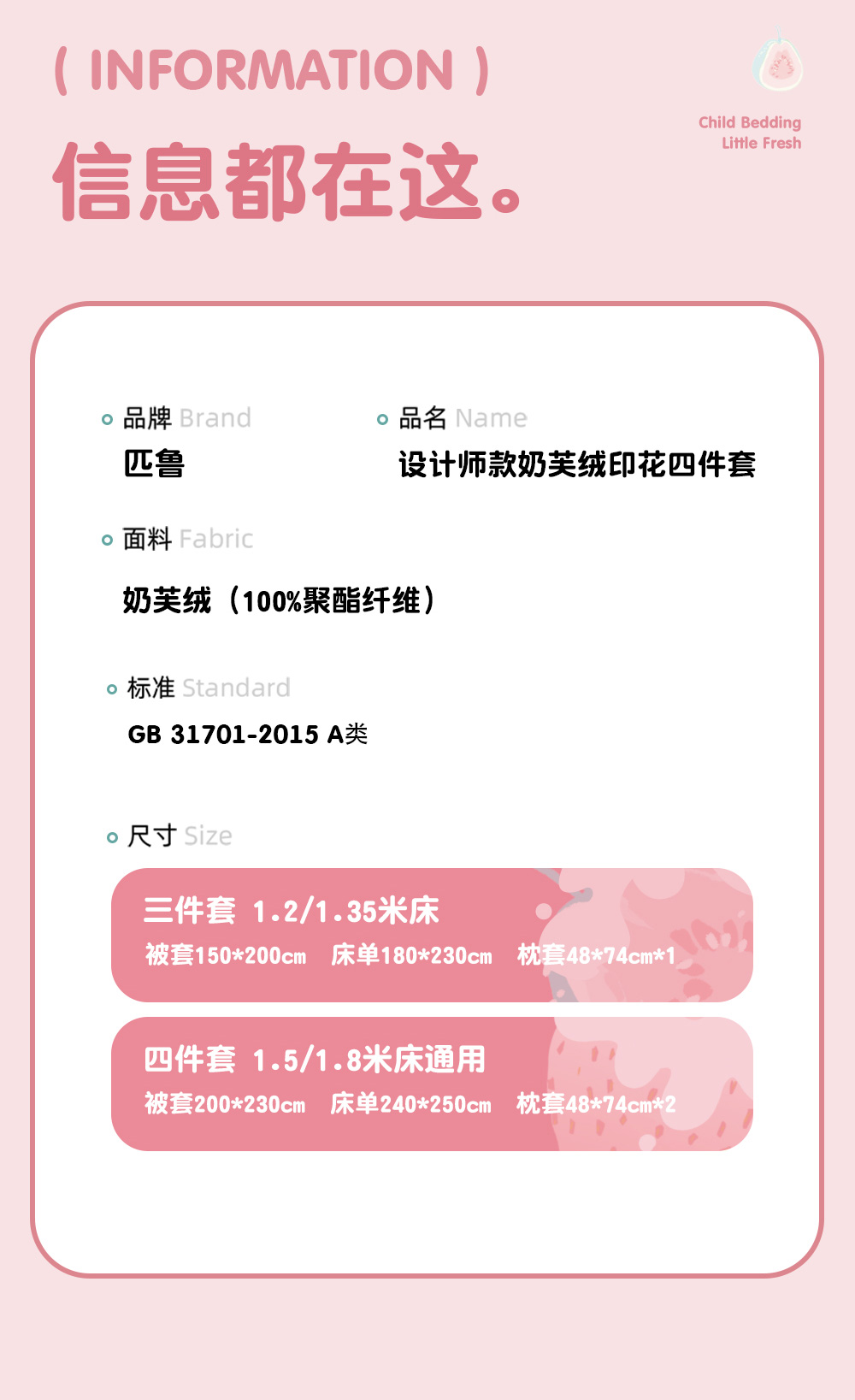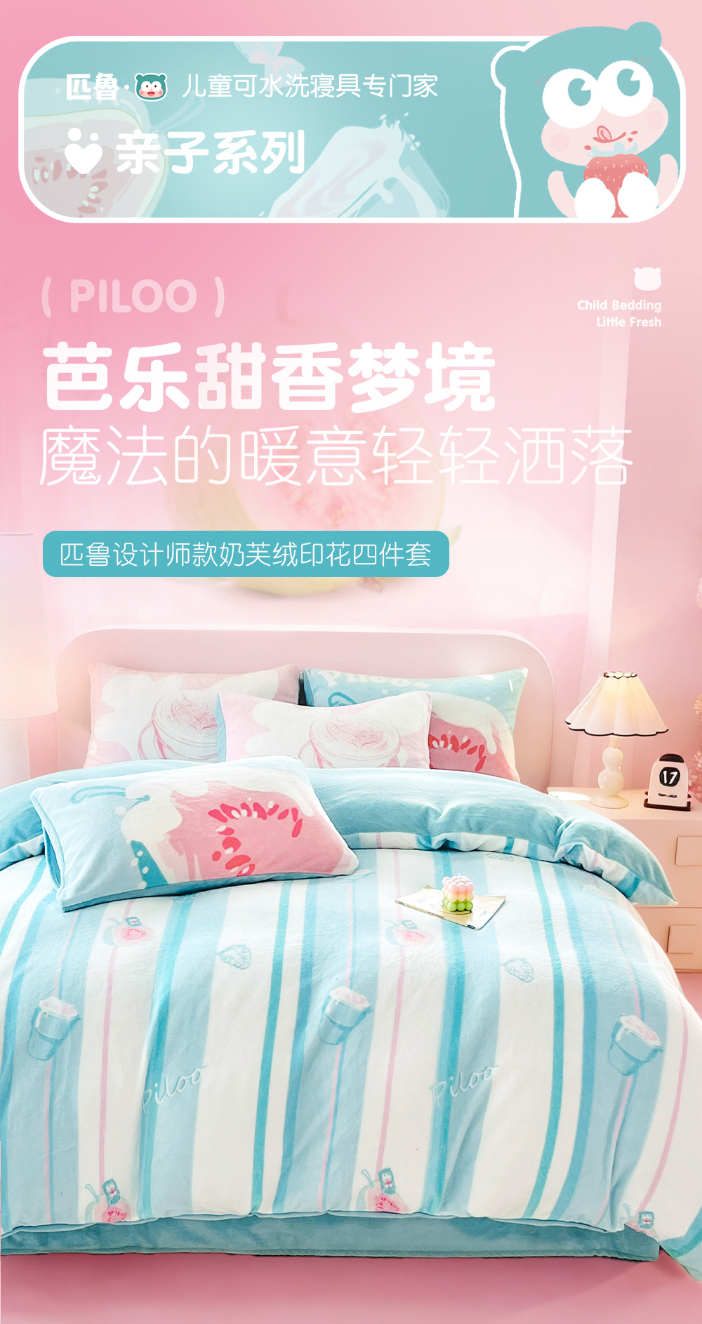 匹鲁设计师款高克重奶芙绒印花件套防静电可机洗