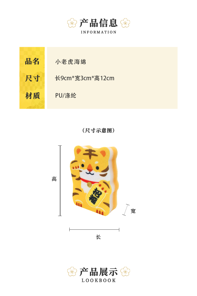 HUJI祤集生活物品小老虎海绵