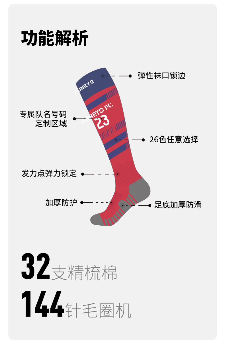 蜂锐FUNRY足球定制长袜防滑耐磨长筒袜过膝组队DIY印制
