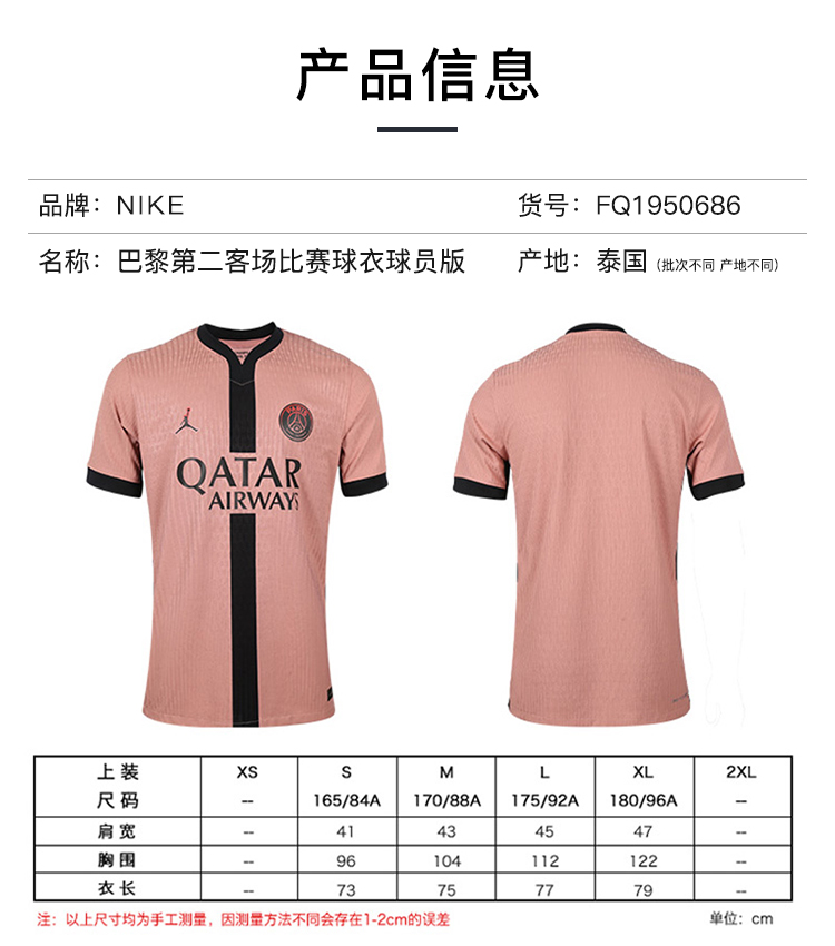 小李子NIKE耐克24-25赛季巴黎第二客场球员版比赛球衣短袖成人男FQ1950-686
