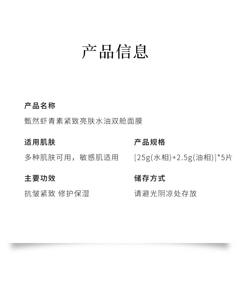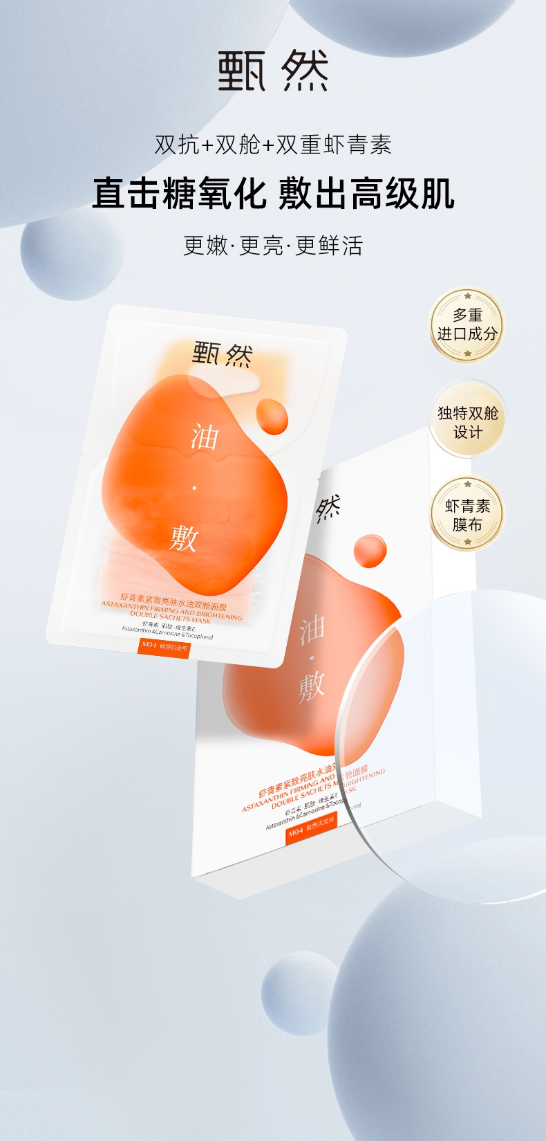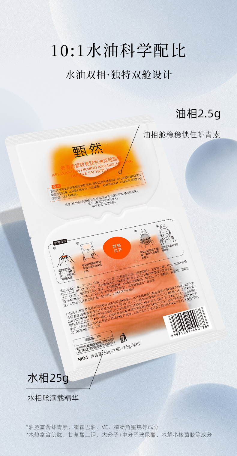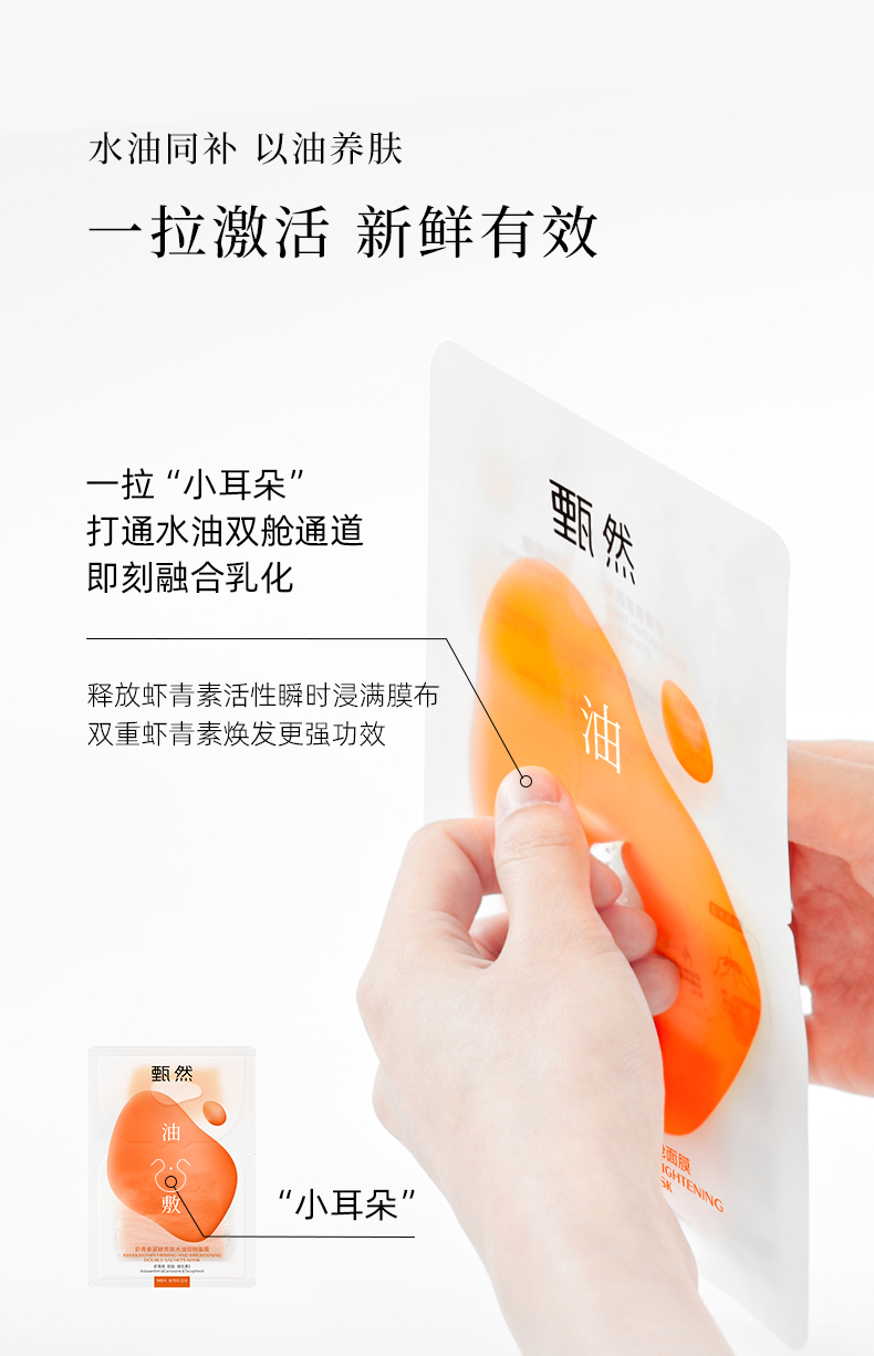 【虾青素油敷面膜】甄然虾青素紧致亮肤抗氧抗糖水油双舱修复面膜补水保湿5片/盒(买一送二)