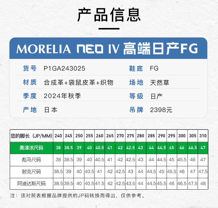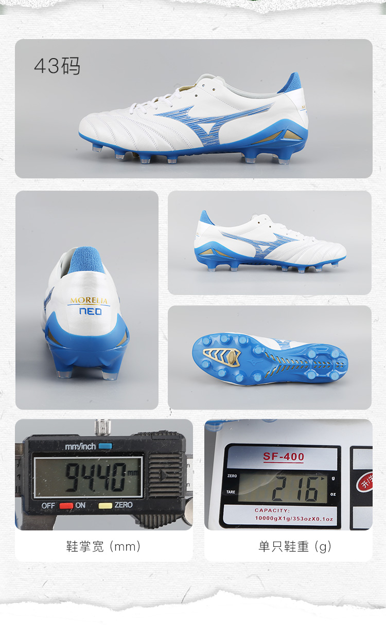 小李子Mizuno美津浓莫雷拉MORELIA NEO4高端袋鼠皮日产FG长钉成人足球鞋