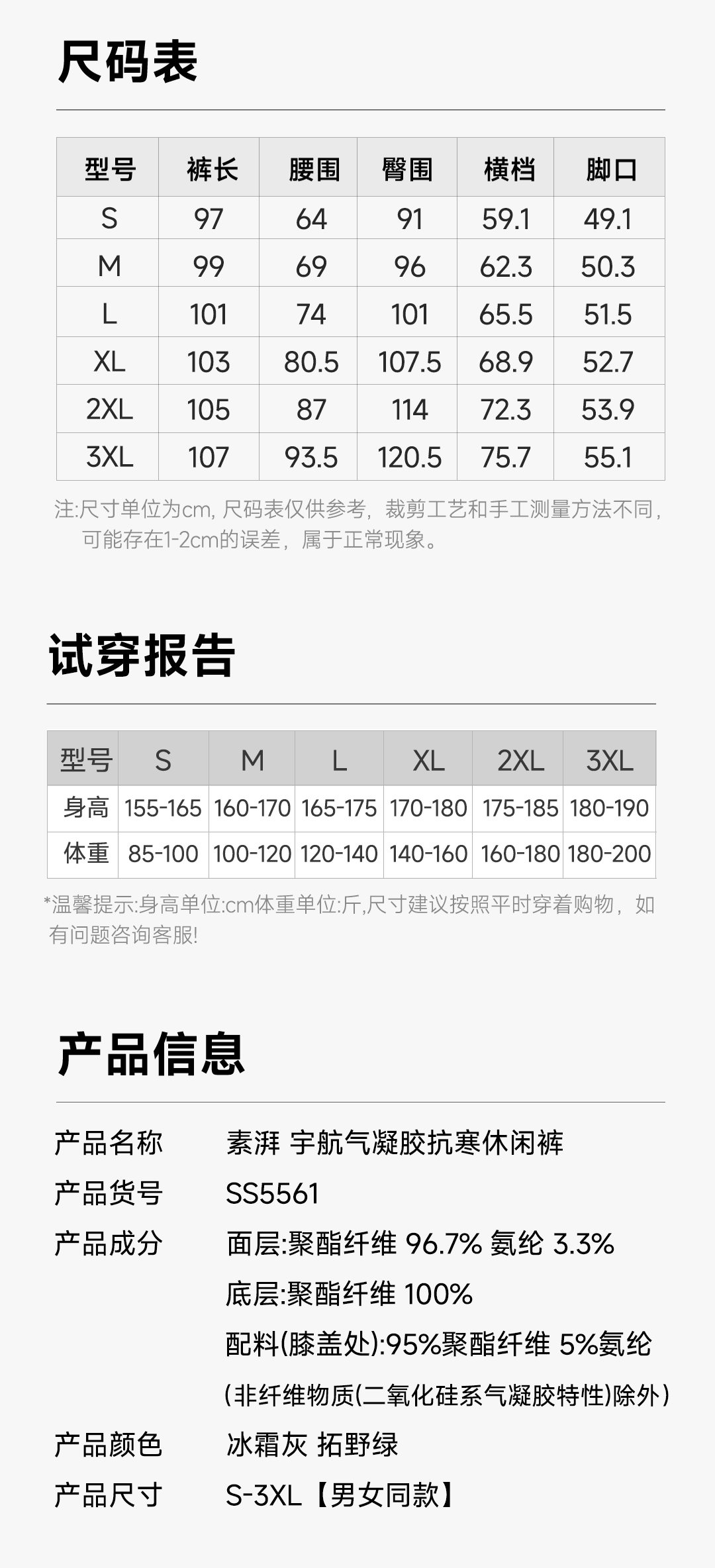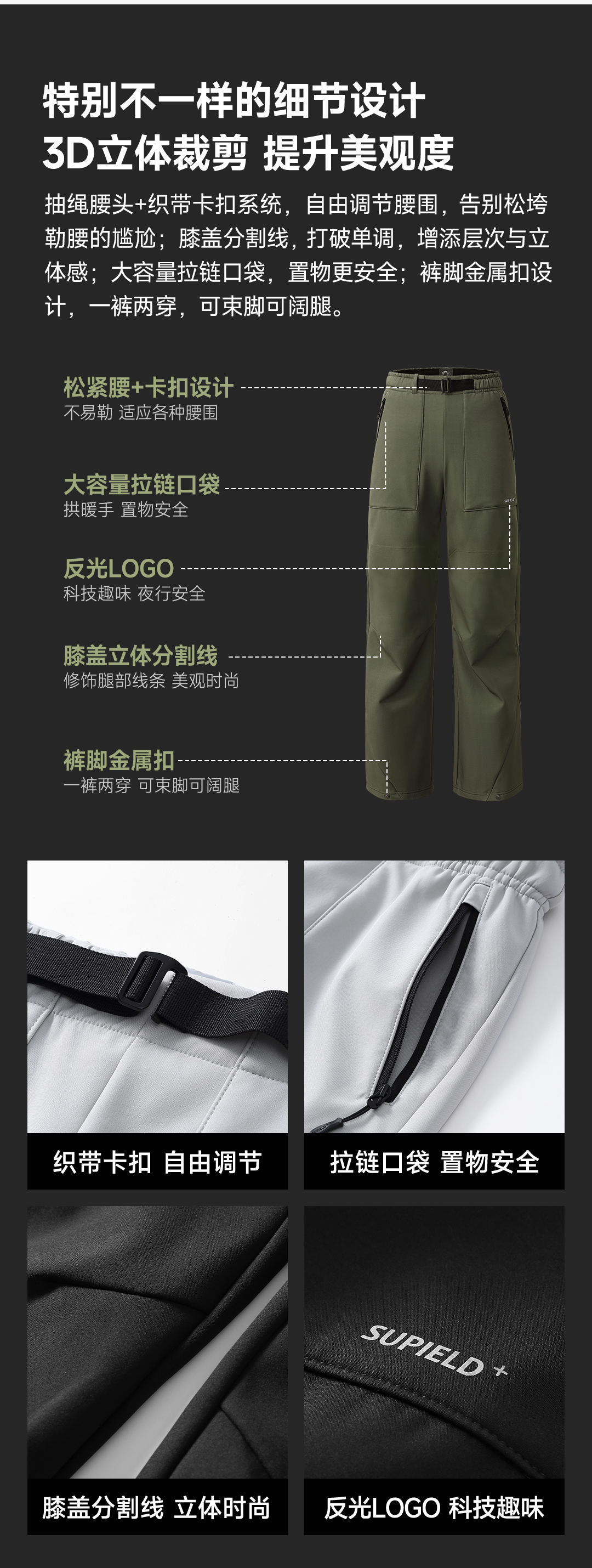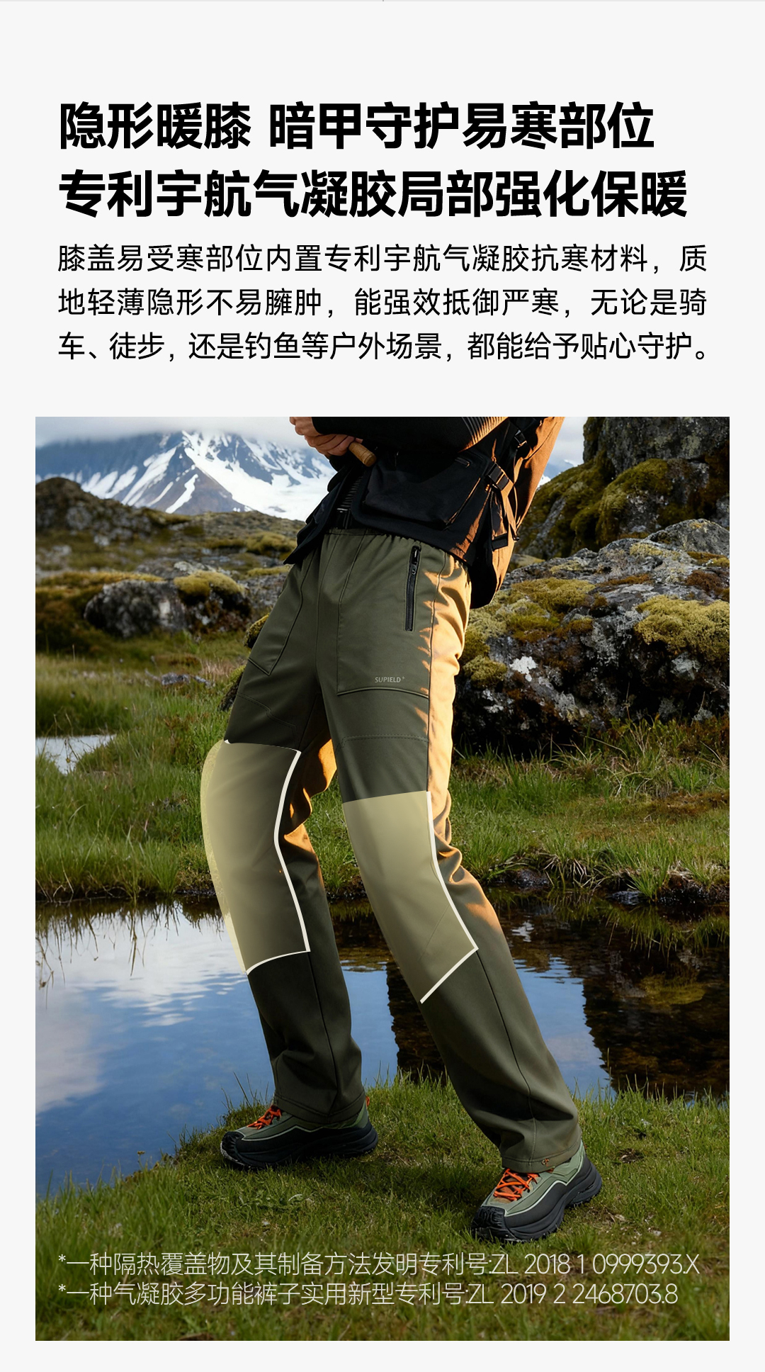混知推荐【内里绒面 细腻柔软】素湃气凝胶护膝伞兵裤SS5561 气凝胶保暖 膝盖局部气凝胶强化
