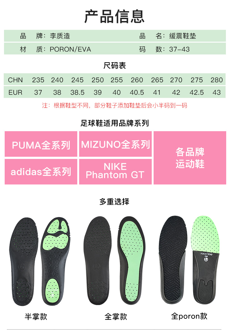 李质造足球篮球跑步运动鞋垫缓震防滑透气鞋垫男OFK05083