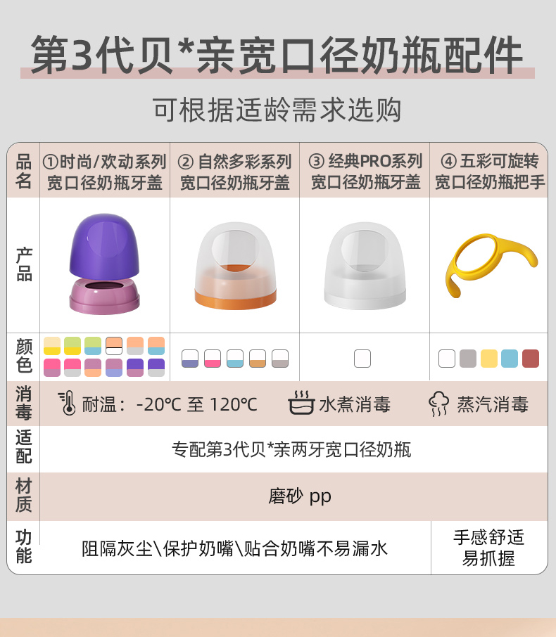 安配宽口径奶瓶牙盖组(适配贝亲第3代奶瓶)
