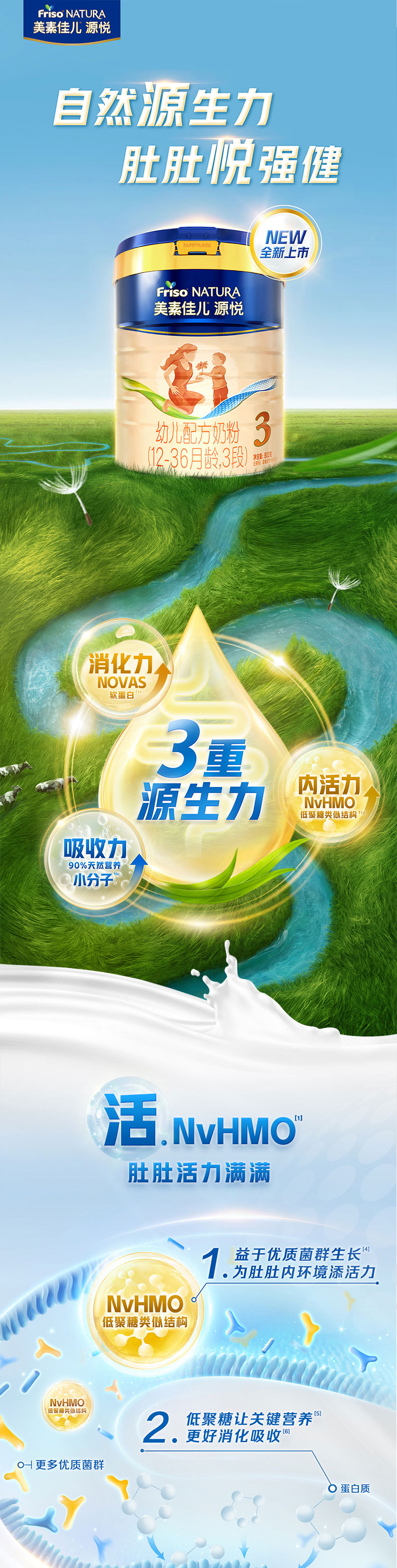 美素佳儿源悦幼儿配方奶粉(12-36月龄,3段)罐装800G