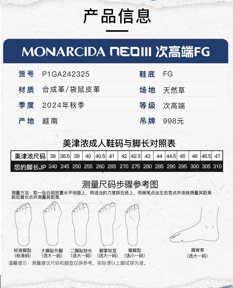 小李子Mizuno美津浓MONARCIDA NEO3次顶FG长钉袋鼠皮成人足球鞋男