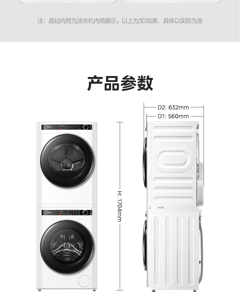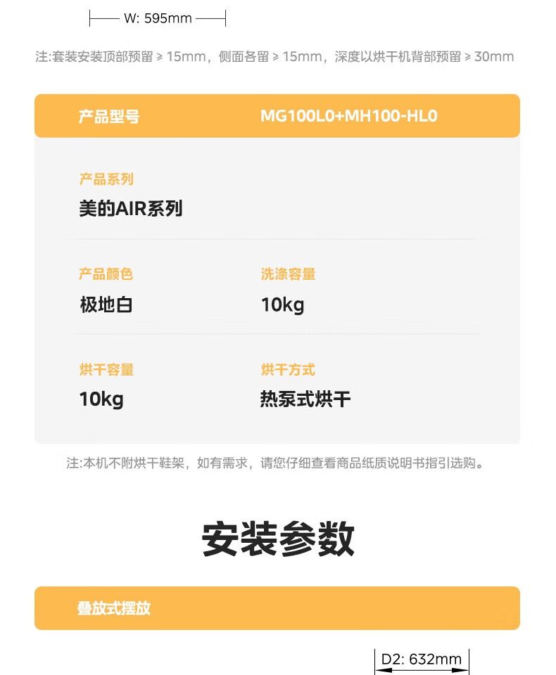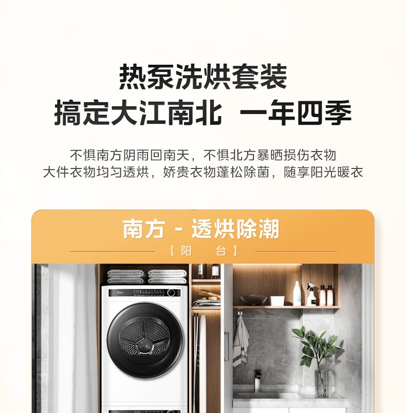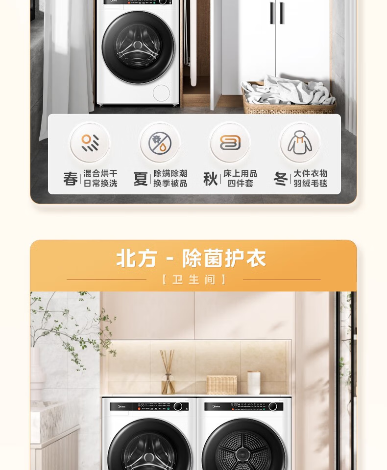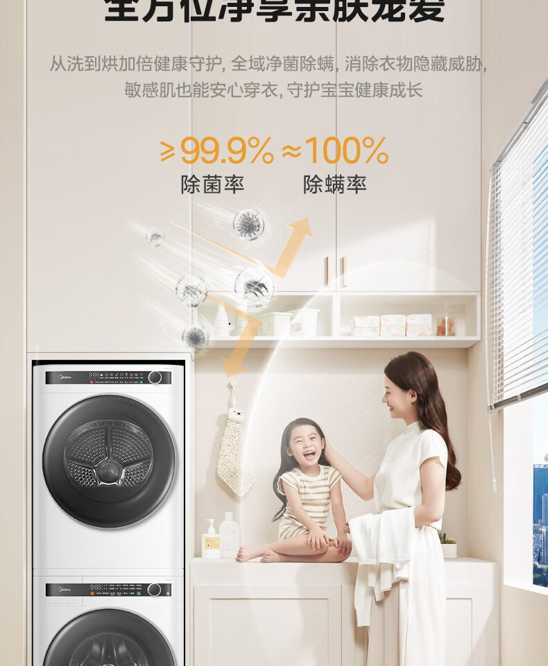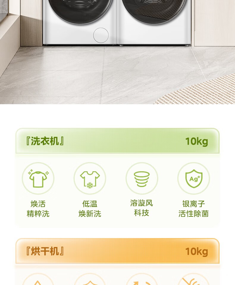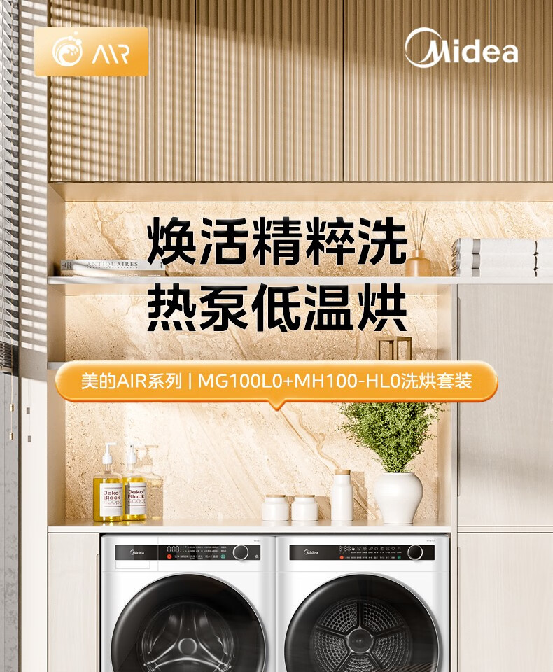 美的(Midea)洗烘套装10公斤滚筒洗衣机烘干机 焕活精粹洗银离子除菌除螨高洗净比 除毛絮必备神器 【清风明月】MG100L0+MH100-HL0