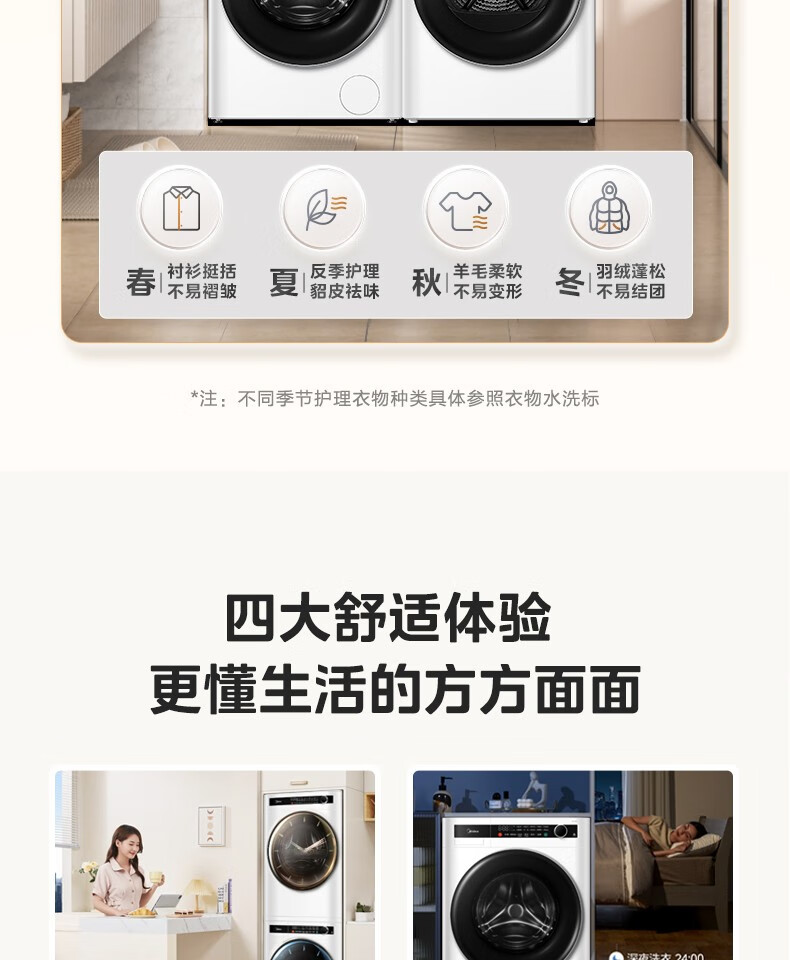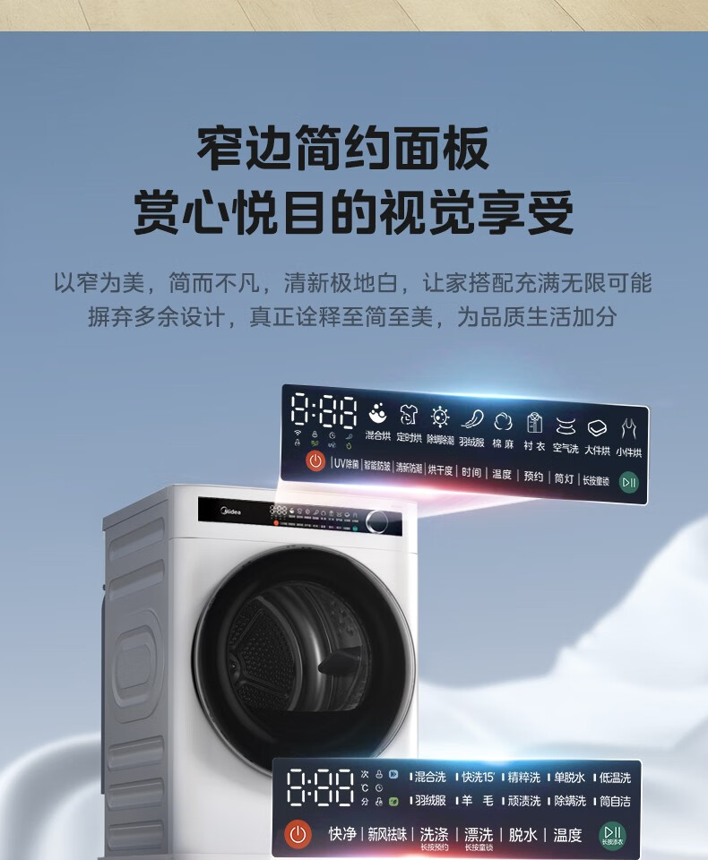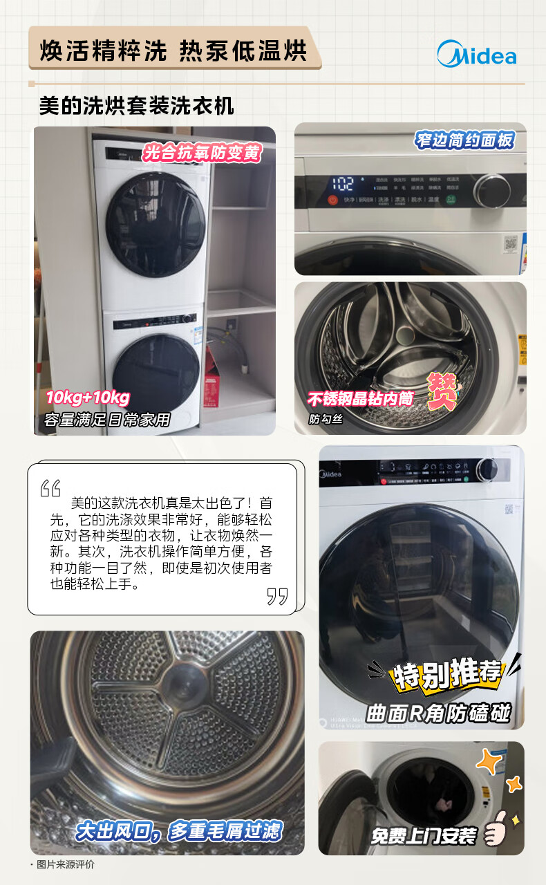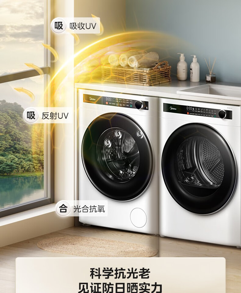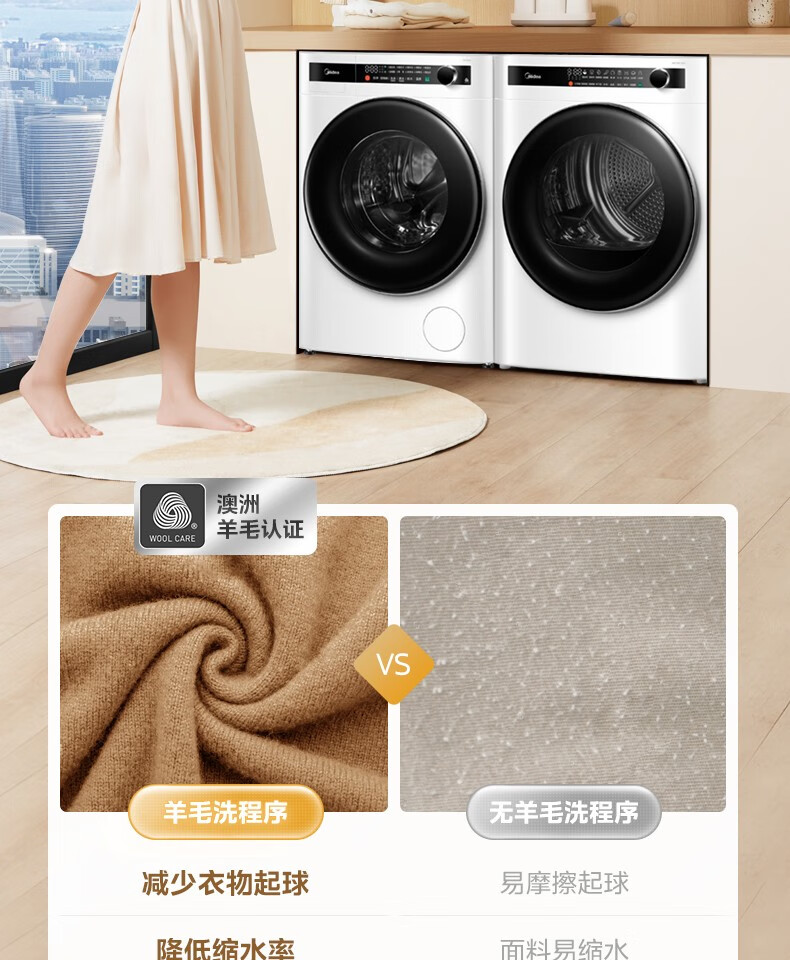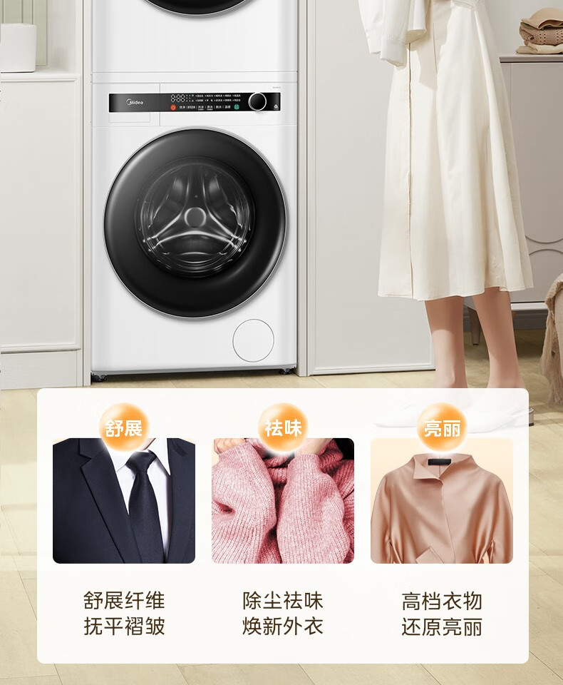 美的(Midea)洗烘套装10公斤滚筒洗衣机烘干机 焕活精粹洗银离子除菌除螨高洗净比 除毛絮必备神器 【清风明月】MG100L0+MH100-HL0