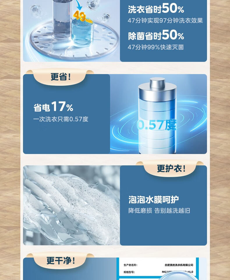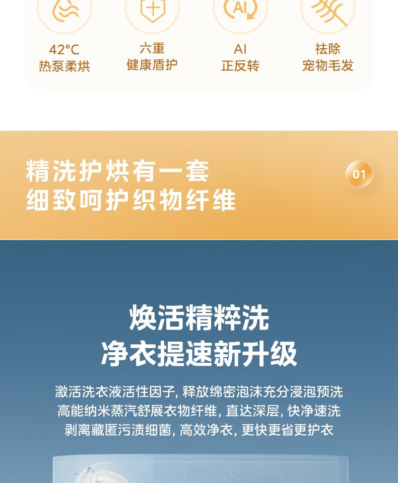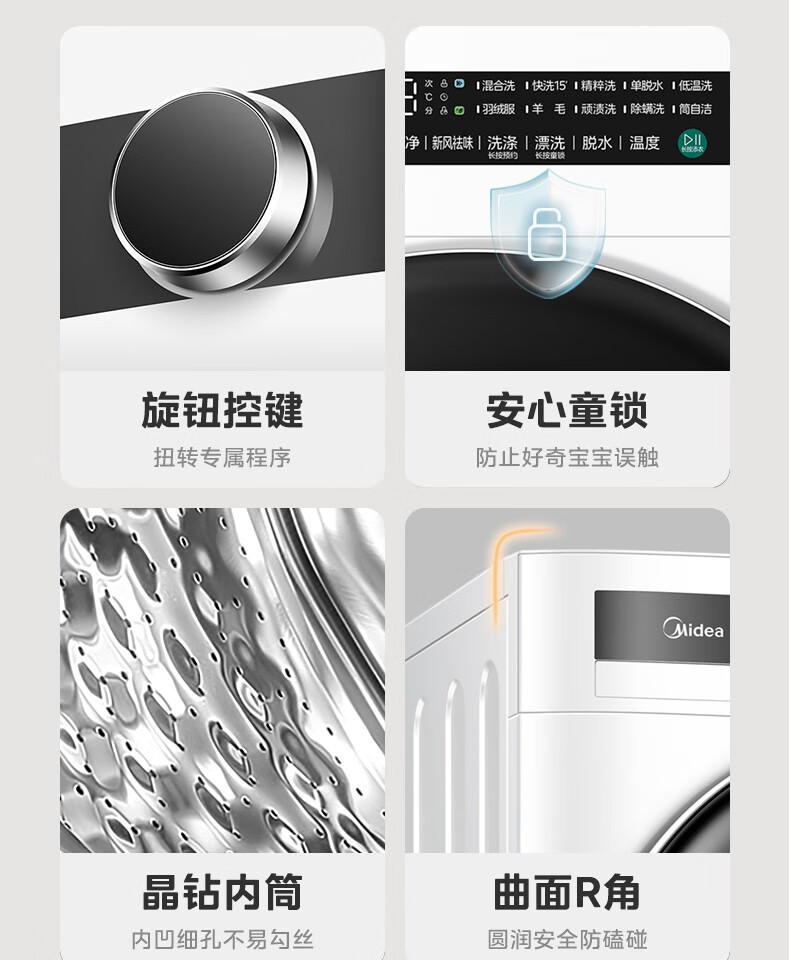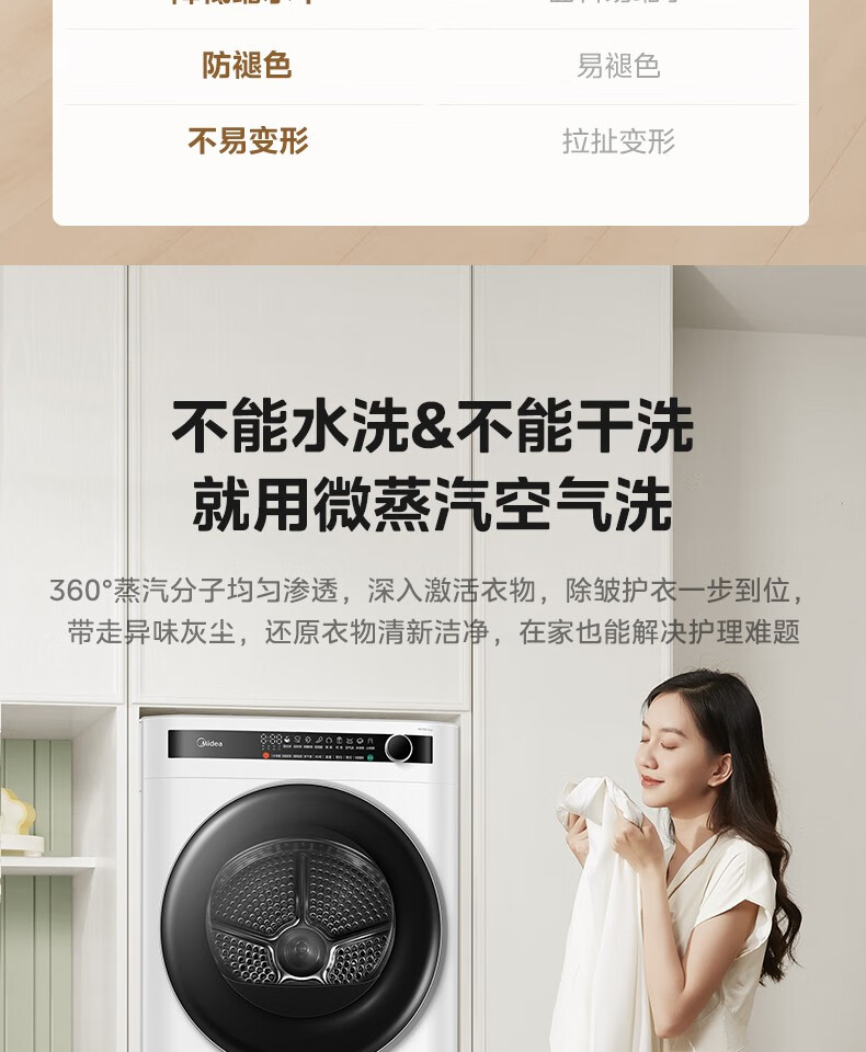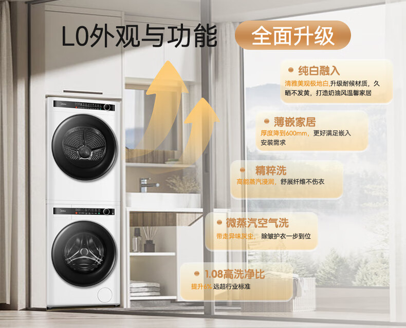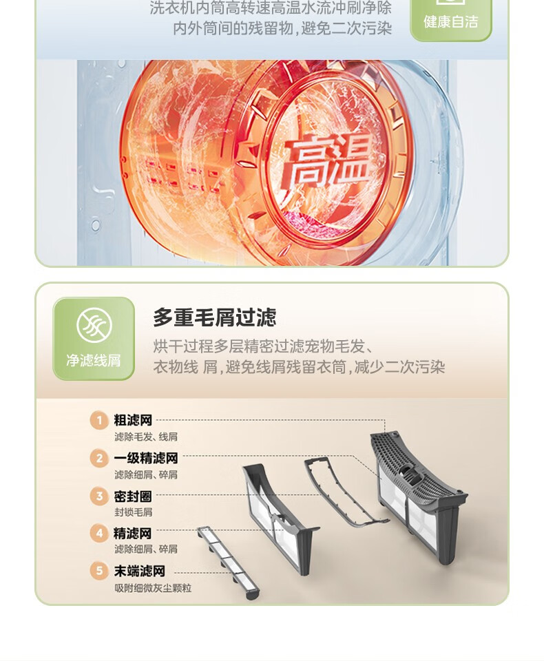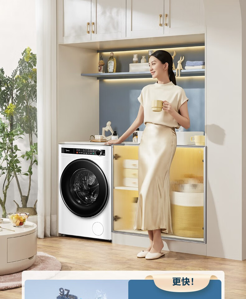 美的(Midea)洗烘套装10公斤滚筒洗衣机烘干机 焕活精粹洗银离子除菌除螨高洗净比 除毛絮必备神器 【清风明月】MG100L0+MH100-HL0