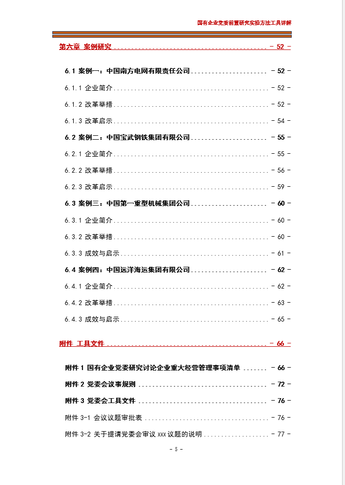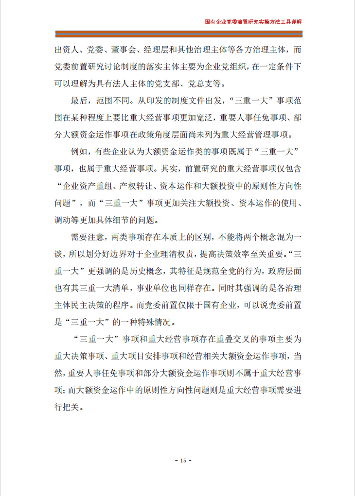 综上,本报告的目标是为国有企业进一步提升党委前置研究的规范性、科学性和有效性提供具有操作性的参考与借鉴。