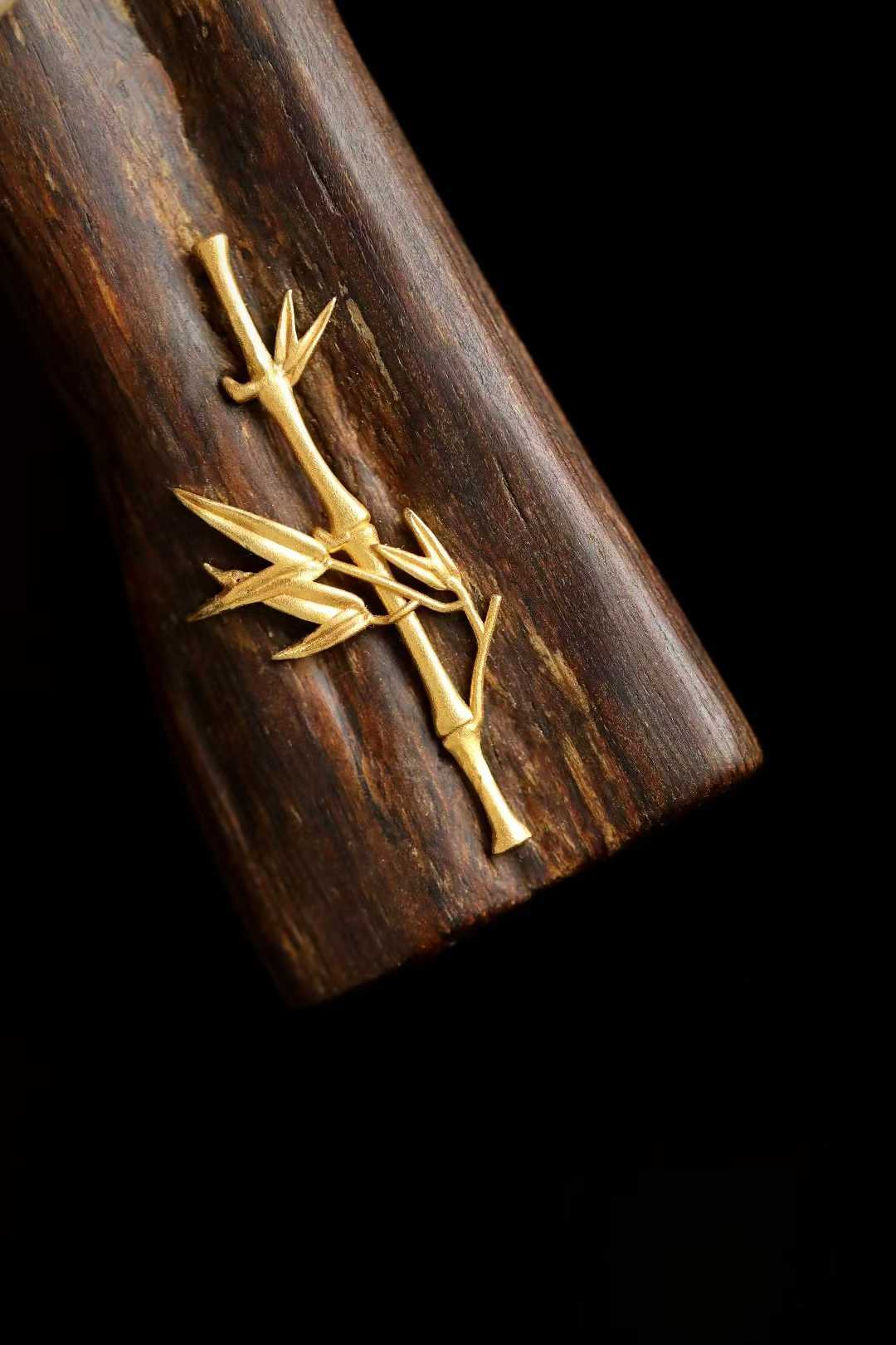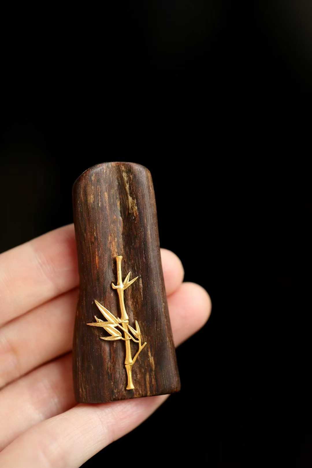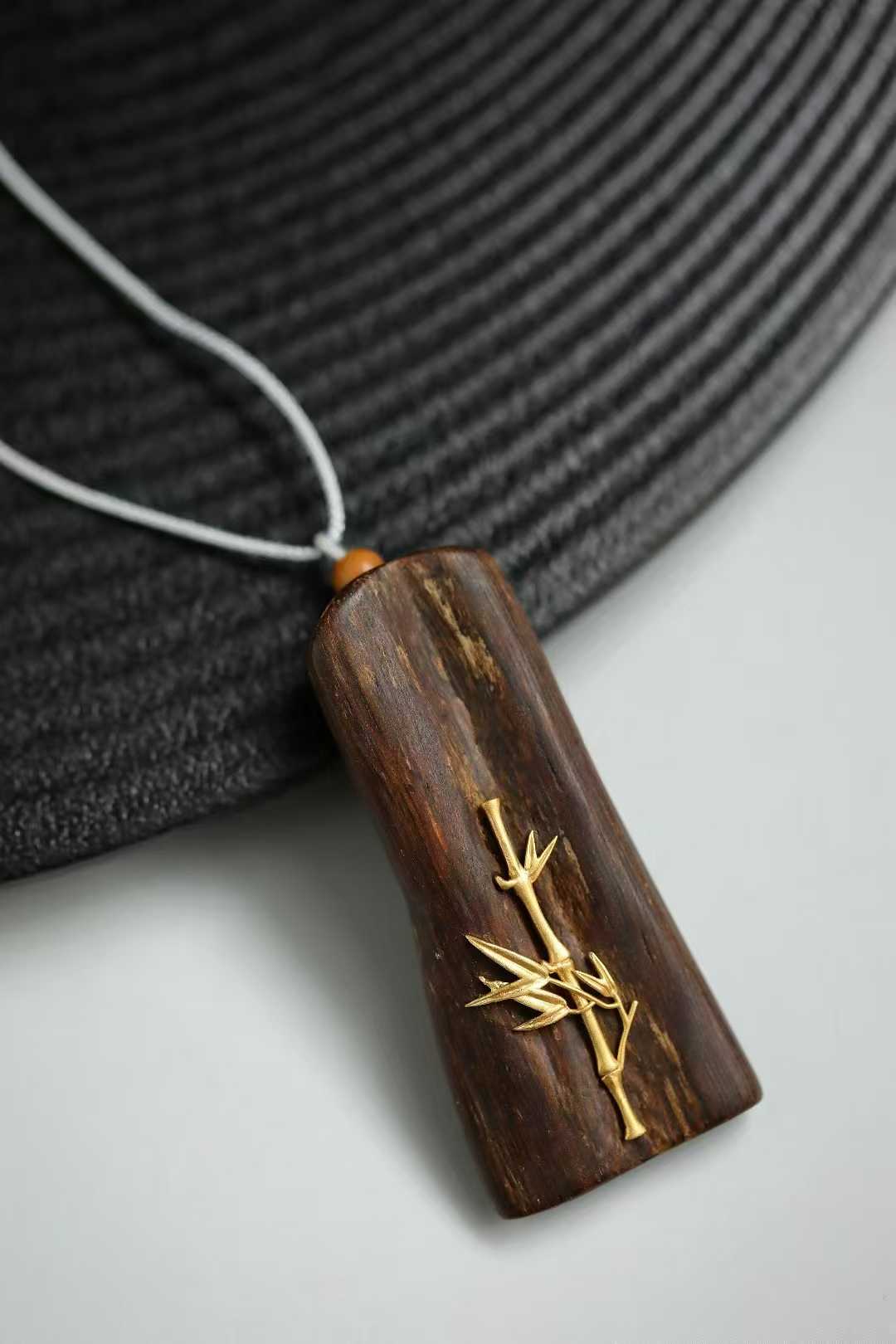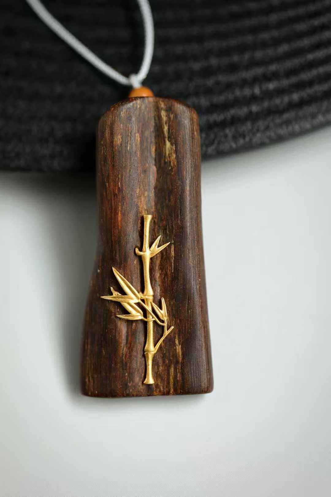 沉水级老料,结油似凝脂沁玉,纹理如墨痕入宣,蜜意甘润含蓄。18K金錾刻竹枝遒劲,金叶错落似有清风穿林,佩戴随身,怀竹之清峻,携香之沉静,纵红尘熙攘,自有风骨铮然。